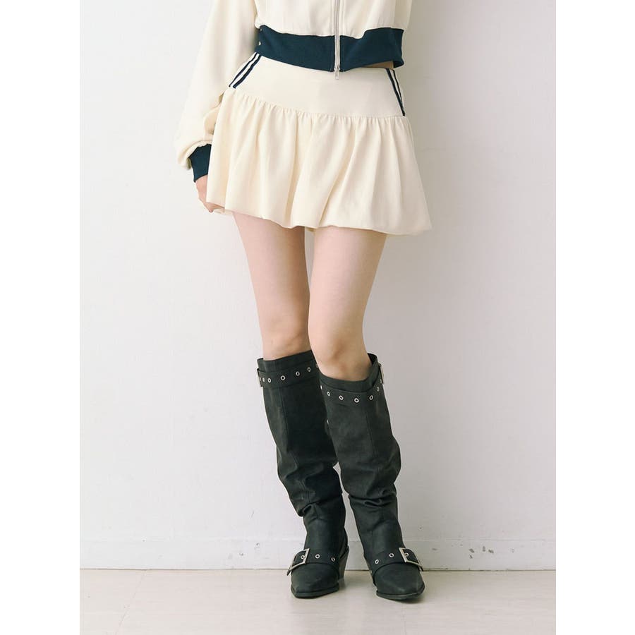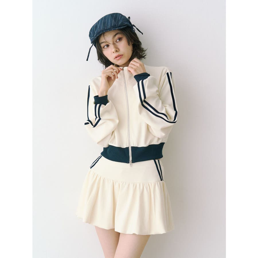 【ポイント】 スポーティなサイドラインデザインと今っぽいバルーンスカートを組み合わせたトレンドアイテム。 ボリュームある裾のメリハリシルエットでスタイルアップ効果も抜群! インナーパンツ付きなのでミニ丈でも安心して着用できるのも嬉しいポイントです。 【スタイリング】 あえてシャツやブラウスなど綺麗めなトップスと合わせたMIXスタイルがおすすめ。 コンパクトなトップスを合わせるとよりスタイルアップ効果が狙えます! 同素材のバイカラートラックジャケットとのセットアップでの着用もおすすめです。 【セットアップ対応アイテム】 バイカラートラックジャケット 0826129001 ※着用画像はフラッシュの加減で実際の製品と色味等が異なる場合がございますので、生地のズームアップ画像をご確認ください。 ※ご利用の端末画面の設定により実際の商品と色味が異なる場合がございます。 ※正しいサイズはアイテムサイズ表をご確認ください。 ※商品のお取り扱いについては、脇についている洗濯ネーム類をご確認下さい。
