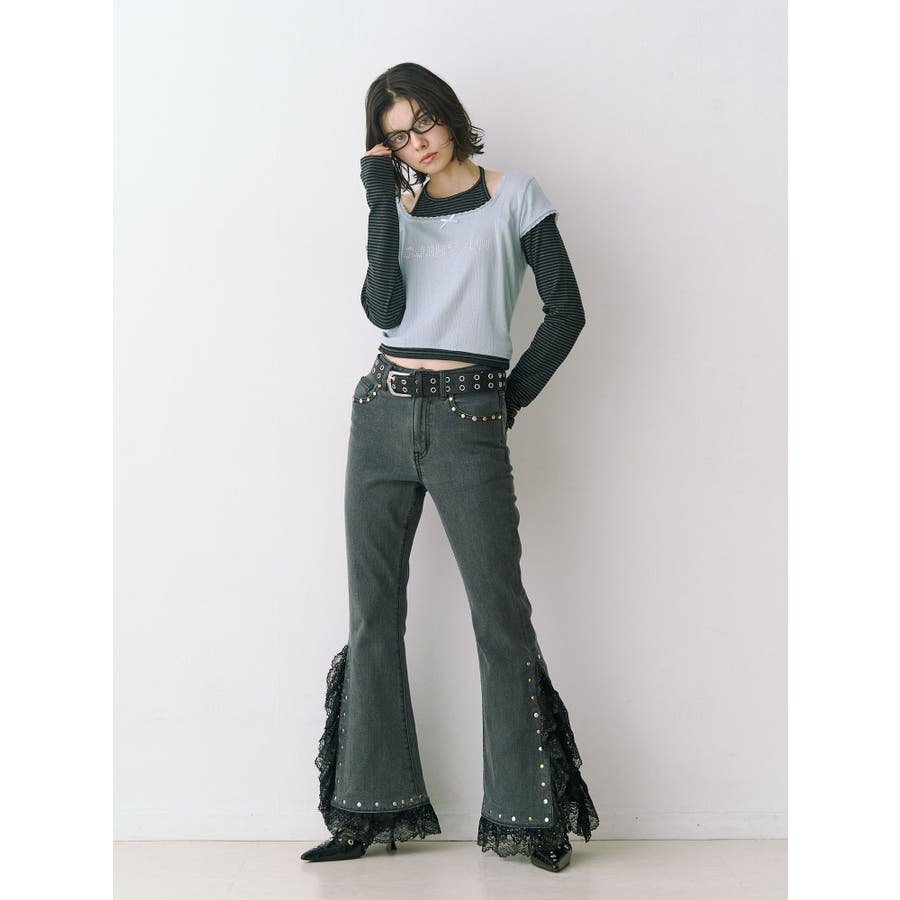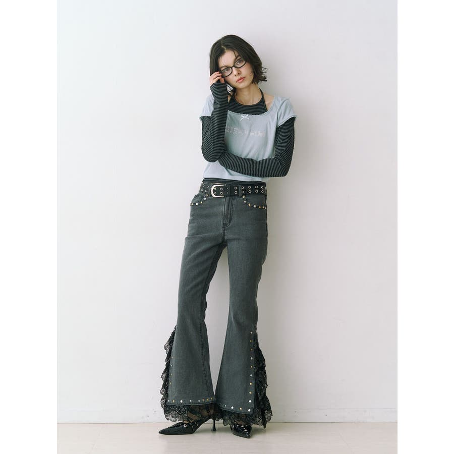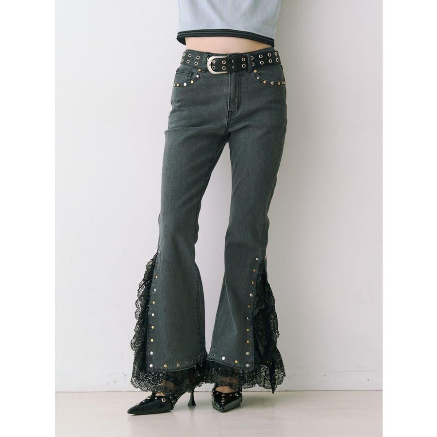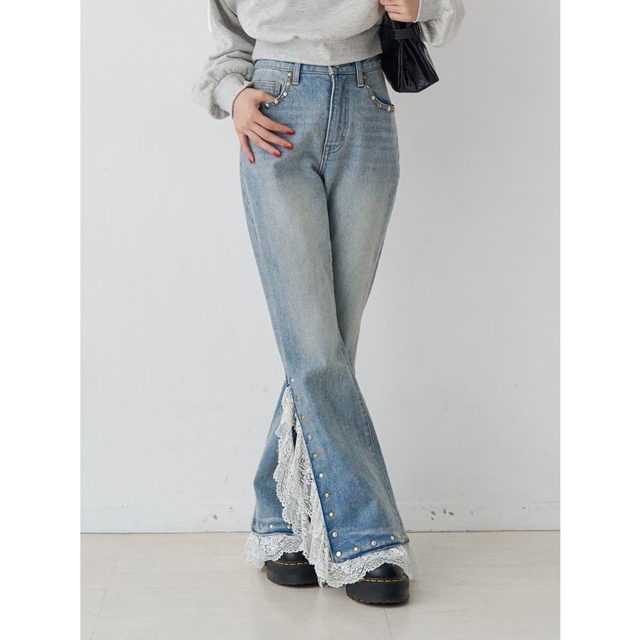 レースドッキングスタッズフレアデニム