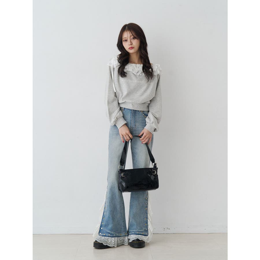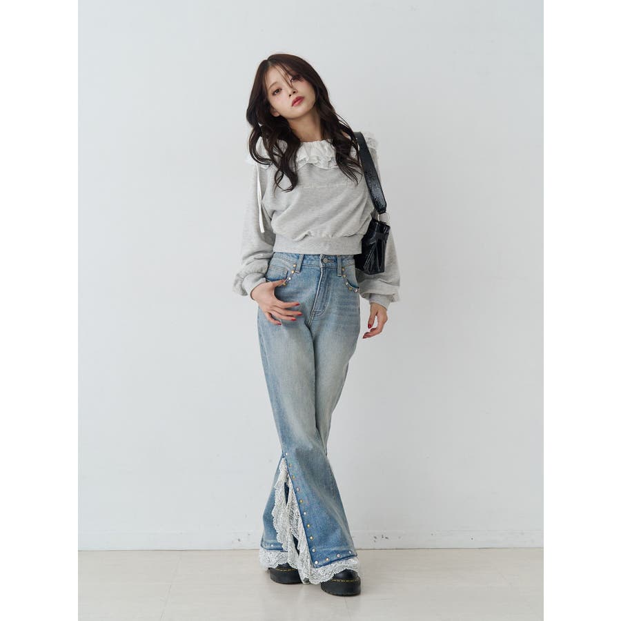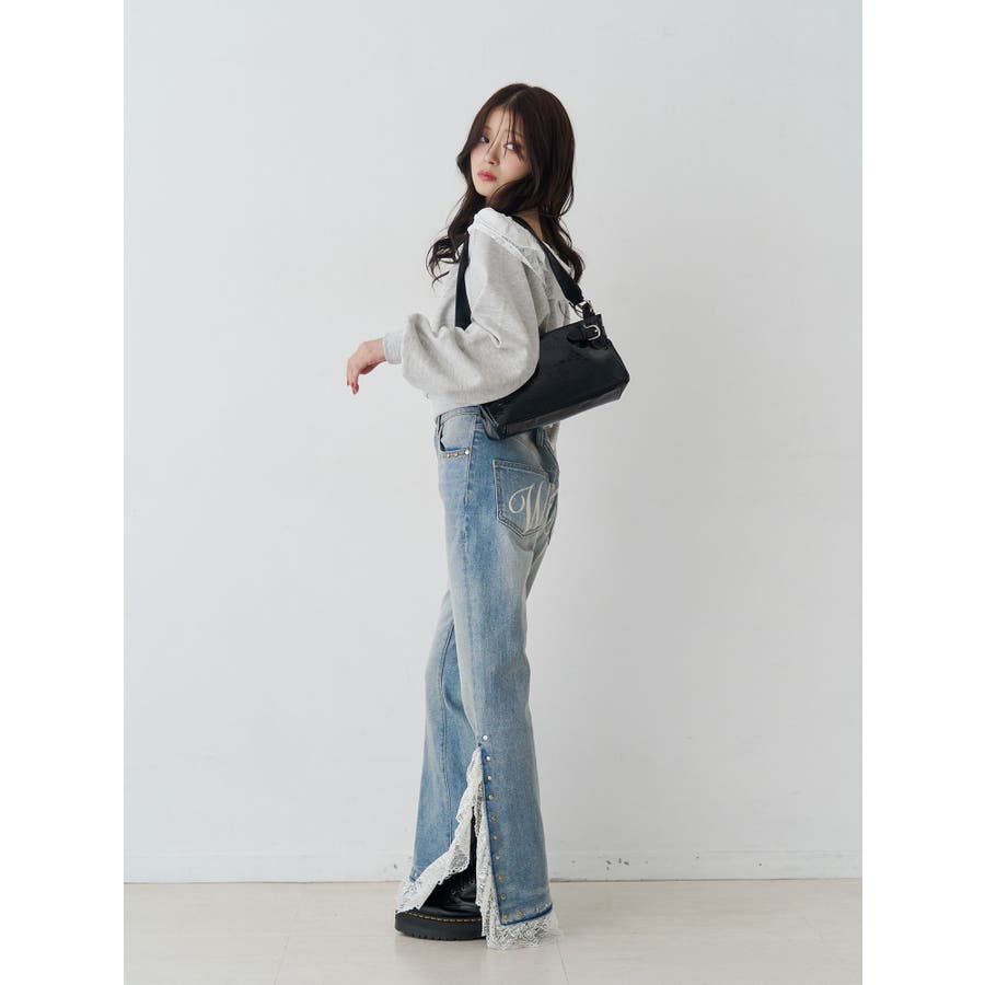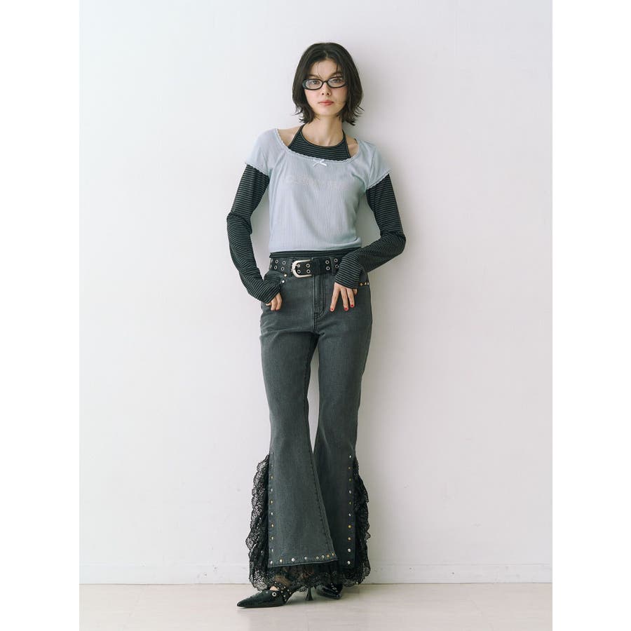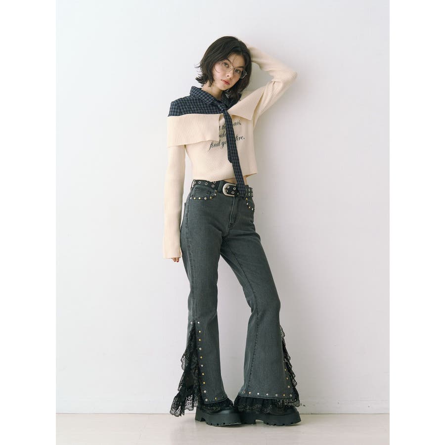 レースドッキングスタッズフレアデニム