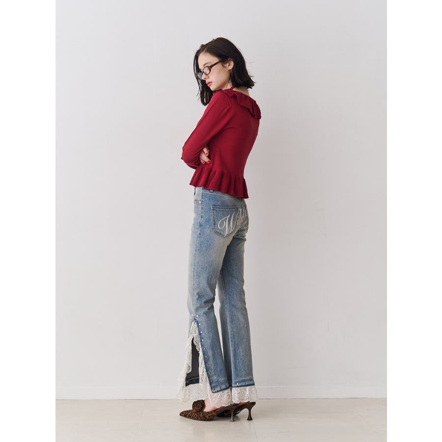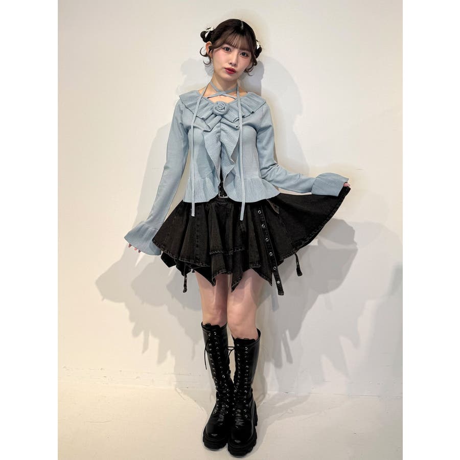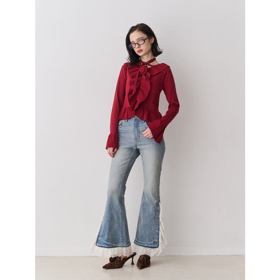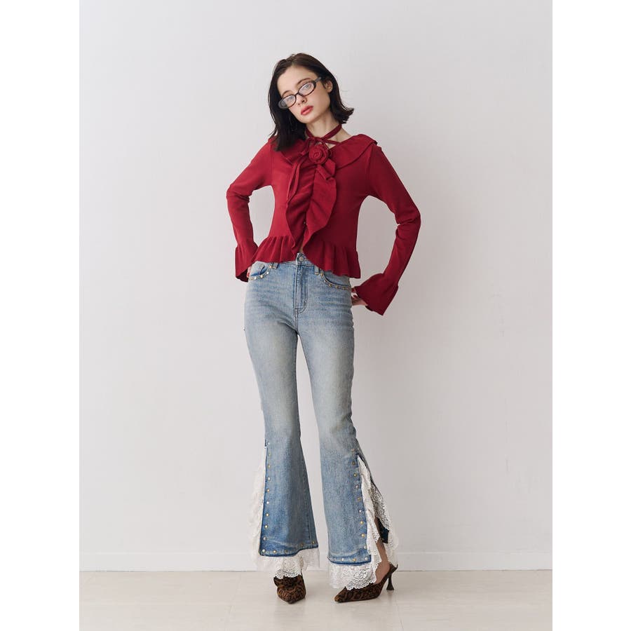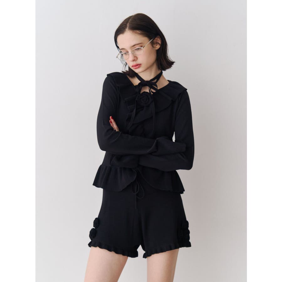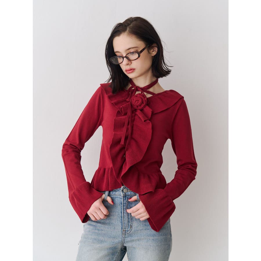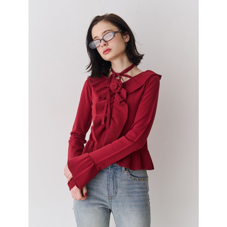 ラッフルフリルコサージュニット