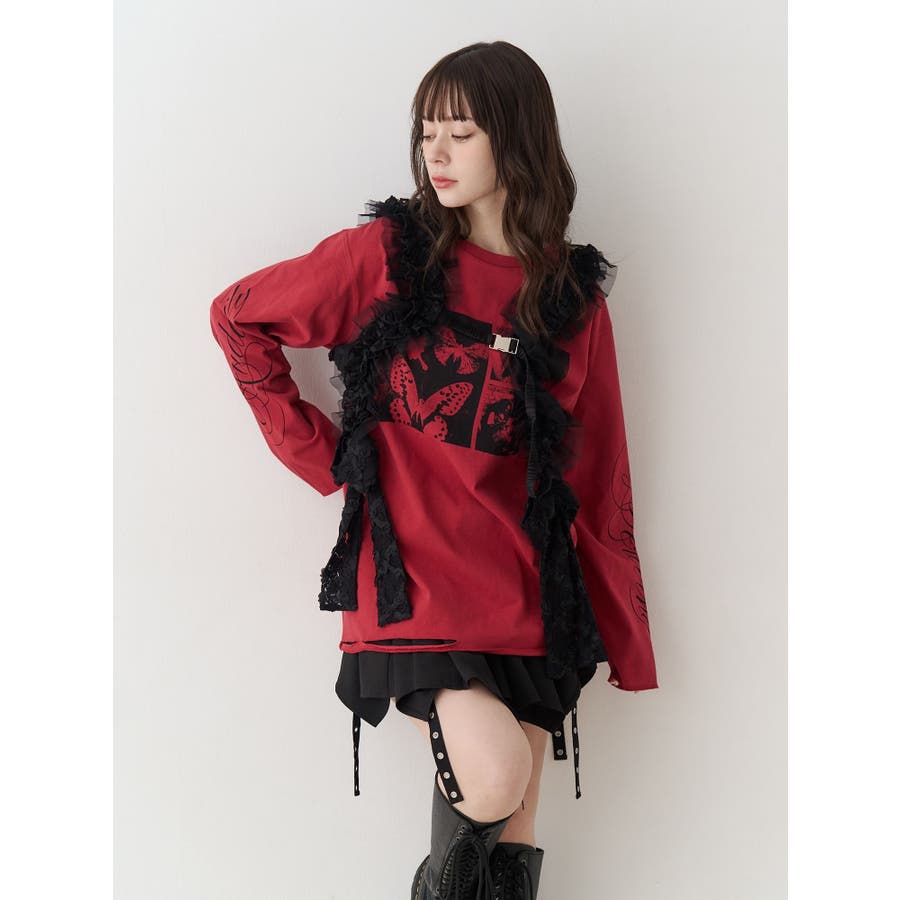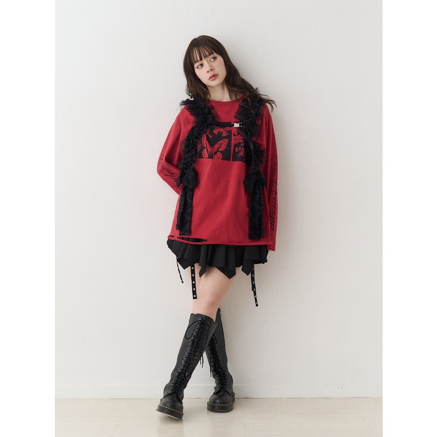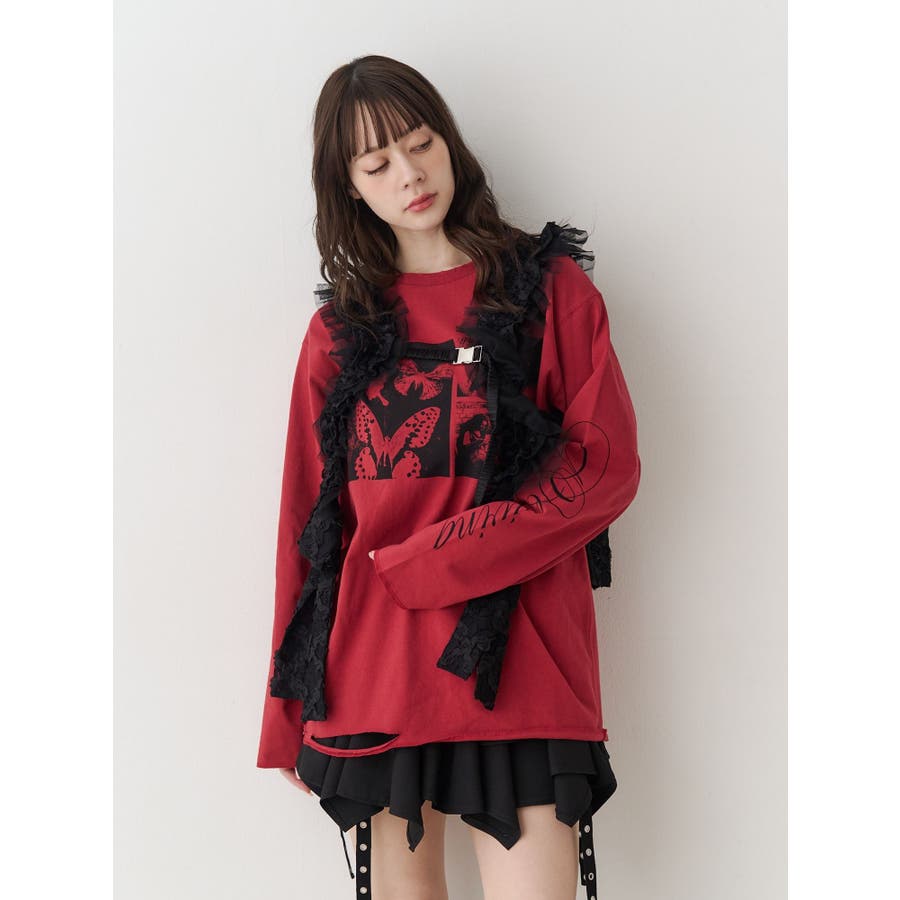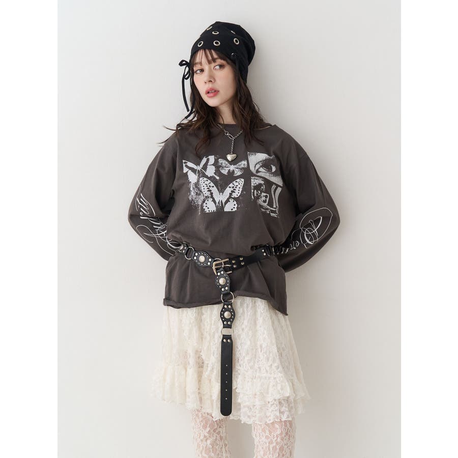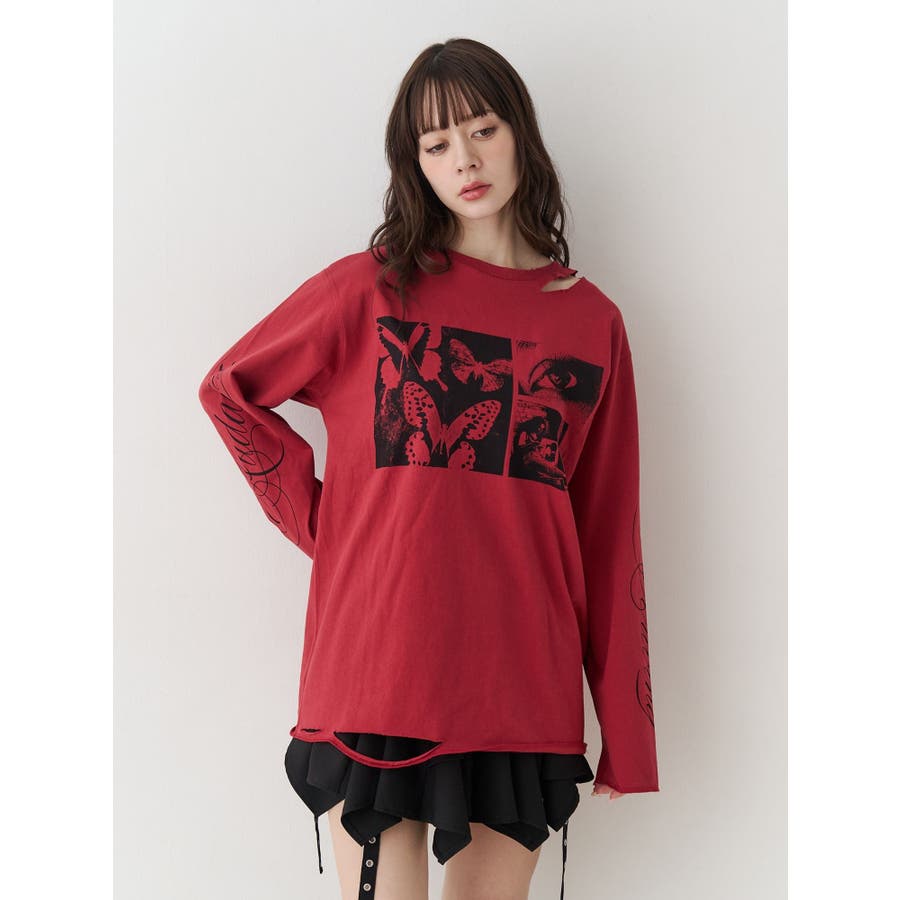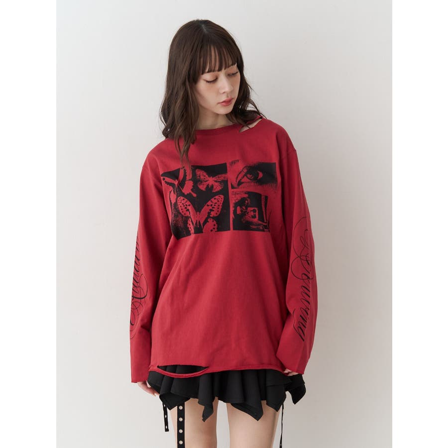 【ポイント】 jouetie定番のダメージロンTが今年も登場! 他にはないグランジグラフィックと衿元&裾のダメージ加工がポイント! アウターのインナーにもおすすめで一枚でも決まるアイテムです! 【スタイリング】 オーバーサイズなので一枚でチュニック風に着るのがかわいいです! 袖にもグラフィックが入っているのでレイヤードしても◎ チュチュスカートなどミニスカートで甘辛MIXなスタイリングがjouetieならではです! ※着用画像はフラッシュの加減で実際の製品と色味等が異なる場合がございますので、生地のズームアップ画像をご確認ください。 ※ご利用の端末画面の設定により実際の商品と色味が異なる場合がございます。 ※正しいサイズはアイテムサイズ表をご確認ください。 ※商品のお取り扱いについては、脇についている洗濯ネーム類をご確認下さい。