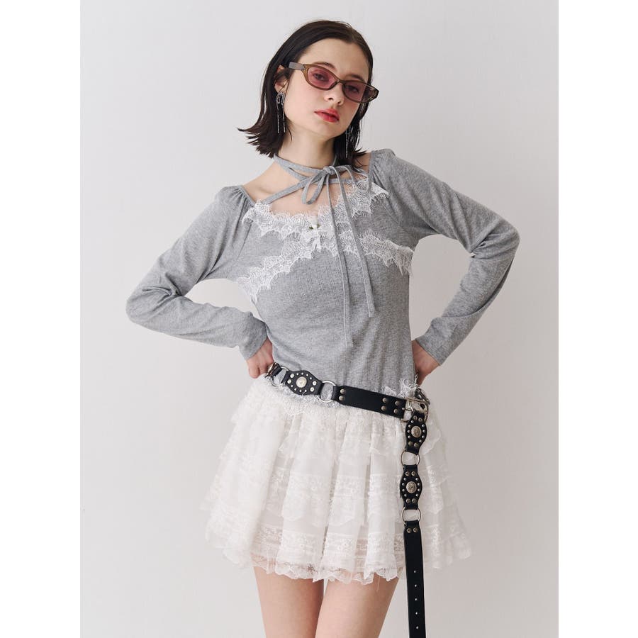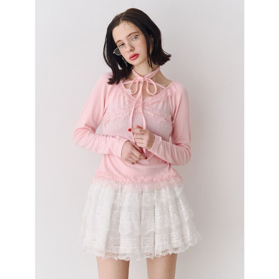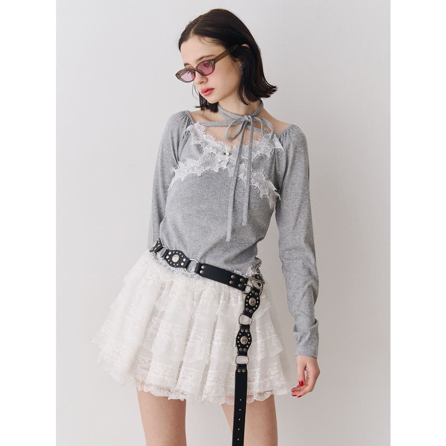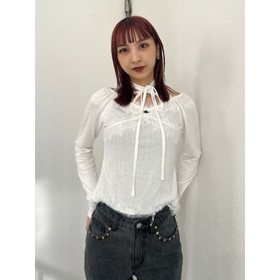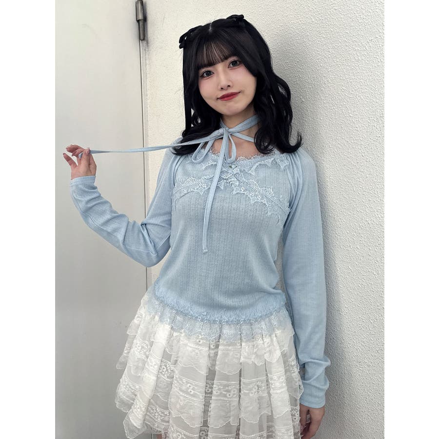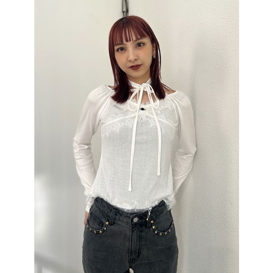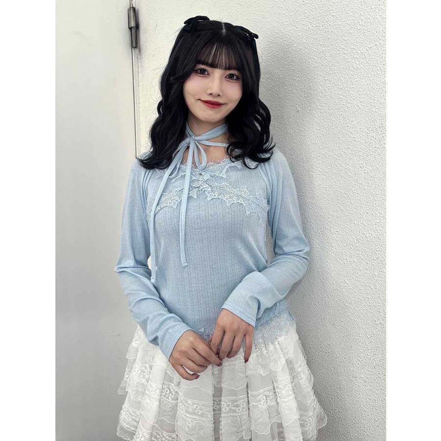 【ポイント】 レースドッキングデザインが甘めな印象のトップス。 一枚でもレイヤード使いでもポイントになるアイテムです! チョーカーのリボンは様々な巻き方でアレンジもお楽しみいただけます! 【スタイリング】 ミニスカートで思いっきりガーリーなスタイリングがかわいいです! フロントと裾のレースがポイントになるのでキャミワンピースやジャケットのインナーにも◎ カジュアルなデニム合わせまで幅広く使えるアイテムです。 ※着用画像はフラッシュの加減で実際の製品と色味等が異なる場合がございますので、生地のズームアップ画像をご確認ください。 ※ご利用の端末画面の設定により実際の商品と色味が異なる場合がございます。 ※正しいサイズはアイテムサイズ表をご確認ください ※商品のお取り扱いについては、脇についている洗濯ネーム類をご確認下さい。