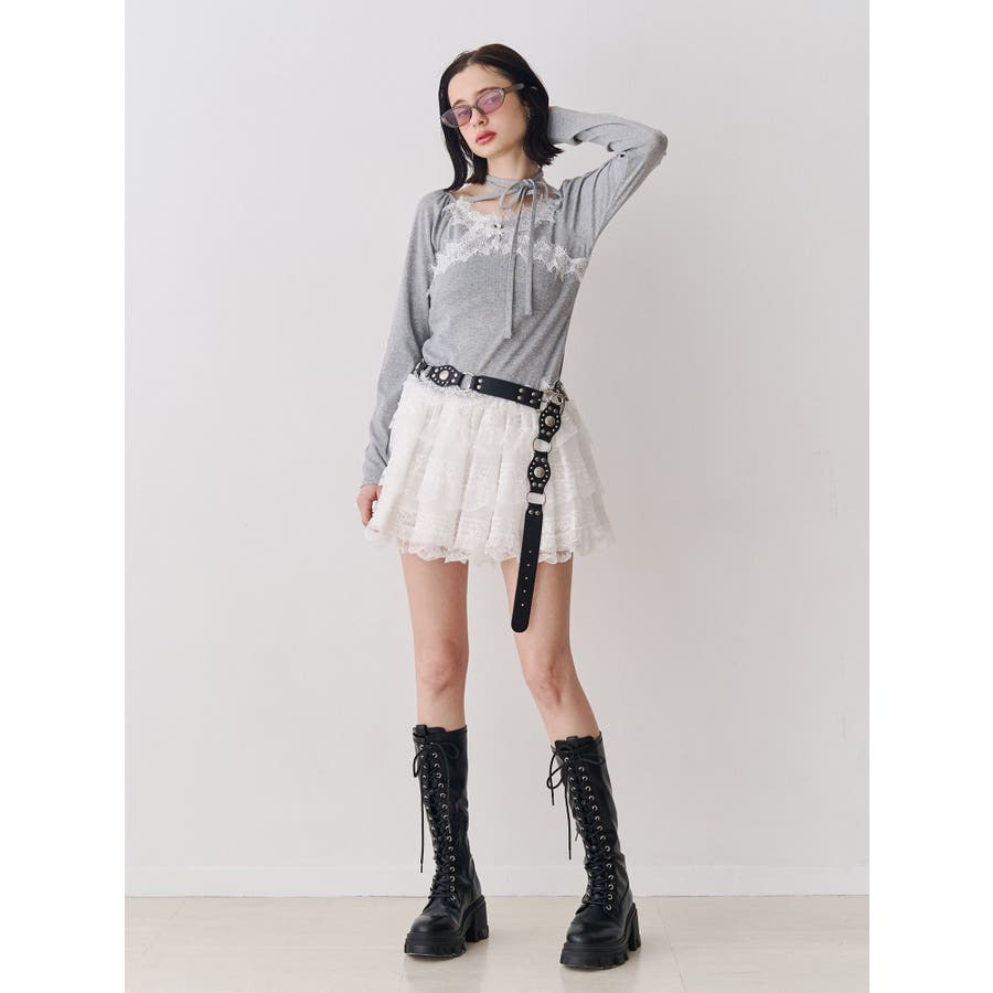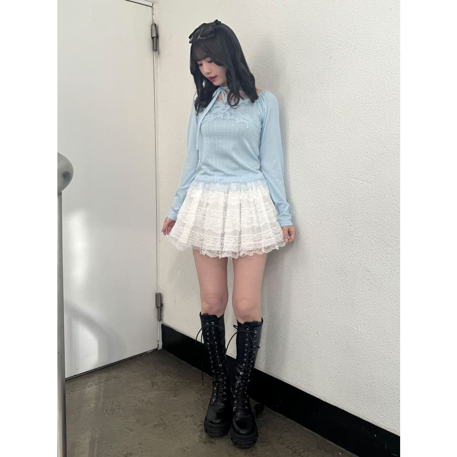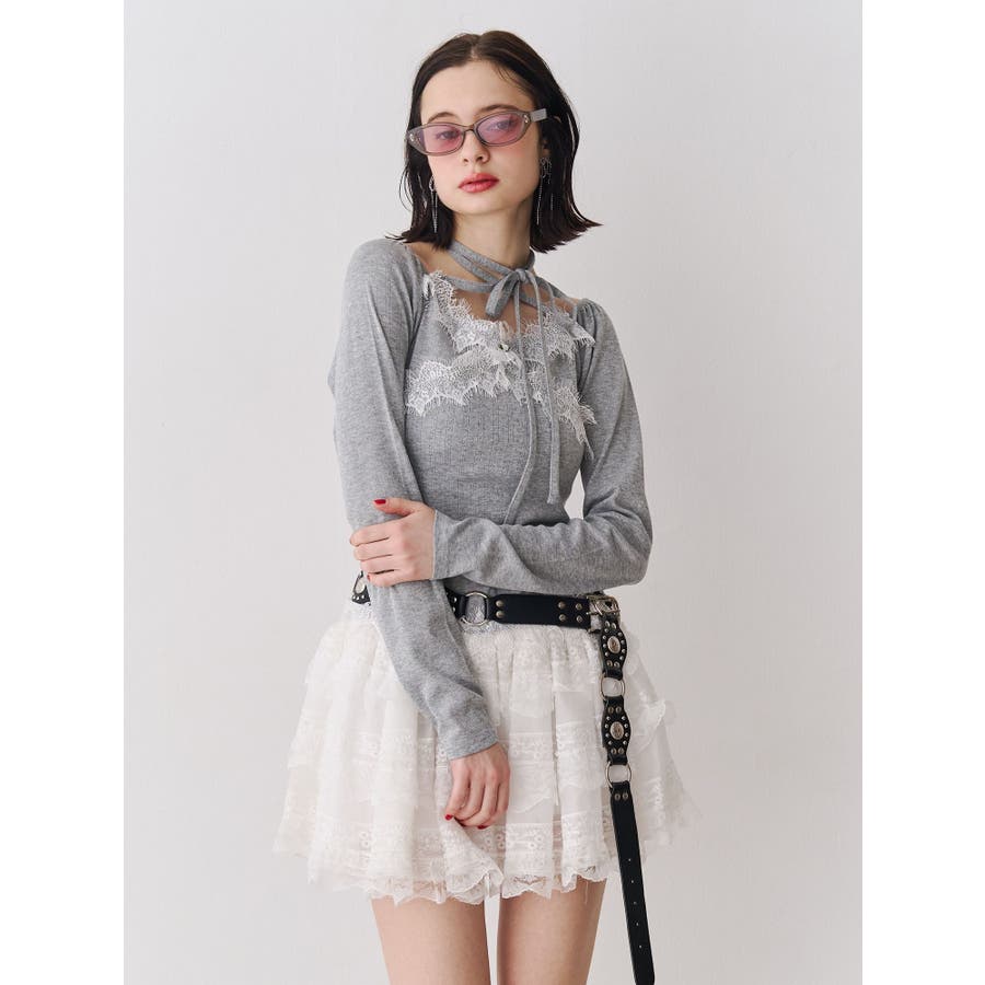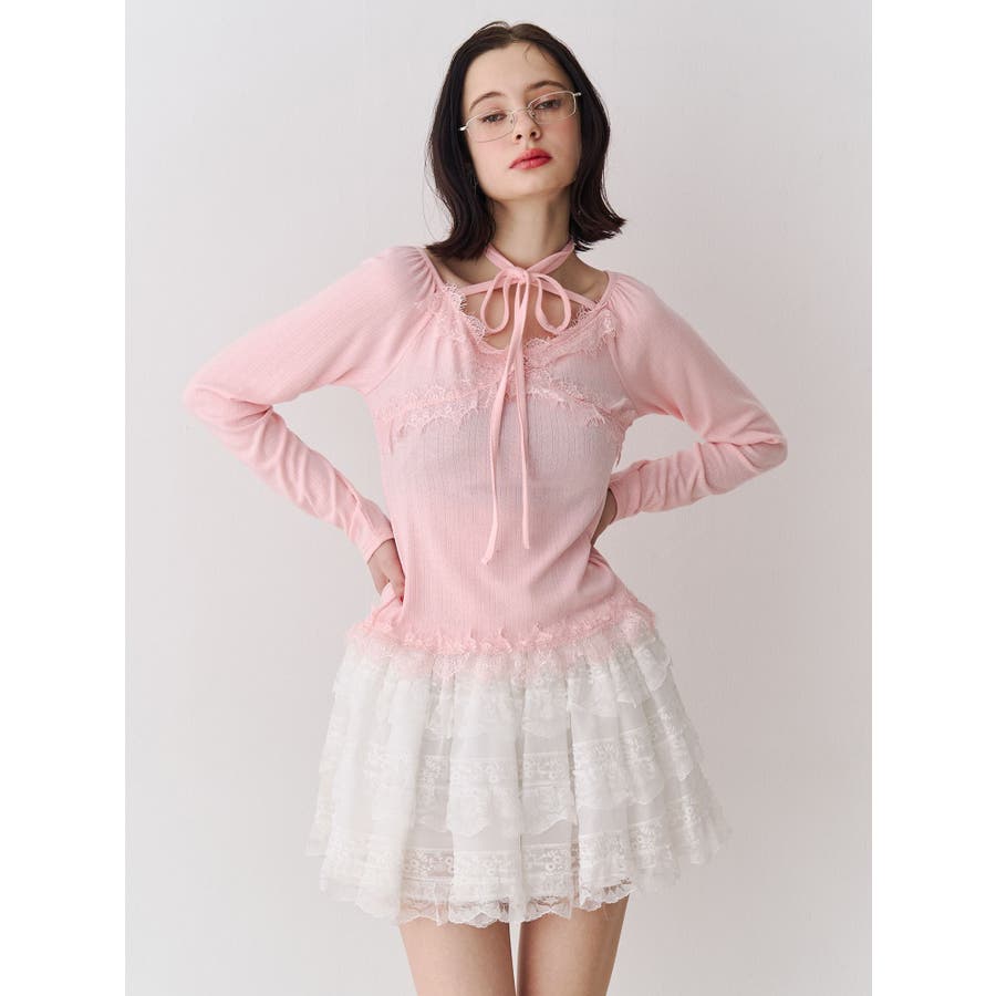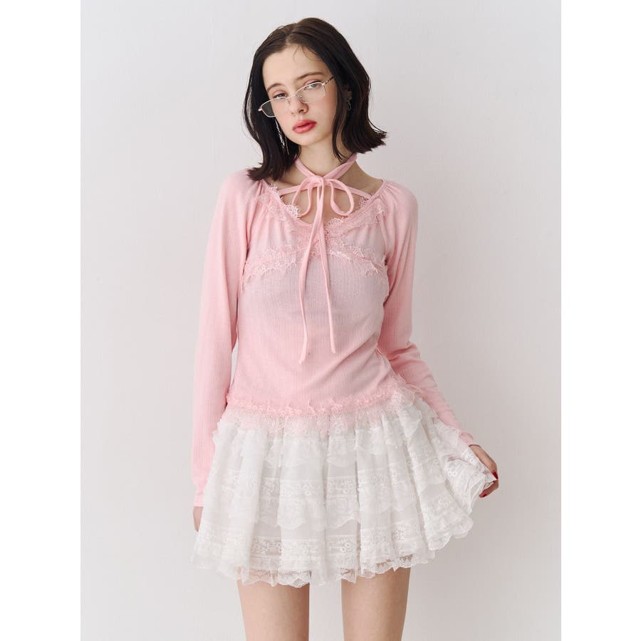 【ポイント】 レースドッキングデザインが甘めな印象のトップス。 一枚でもレイヤード使いでもポイントになるアイテムです! チョーカーのリボンは様々な巻き方でアレンジもお楽しみいただけます! 【スタイリング】 ミニスカートで思いっきりガーリーなスタイリングがかわいいです! フロントと裾のレースがポイントになるのでキャミワンピースやジャケットのインナーにも◎ カジュアルなデニム合わせまで幅広く使えるアイテムです。 ※着用画像はフラッシュの加減で実際の製品と色味等が異なる場合がございますので、生地のズームアップ画像をご確認ください。 ※ご利用の端末画面の設定により実際の商品と色味が異なる場合がございます。 ※正しいサイズはアイテムサイズ表をご確認ください ※商品のお取り扱いについては、脇についている洗濯ネーム類をご確認下さい。