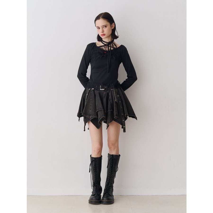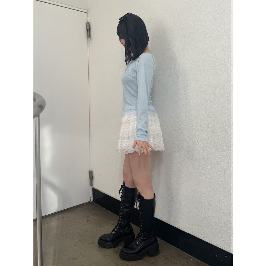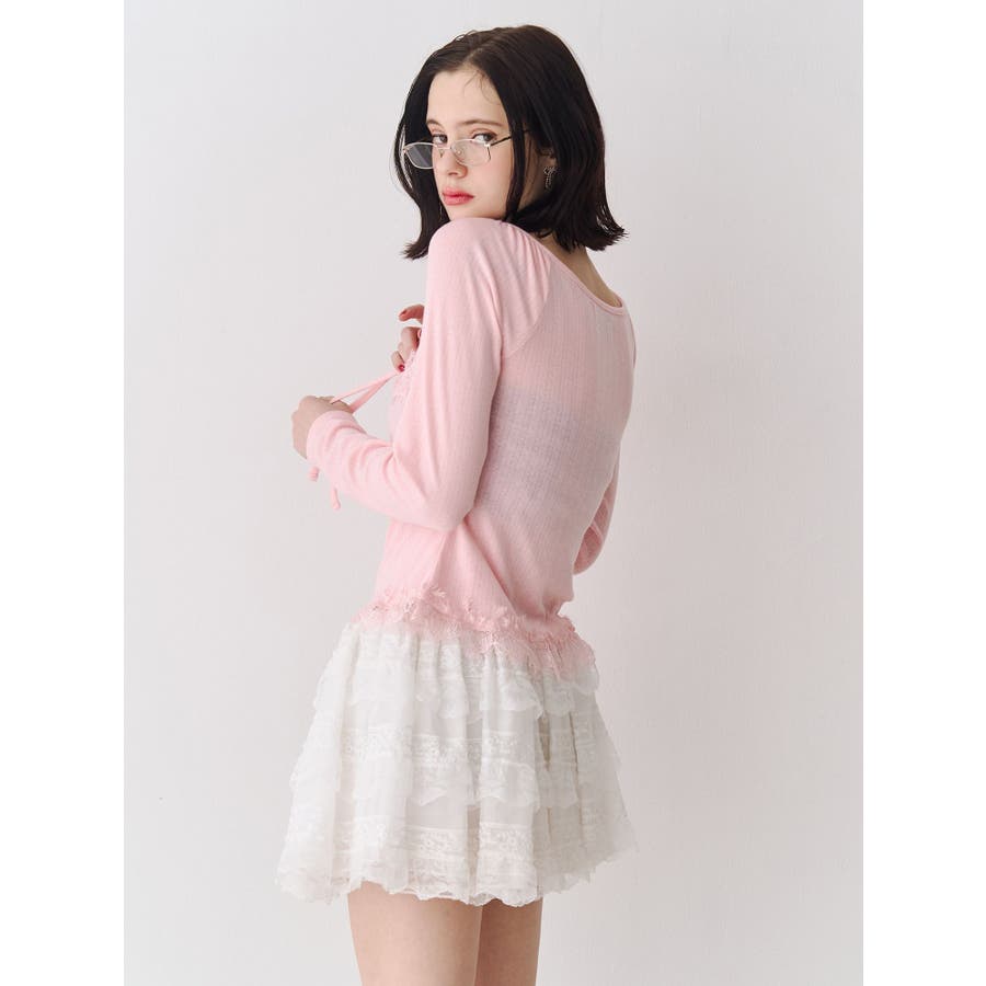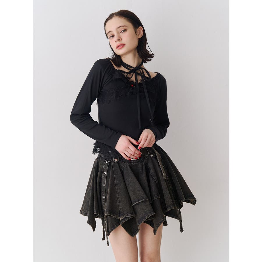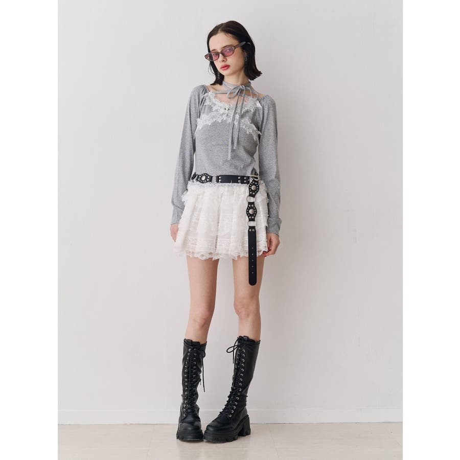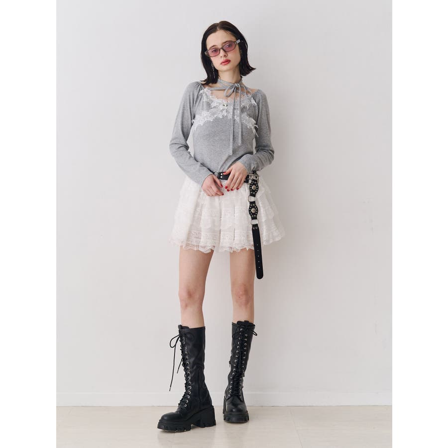 【ポイント】 レースドッキングデザインが甘めな印象のトップス。 一枚でもレイヤード使いでもポイントになるアイテムです! チョーカーのリボンは様々な巻き方でアレンジもお楽しみいただけます! 【スタイリング】 ミニスカートで思いっきりガーリーなスタイリングがかわいいです! フロントと裾のレースがポイントになるのでキャミワンピースやジャケットのインナーにも◎ カジュアルなデニム合わせまで幅広く使えるアイテムです。 ※着用画像はフラッシュの加減で実際の製品と色味等が異なる場合がございますので、生地のズームアップ画像をご確認ください。 ※ご利用の端末画面の設定により実際の商品と色味が異なる場合がございます。 ※正しいサイズはアイテムサイズ表をご確認ください ※商品のお取り扱いについては、脇についている洗濯ネーム類をご確認下さい。