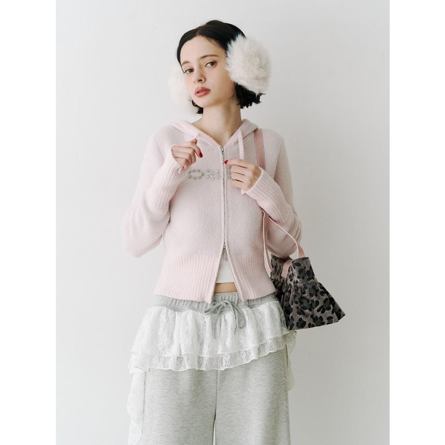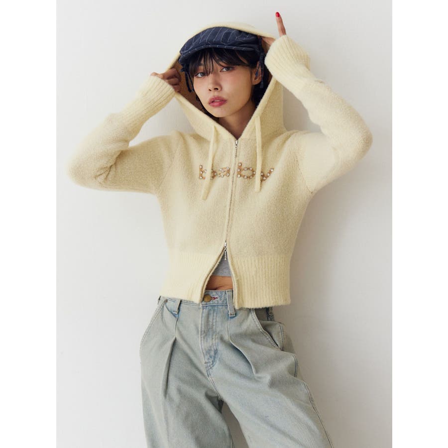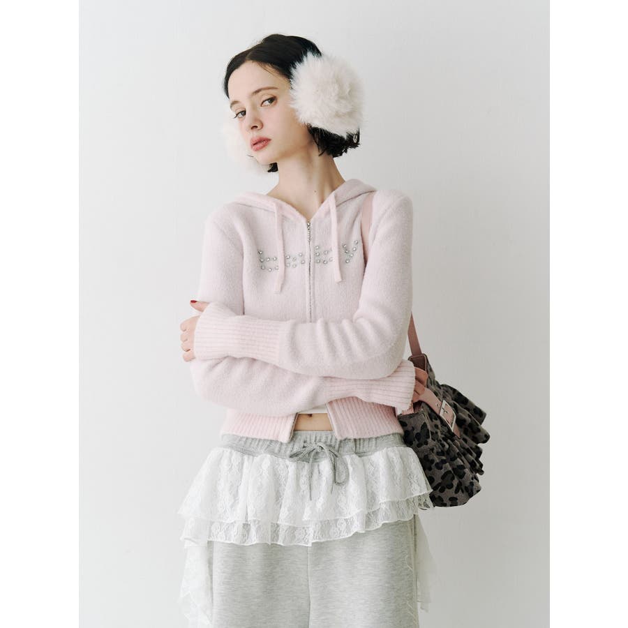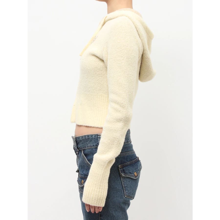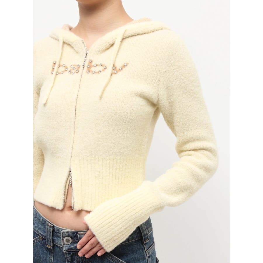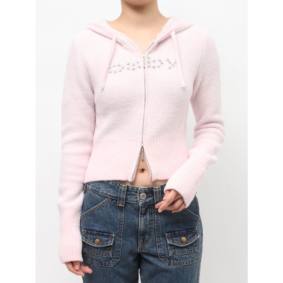 【ポイント】 柔らかくふわふわとした、肌触りの良いニット素材で仕上げたフーディ。 着心地見た目も暖かく、春を予感させる淡いカラーリングが可愛らしいニット。 フロントには「baby」ロゴをラインストーンでデコレーションし、カジュアルな中にきらめきをプラス。 【スタイリング】 コンパクトな丈感とリブ切り替えで、スタイルアップ効果も抜群。 ワンピースやレーススカートに合わせた甘めスタイリングはもちろん、デニムやカーゴパンツでストリートに振るのもおすすめです。 ※着用画像はフラッシュの加減で実際の製品と色味等が異なる場合がございますので、生地のズームアップ画像をご確認ください。 ※ご利用の端末画面の設定により実際の商品と色味が異なる場合がございます。 ※正しいサイズはアイテムサイズ表をご確認ください。 ※商品のお取り扱いについては、脇についている洗濯ネーム類をご確認下さい。【商品特徴】透け感:なし伸縮性:あり生地の厚さ:普通サイズ感:細身裏地:なしポケット:なし