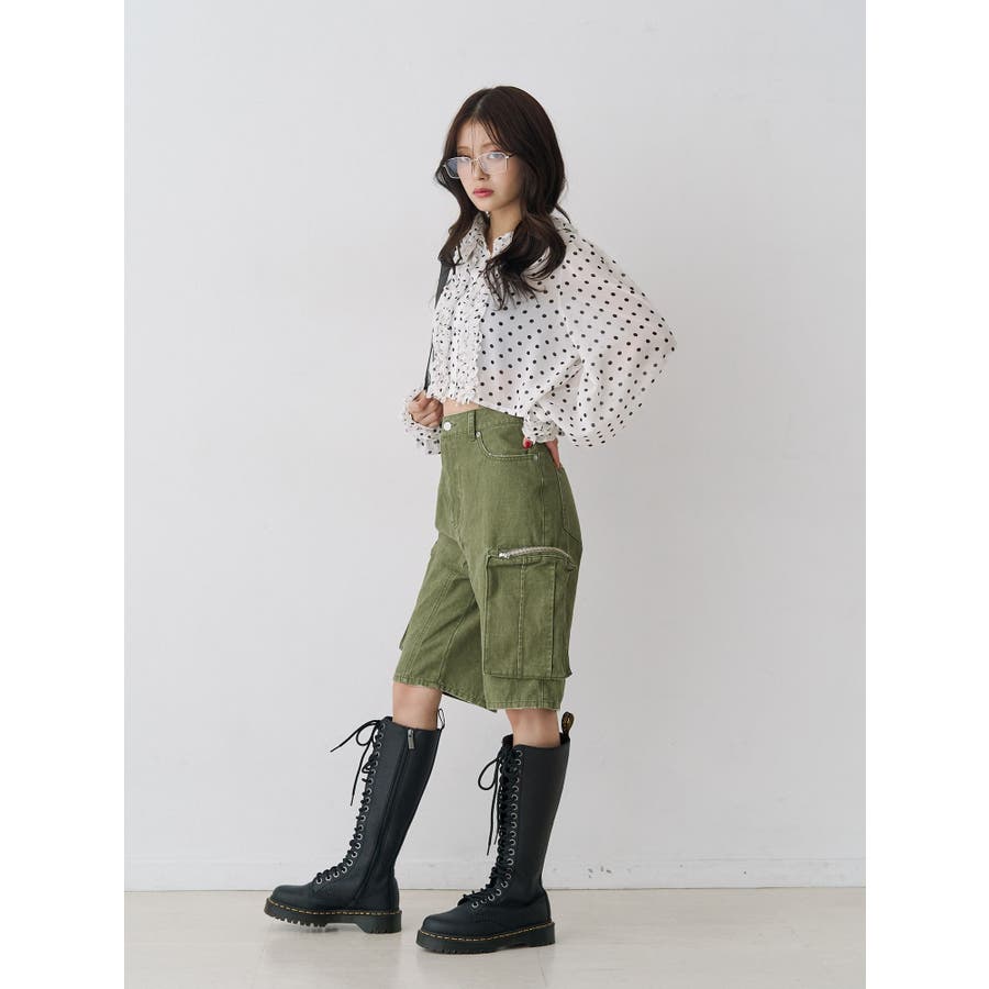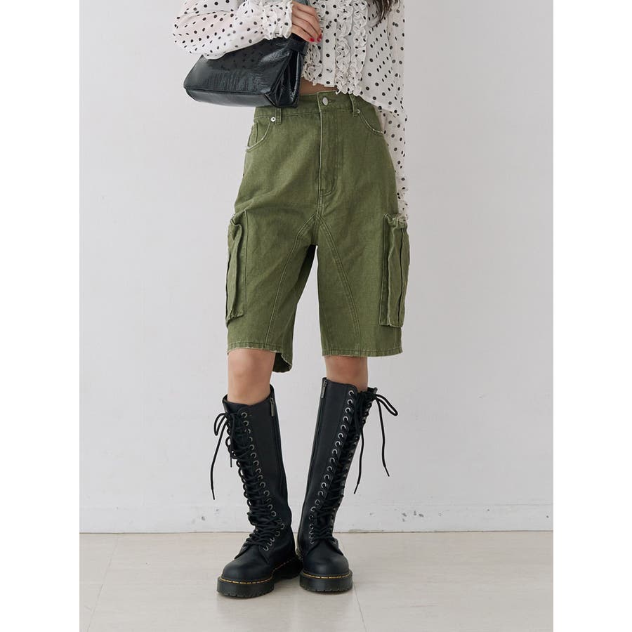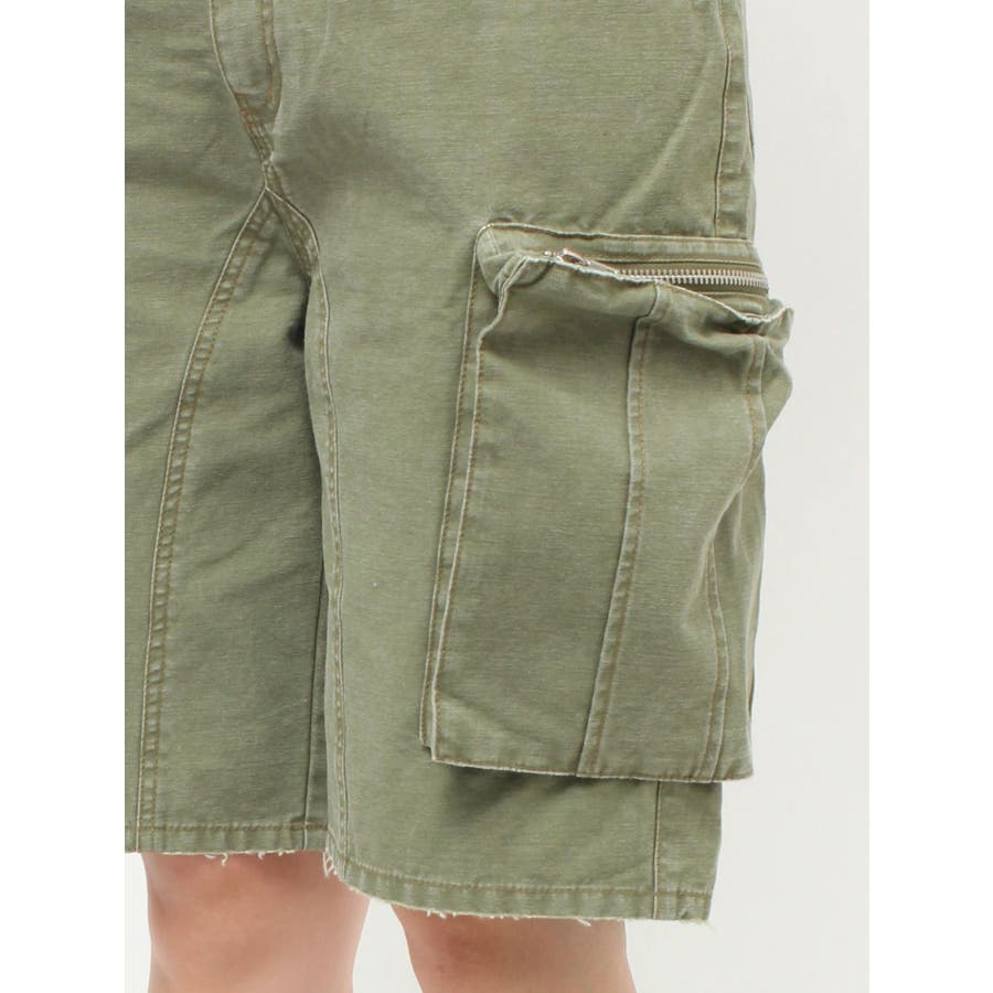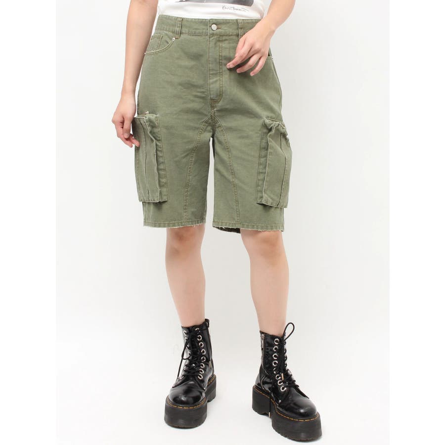 【ポイント】ストリートムード漂うjouetieらしいカーゴショーツ。ワークテイストなデザインに、サイドのビッグポケットとメタルジップでエッジを効かせました。USEDライクな素材を採用し、程よいハリ感と着古したような風合いが魅力。太ももにかかる長めの丈感で、ルーズさと女性らしさを両立したバランスに。【スタイリング】Tシャツやスウェット合わせはもちろん、クロップドトップスやガーリーブラウスで外したスタイリングもおすすめ。カラー展開も豊富で、着こなし次第でストリートにもフェミニンにもハマる万能ショーツです。【修正コメント】(1)生地が変更になる可能性があります。