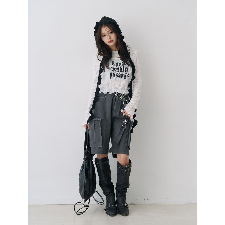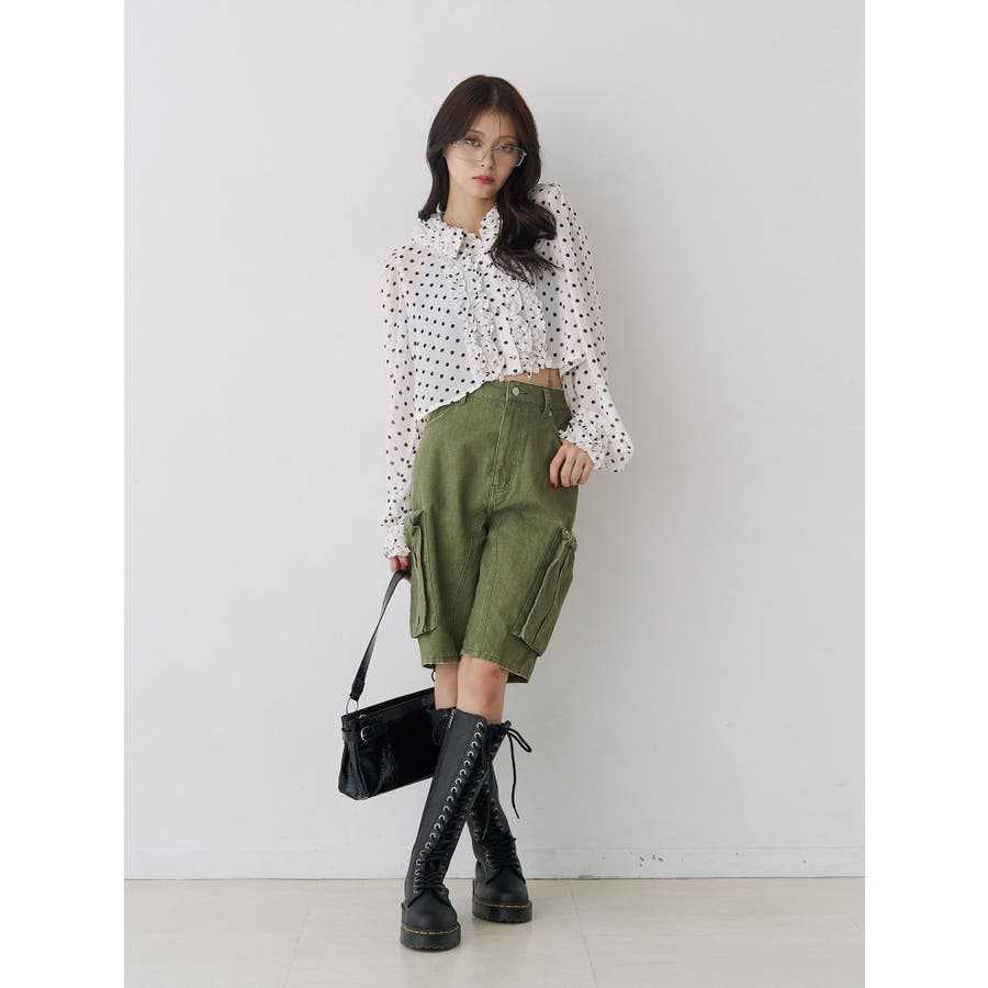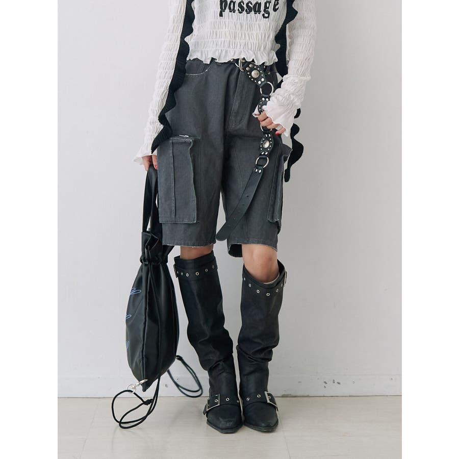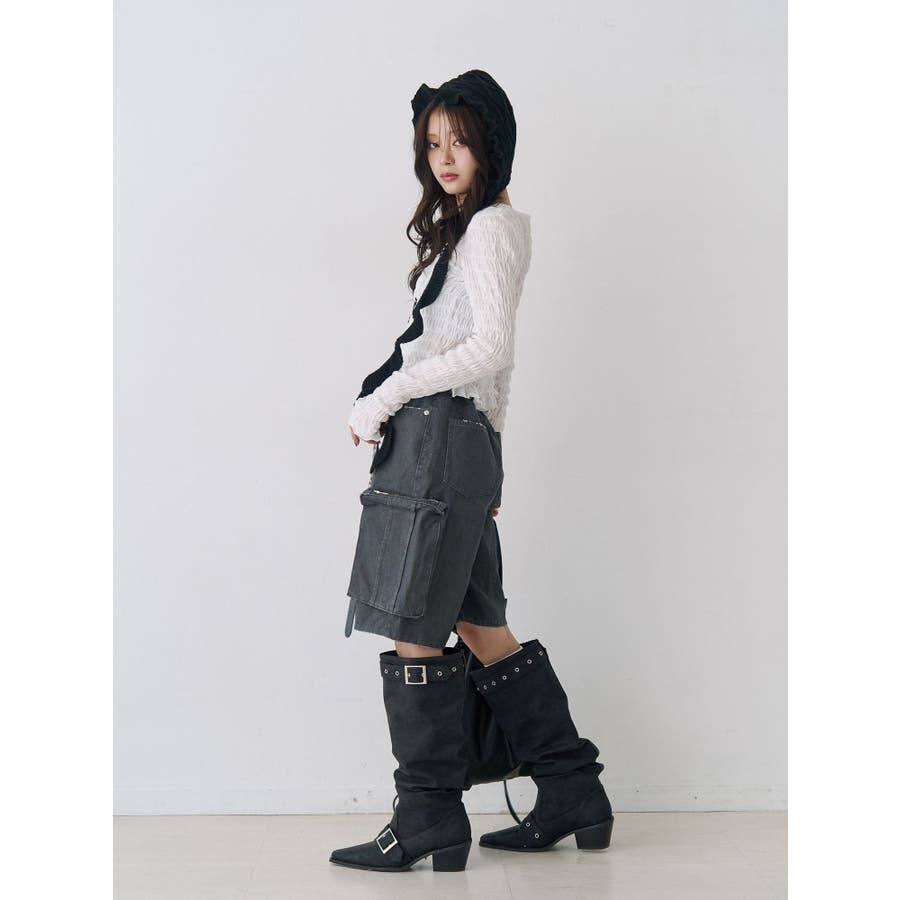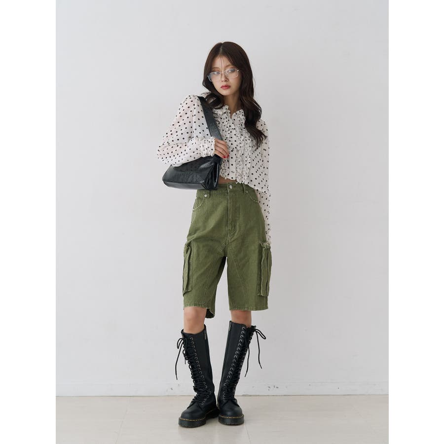 【ポイント】ストリートムード漂うjouetieらしいカーゴショーツ。ワークテイストなデザインに、サイドのビッグポケットとメタルジップでエッジを効かせました。USEDライクな素材を採用し、程よいハリ感と着古したような風合いが魅力。太ももにかかる長めの丈感で、ルーズさと女性らしさを両立したバランスに。【スタイリング】Tシャツやスウェット合わせはもちろん、クロップドトップスやガーリーブラウスで外したスタイリングもおすすめ。カラー展開も豊富で、着こなし次第でストリートにもフェミニンにもハマる万能ショーツです。【修正コメント】(1)生地が変更になる可能性があります。