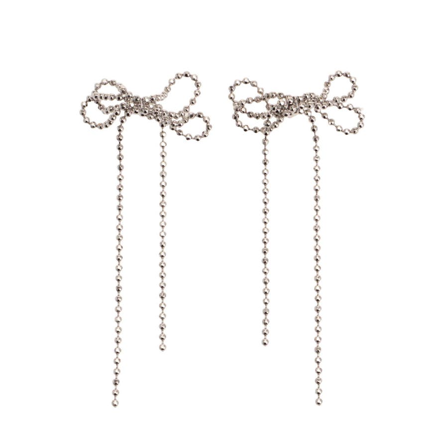 ボールチェーンリボンピアス