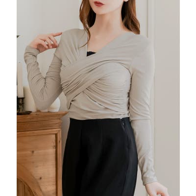 骨格ウェーブ 10代 20代 30代 40代 オシャレ おでかけ ガーリー カジュアル ギャル フェミニン レディース 可愛い 韓国 韓国ファッション 人気 大人 Vネック Y2K オフィス オフィスカジュアル カットソー シンプル セクシー トップス 秋 秋冬 秋服 長袖 冬 冬服