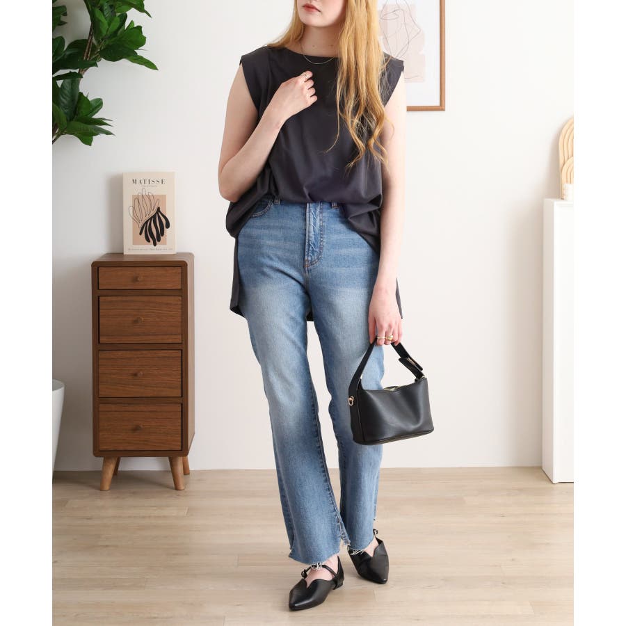 シンプルにカーブデニムパンツ(ジーンズ)やイージーパンツ、ワイドパンツに合わせるカジュアルスタイルも◎