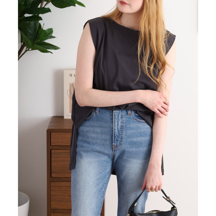 ボートネックの程よい開きが顔まわりをすっきりと見せ、カジュアルにもきれいめにもマッチする万能トップスです。
