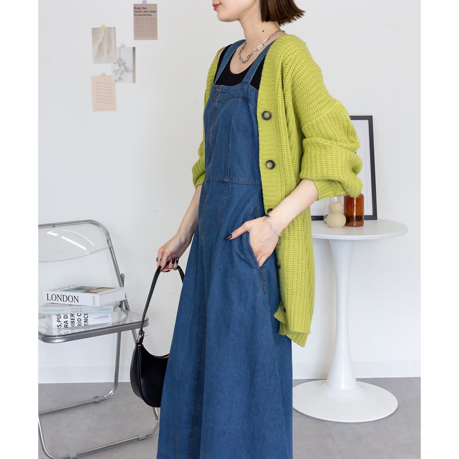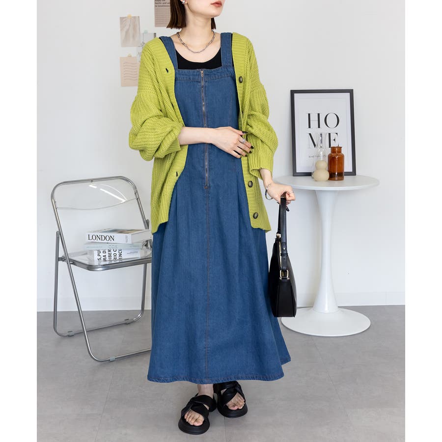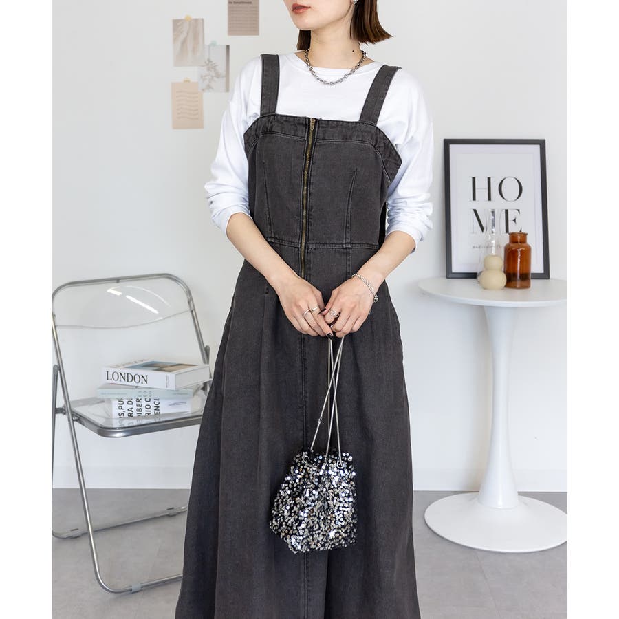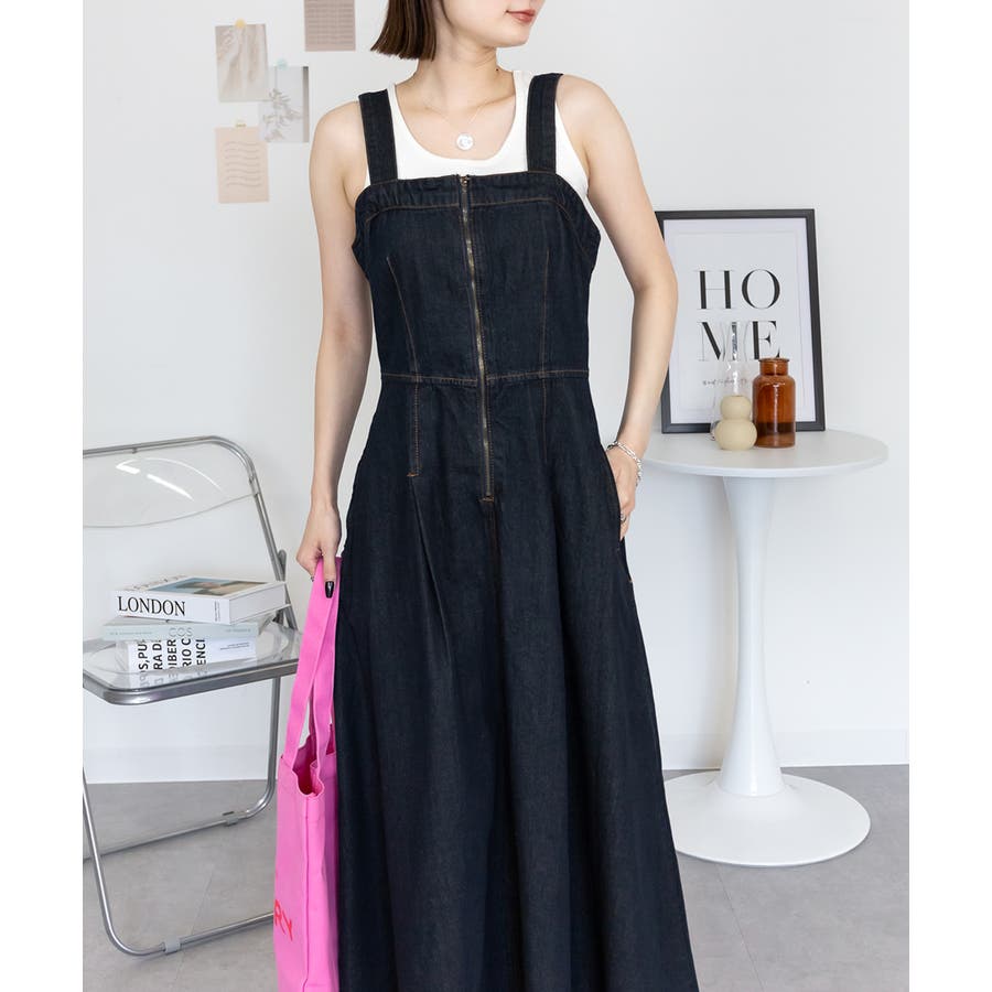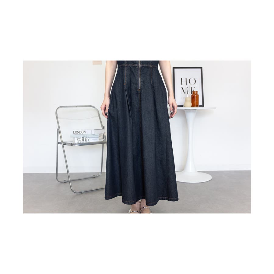 フロントジップがアクセントになったデニムジャンスカ。