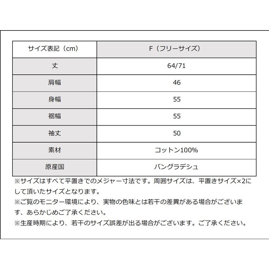 [Fサイズ]着丈(前/後):64/71cm、肩幅:46cm、身幅:55cm、袖ぐり:20cm、袖丈:50cm、裾幅:55cm