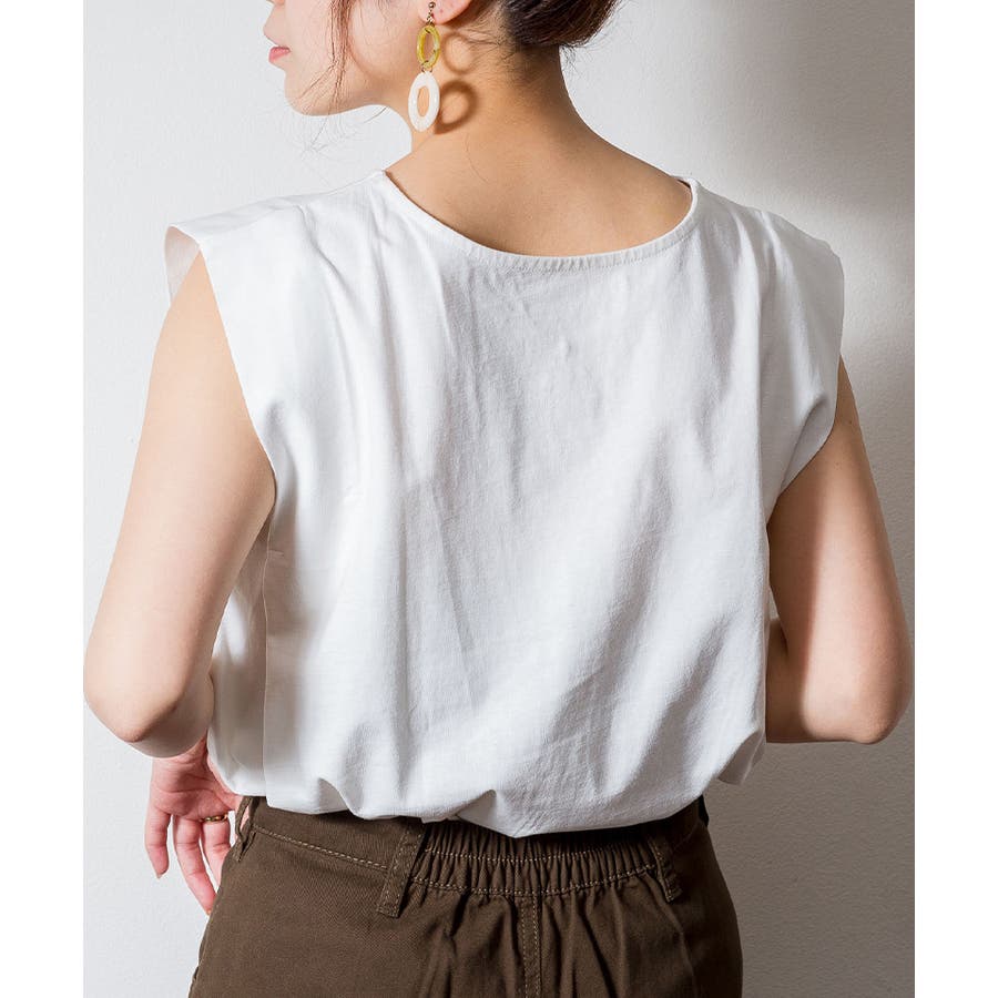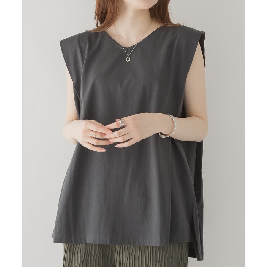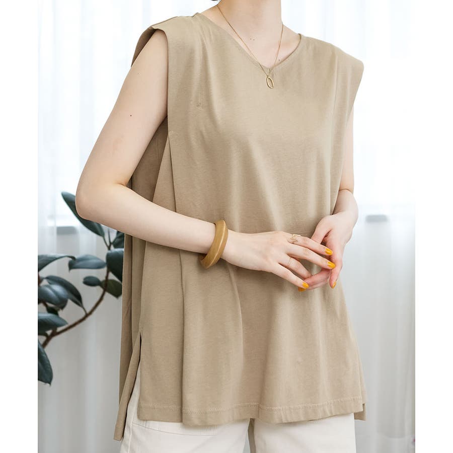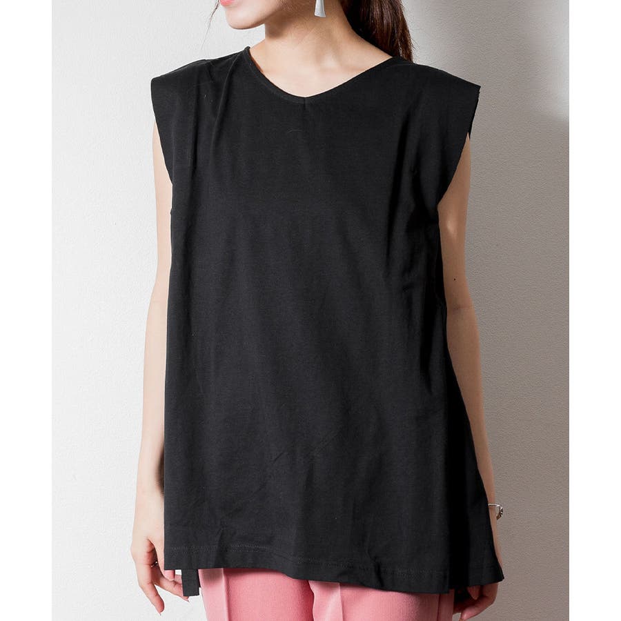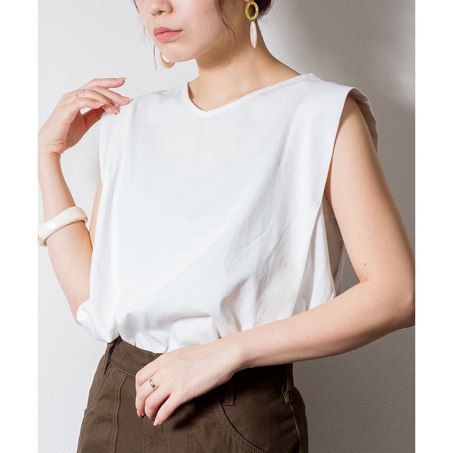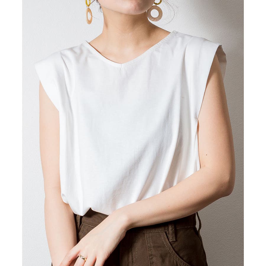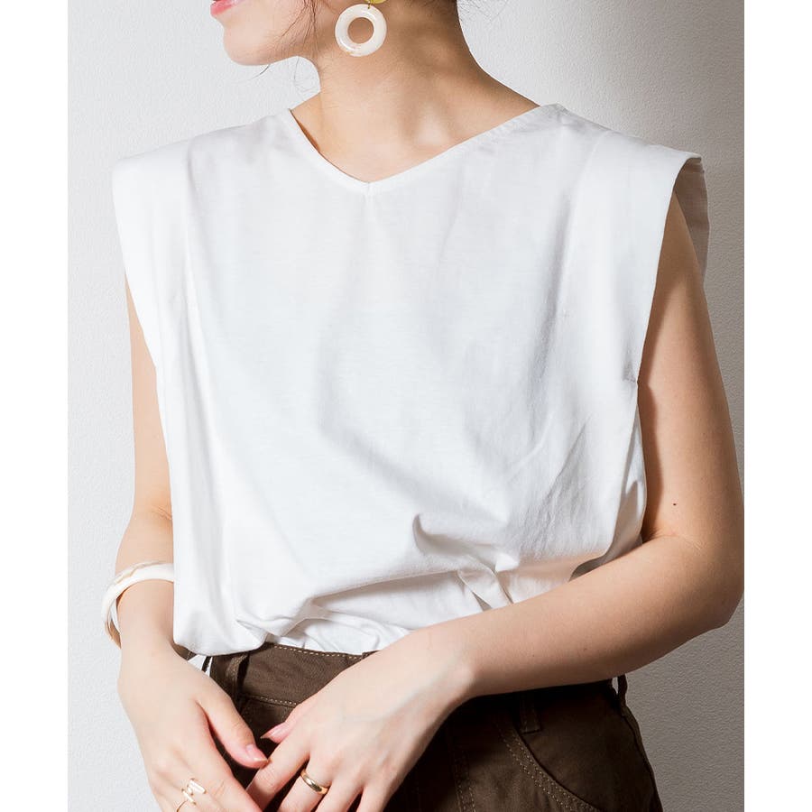 パワーショルダーなシルエットが旬な印象のノースリーブカットソー。
