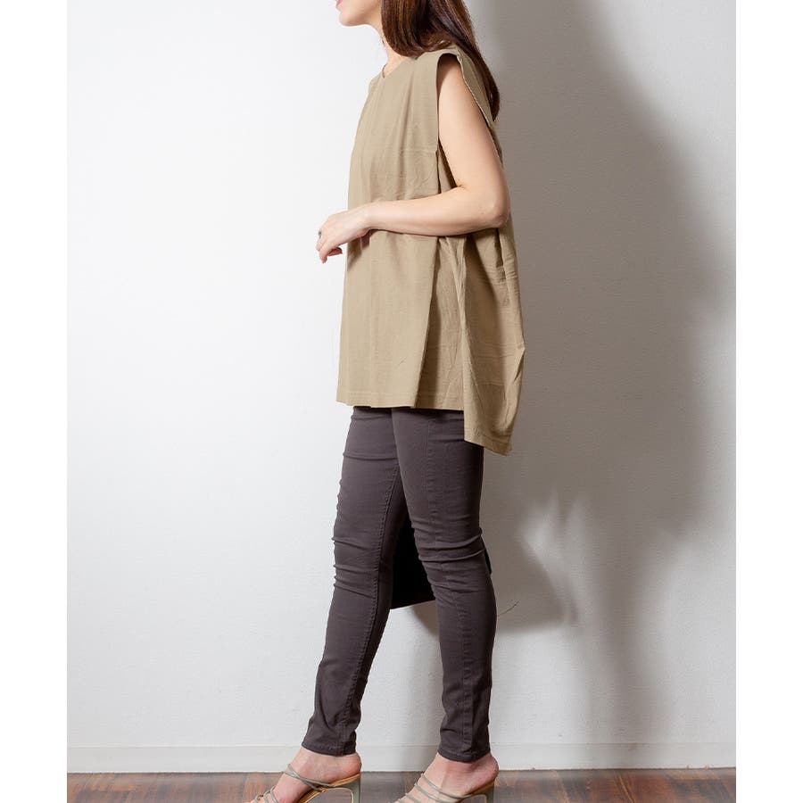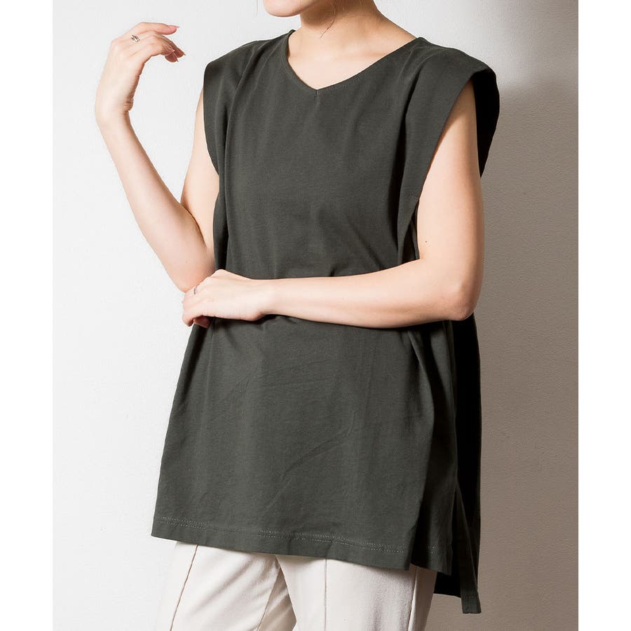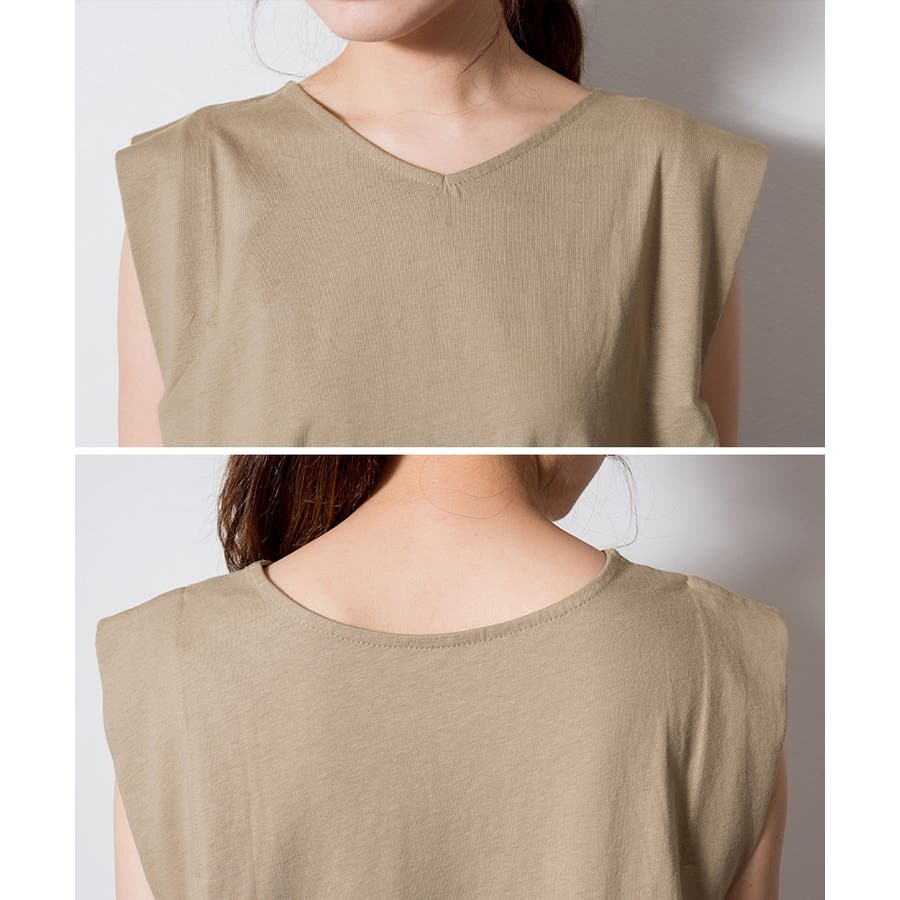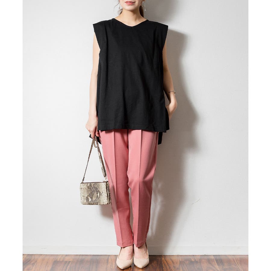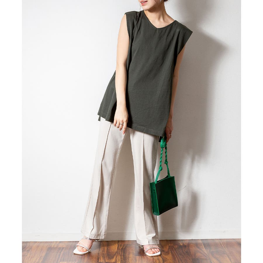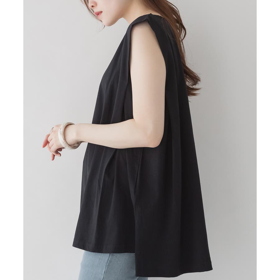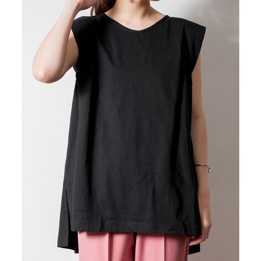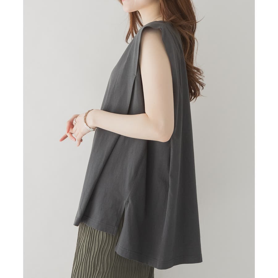 パワーショルダーなシルエットが旬な印象のノースリーブカットソー。