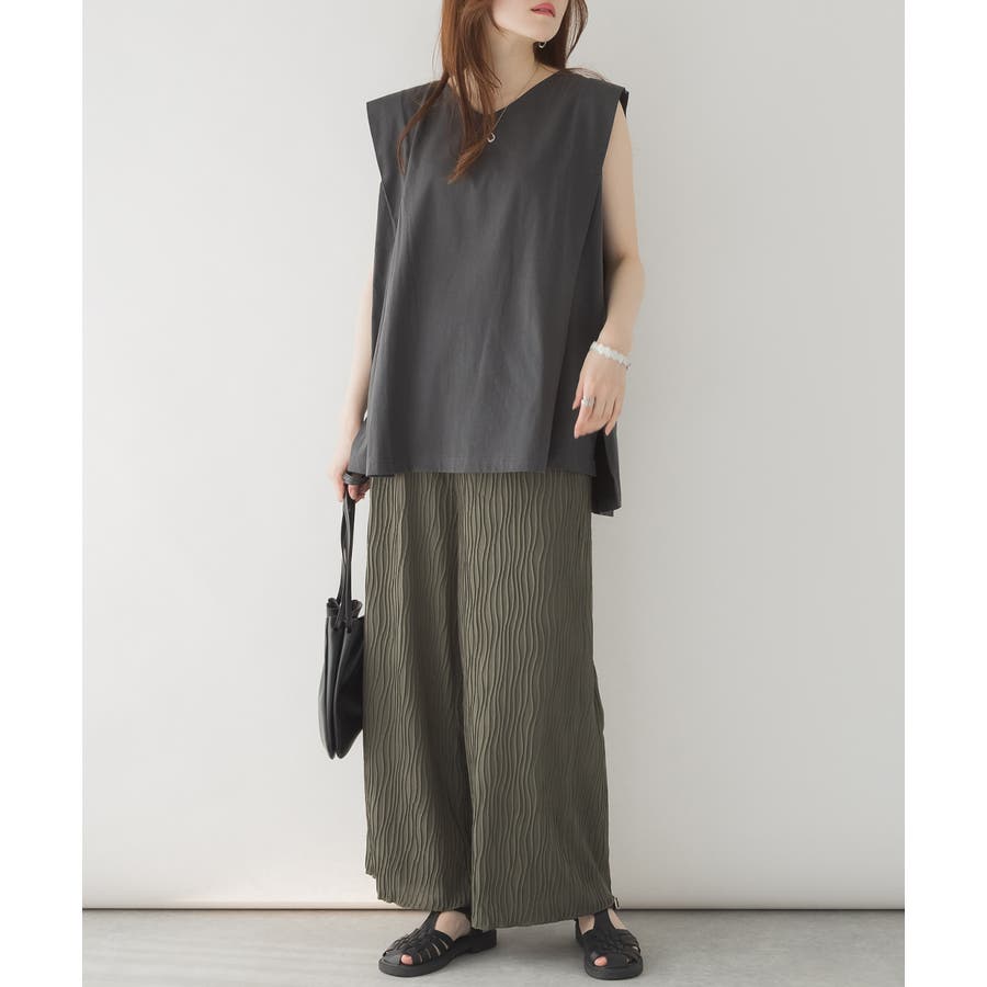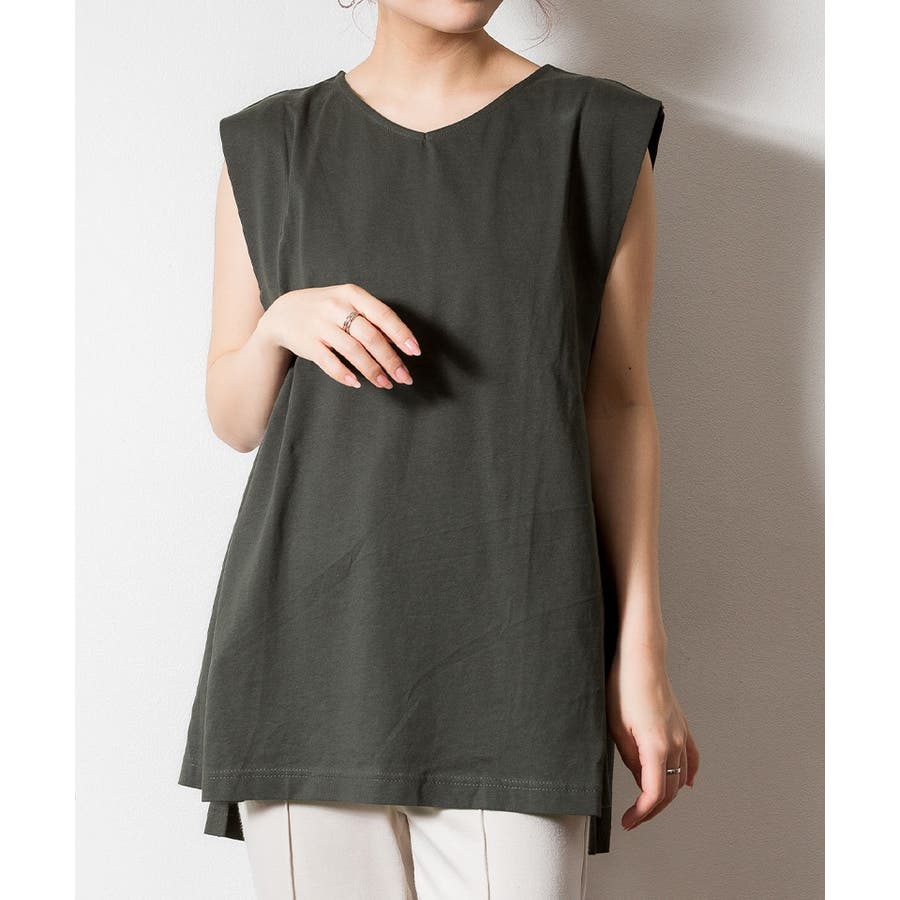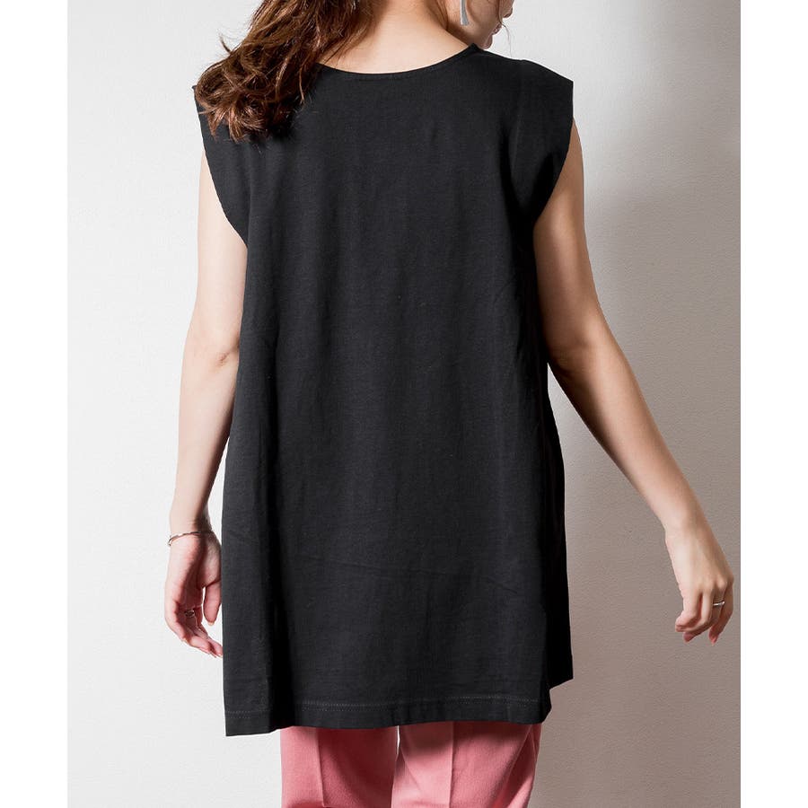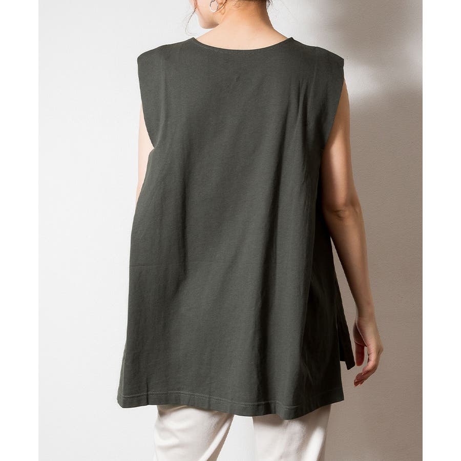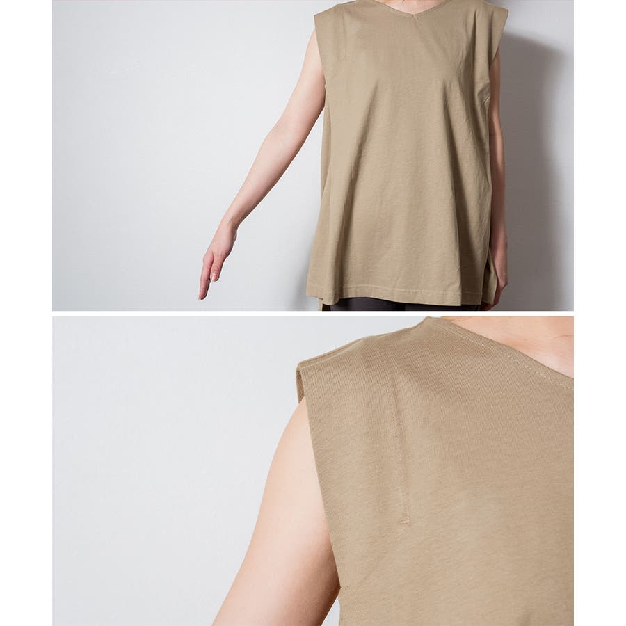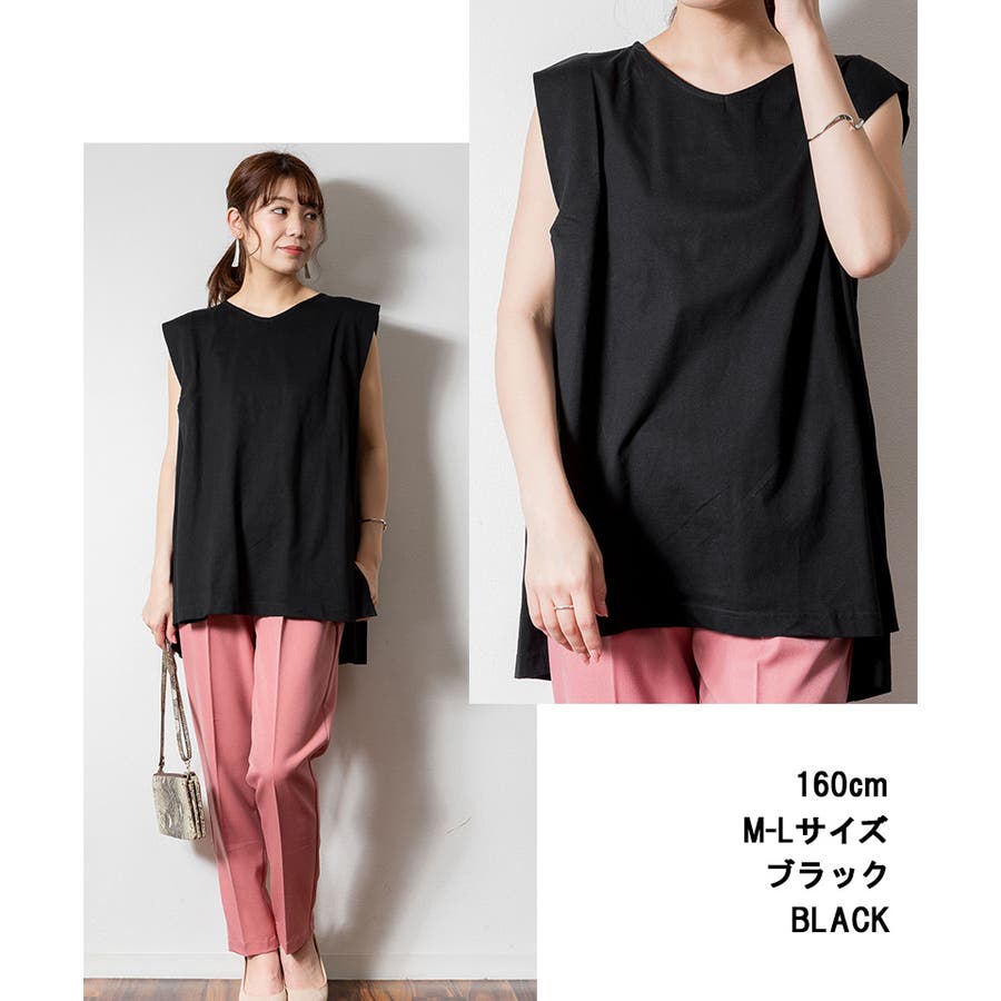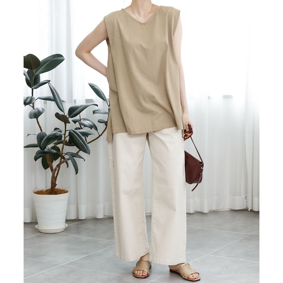 パワーショルダーなシルエットが旬な印象のノースリーブカットソー。