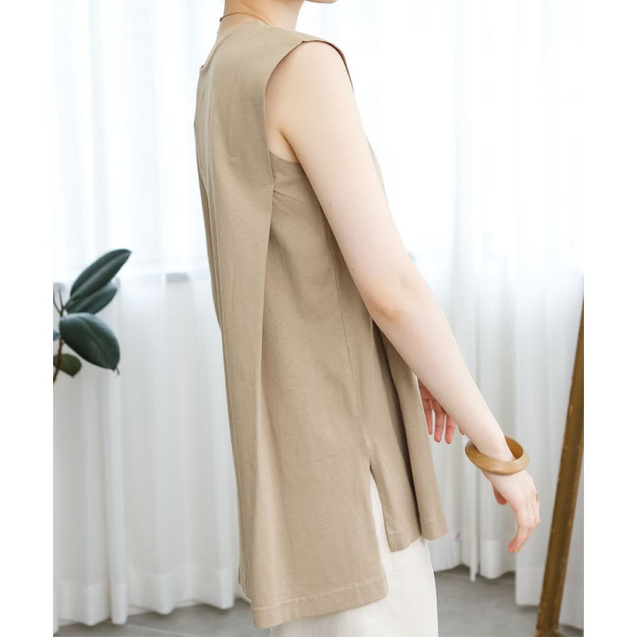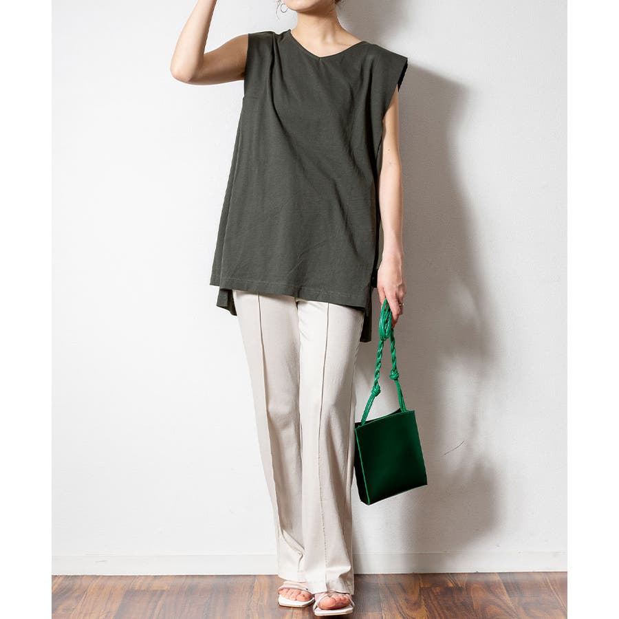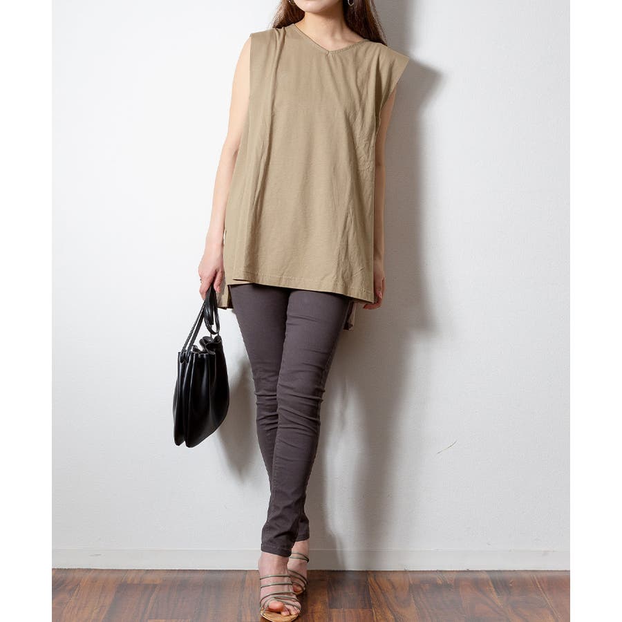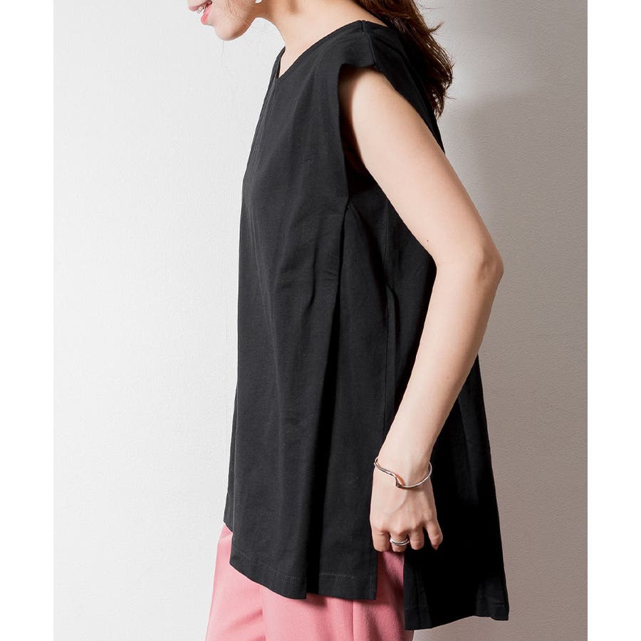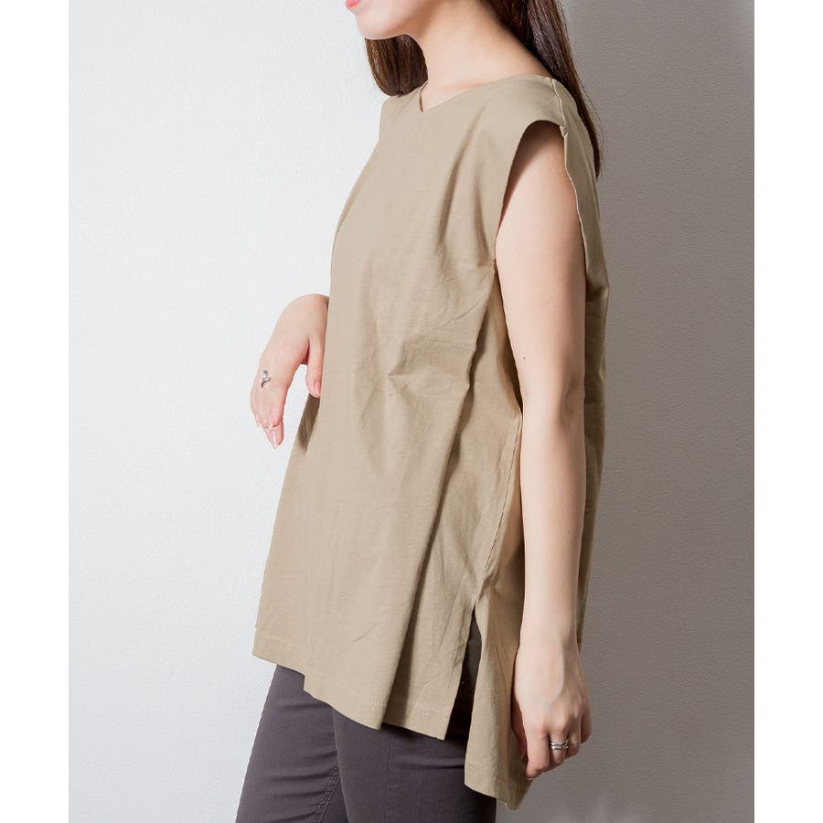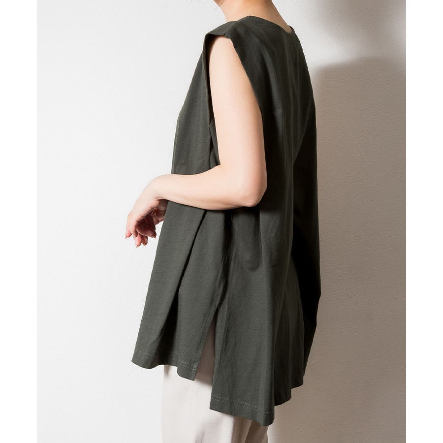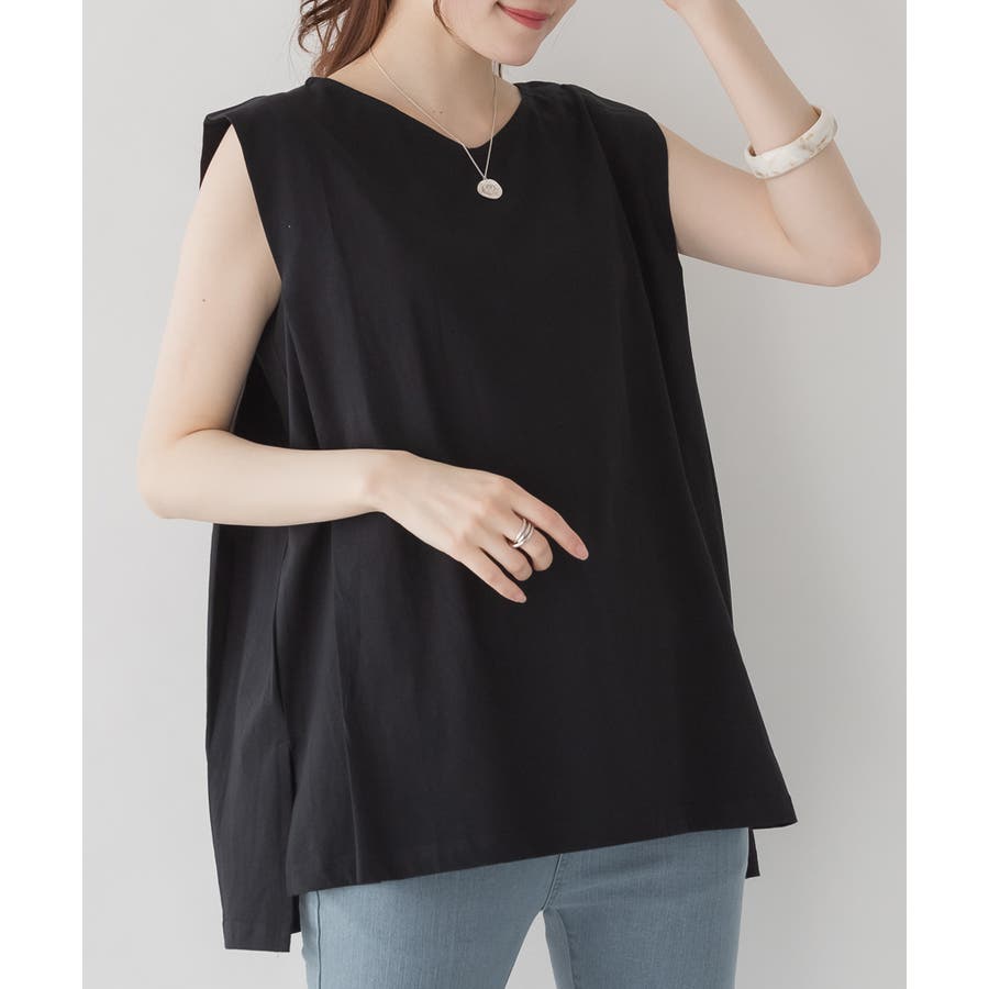 パワーショルダーなシルエットが旬な印象のノースリーブカットソー。