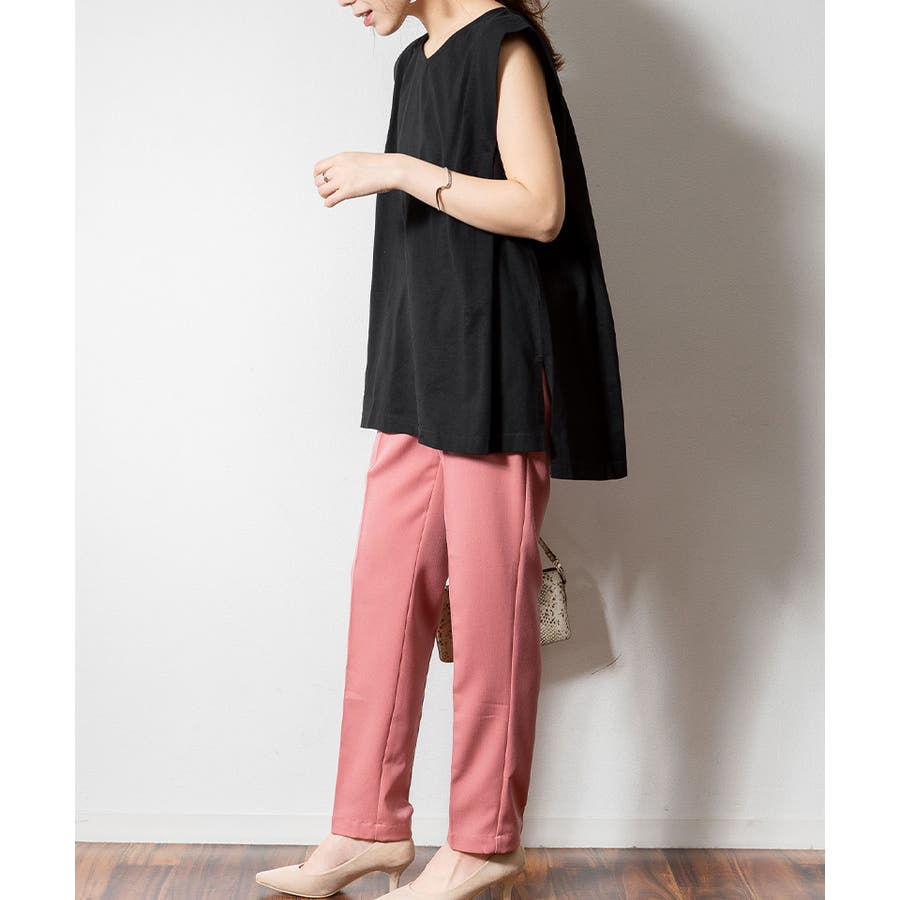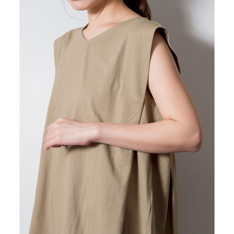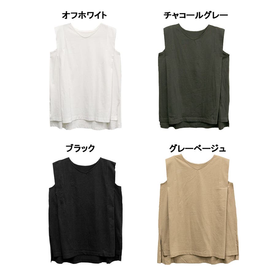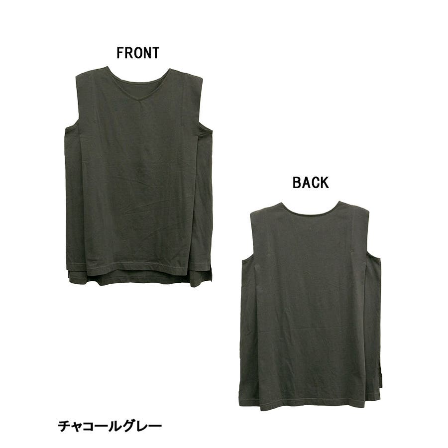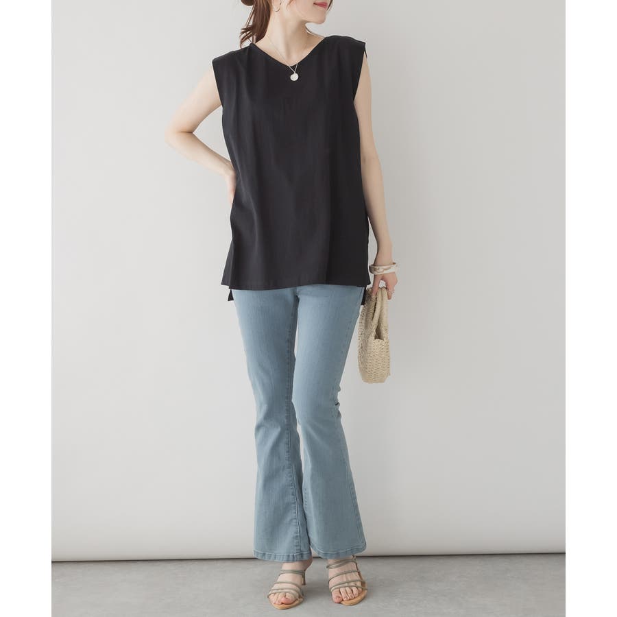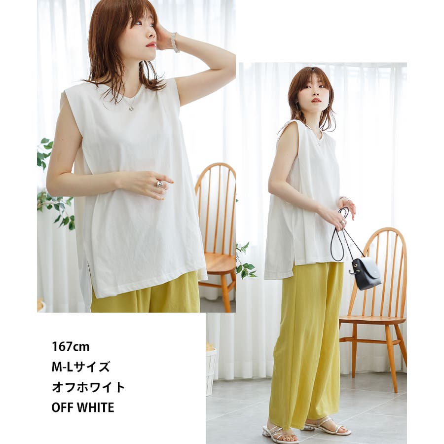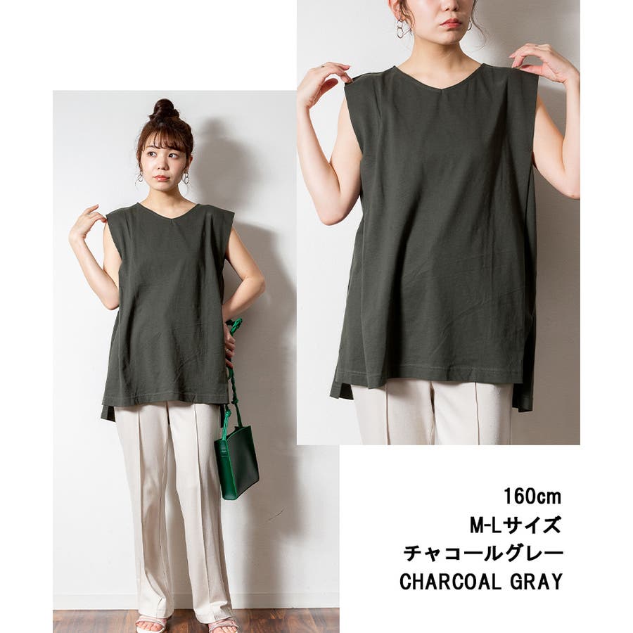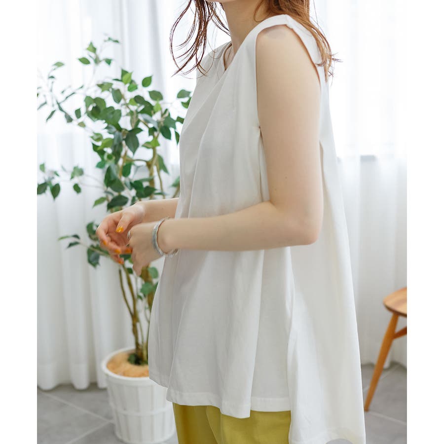パワーショルダーなシルエットが旬な印象のノースリーブカットソー。