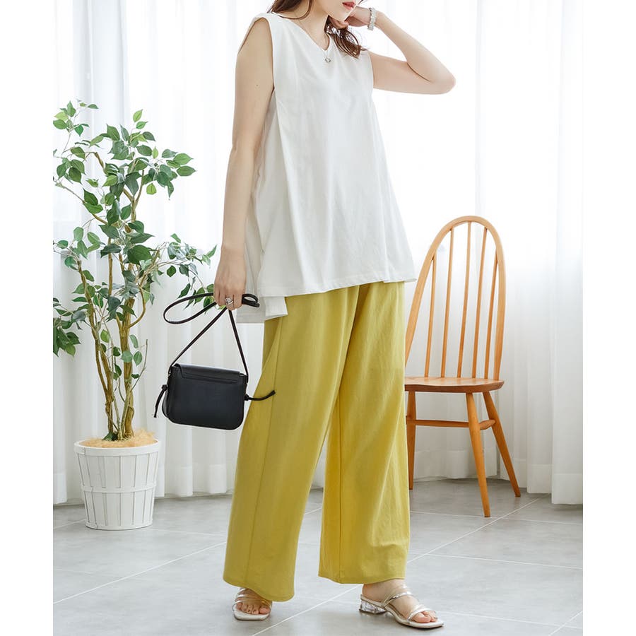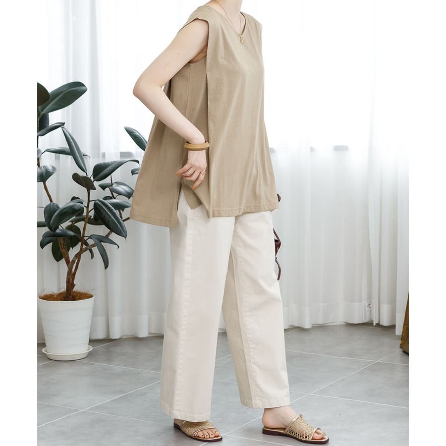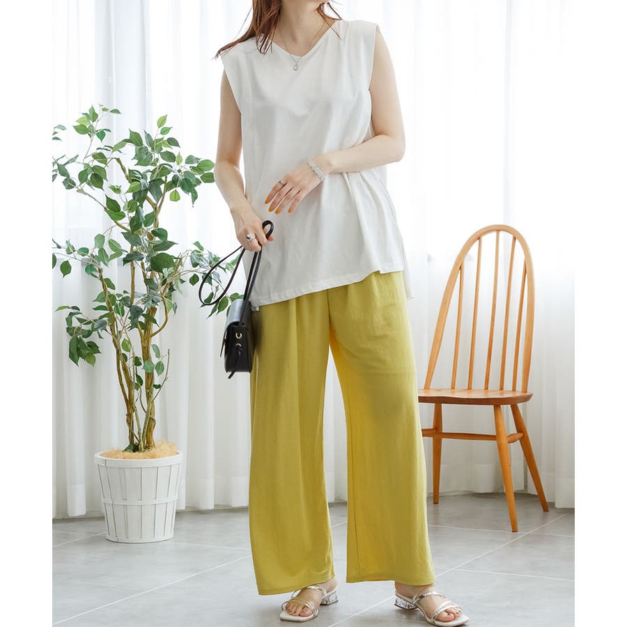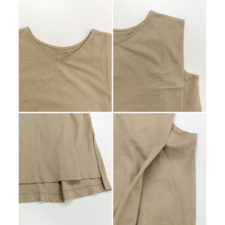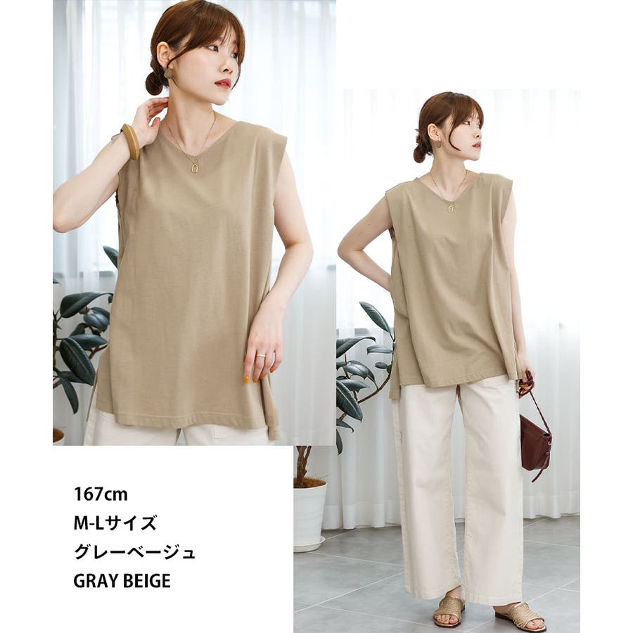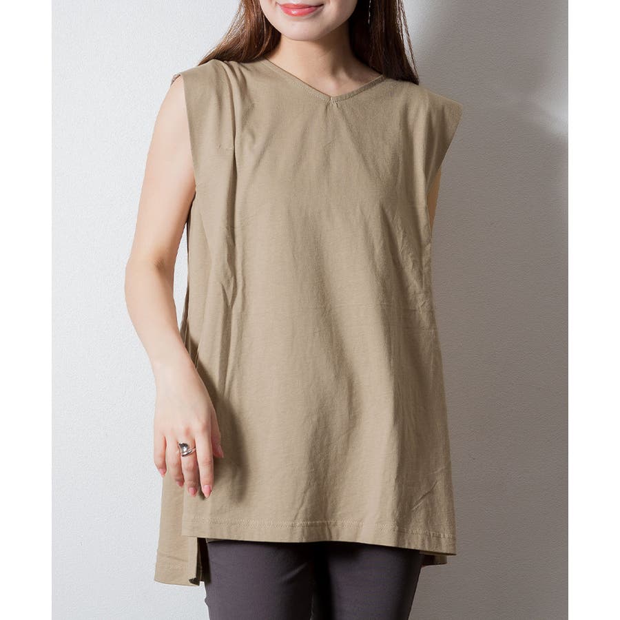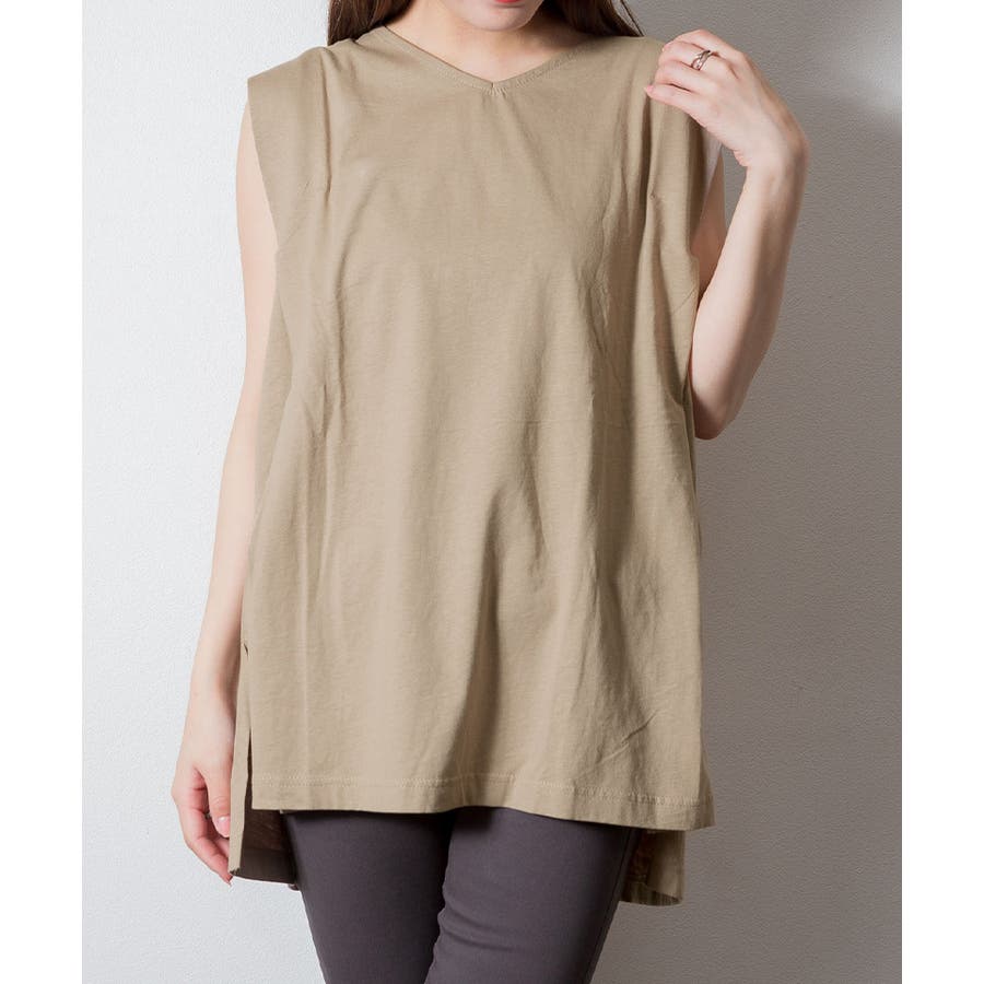 パワーショルダーなシルエットが旬な印象のノースリーブカットソー。