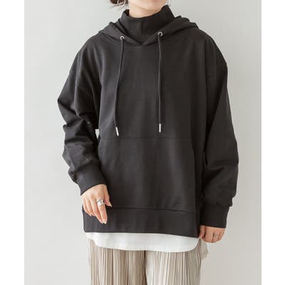 ハイネックリブ裏毛パーカー 大きいサイズ レディース