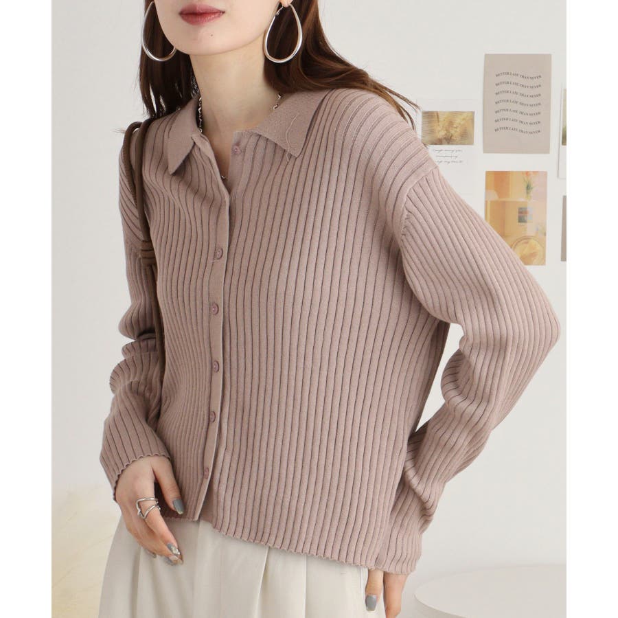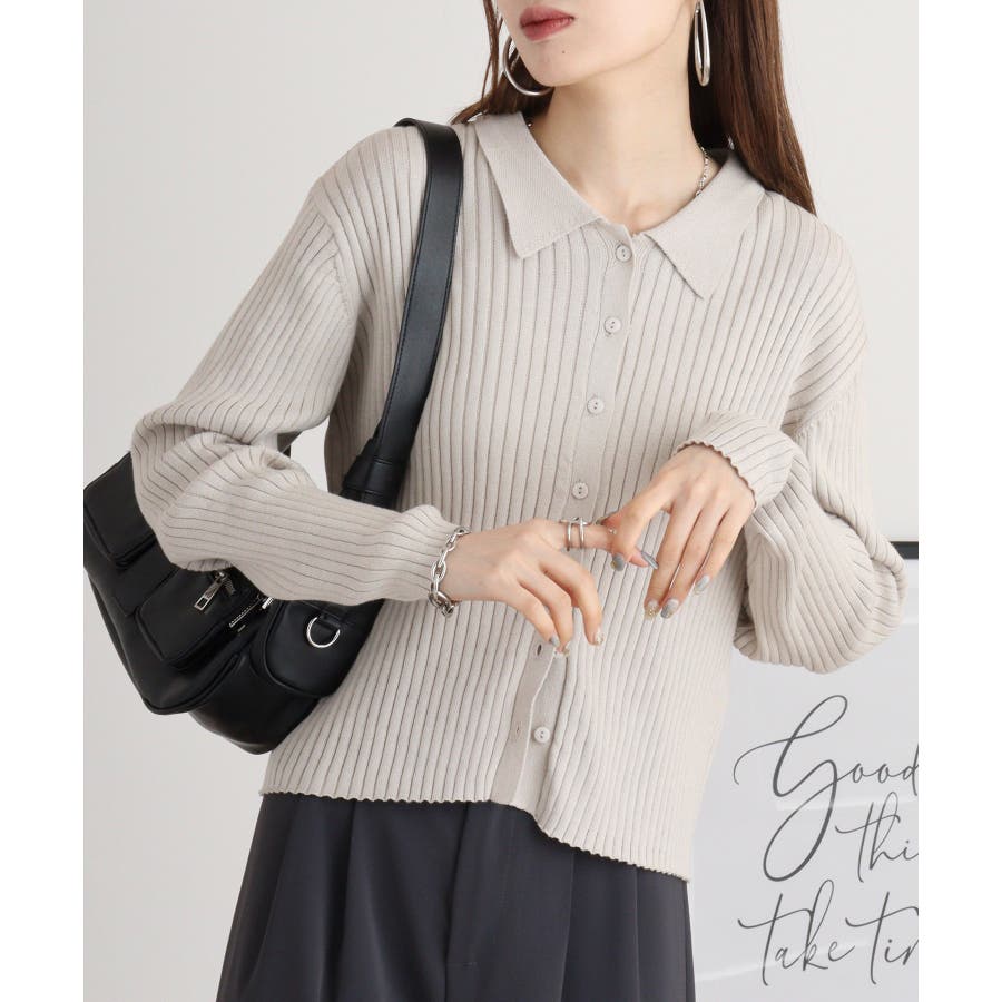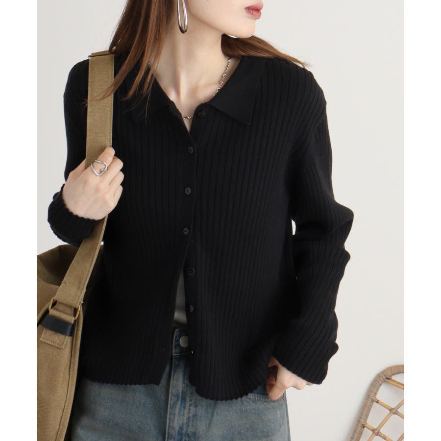 【M-L・LL-3L・4L-5L】リブポロニットカーディガン 冬 レディース