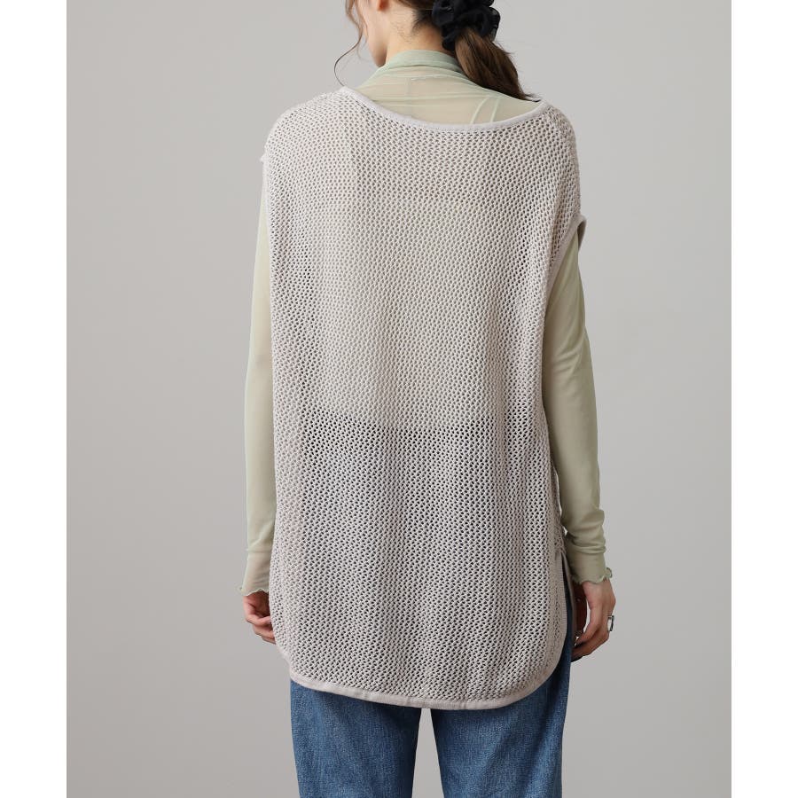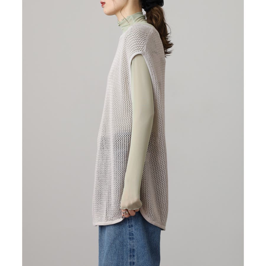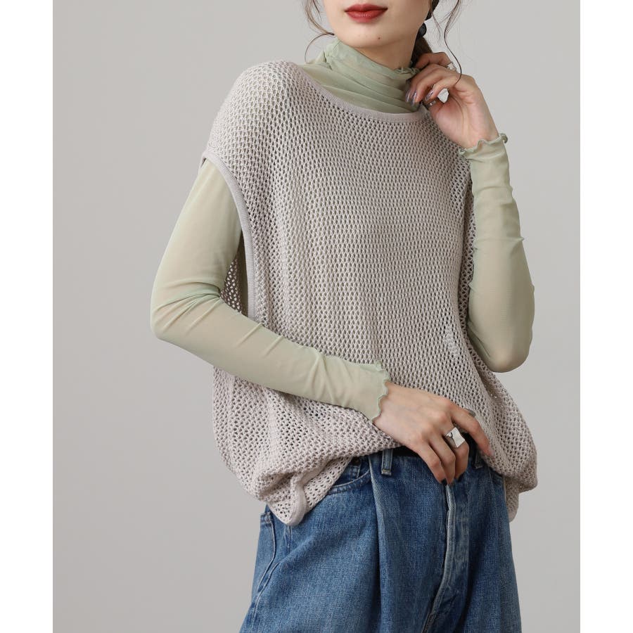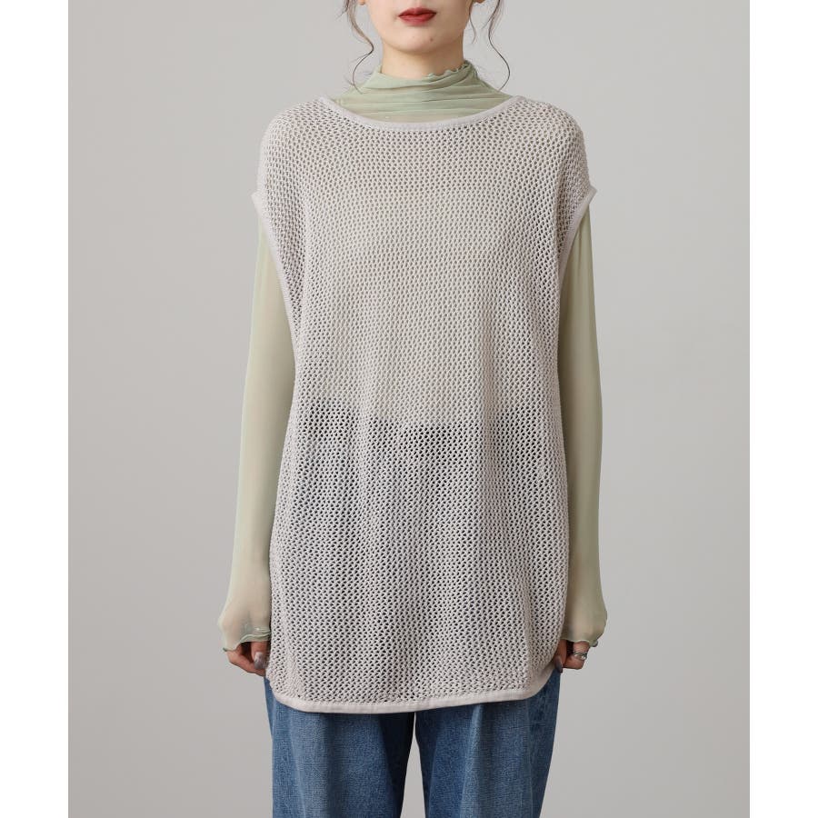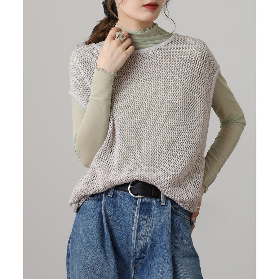 透け感のあるメッシュ編みがシーズンムードを高めるノースリーブニット。