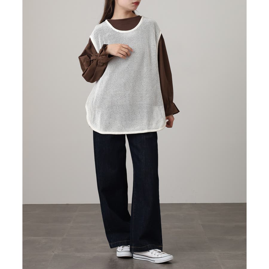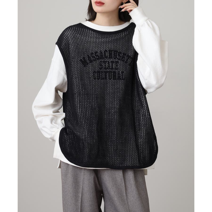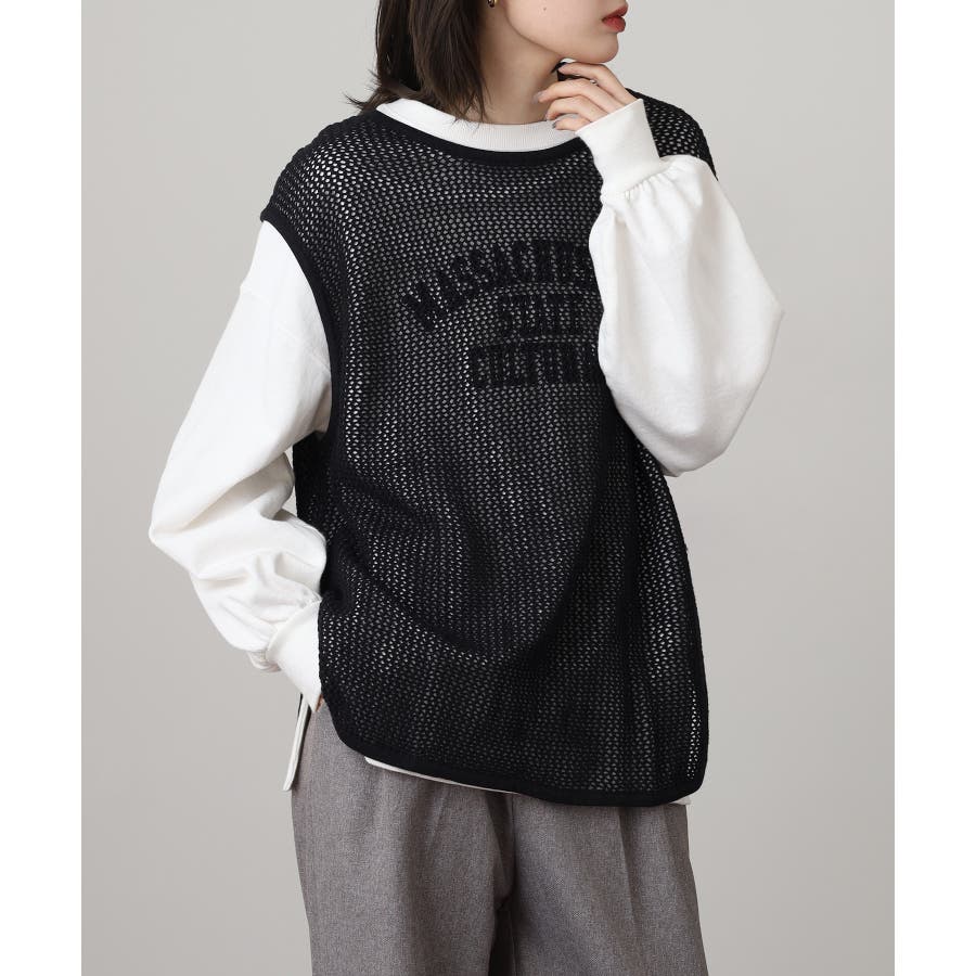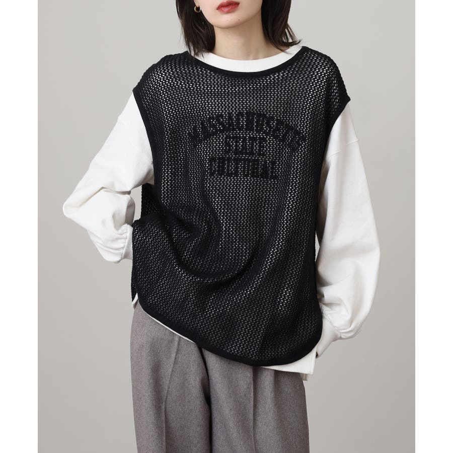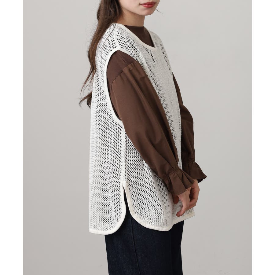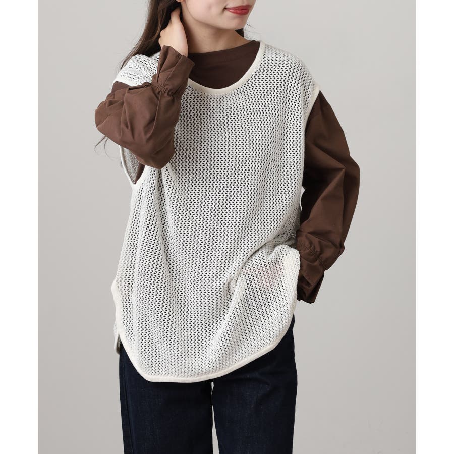 透け感のあるメッシュ編みがシーズンムードを高めるノースリーブニット。