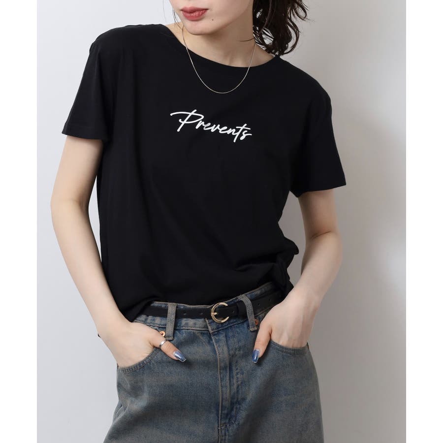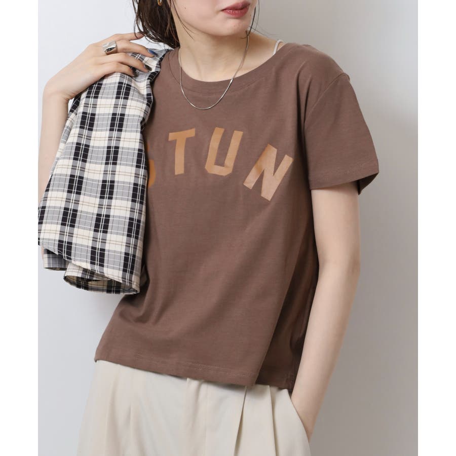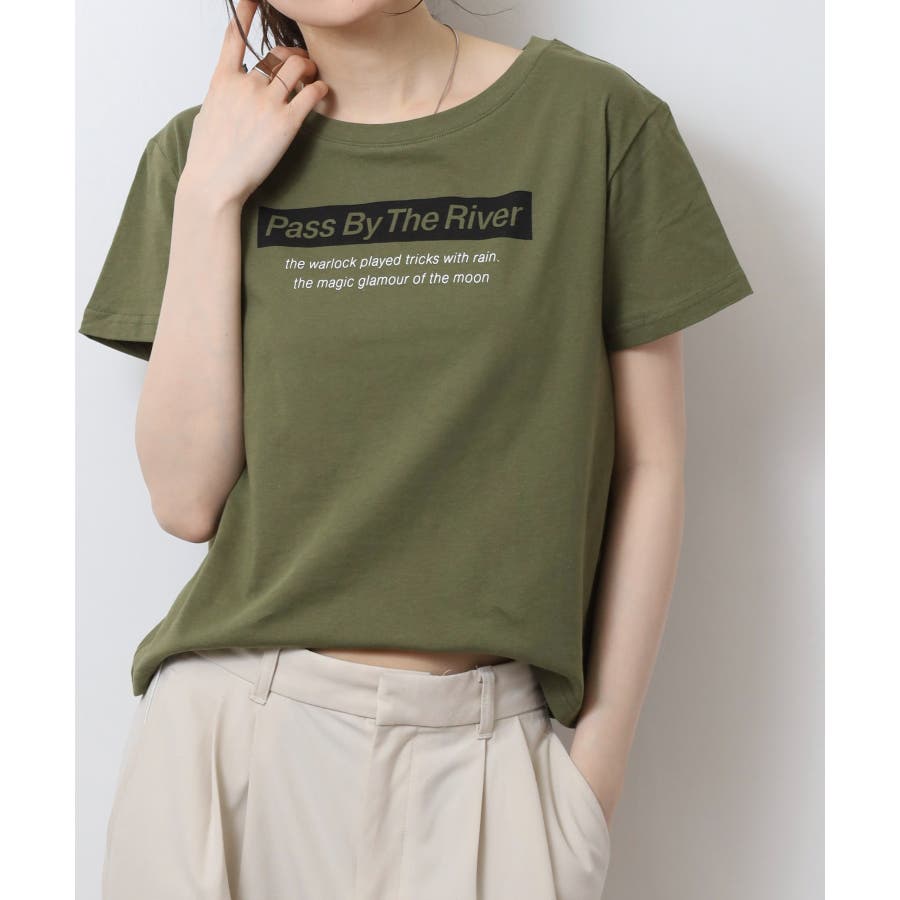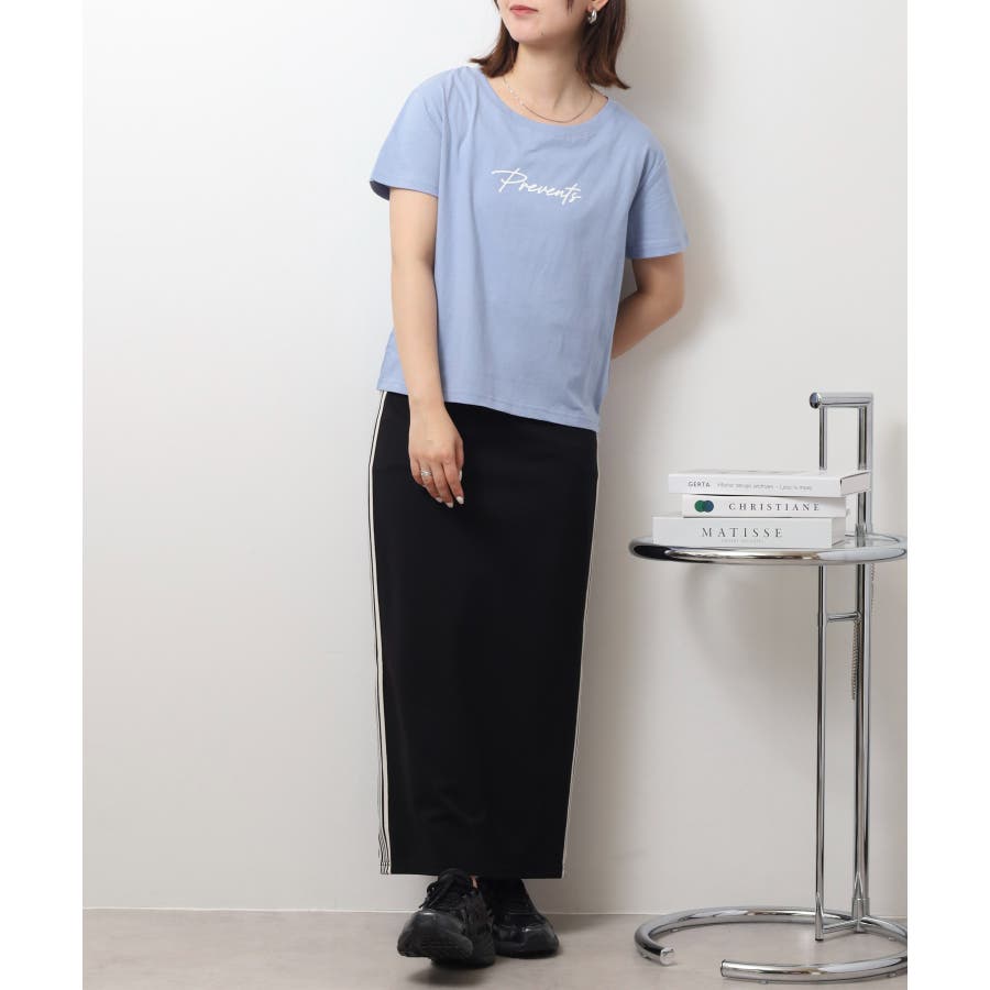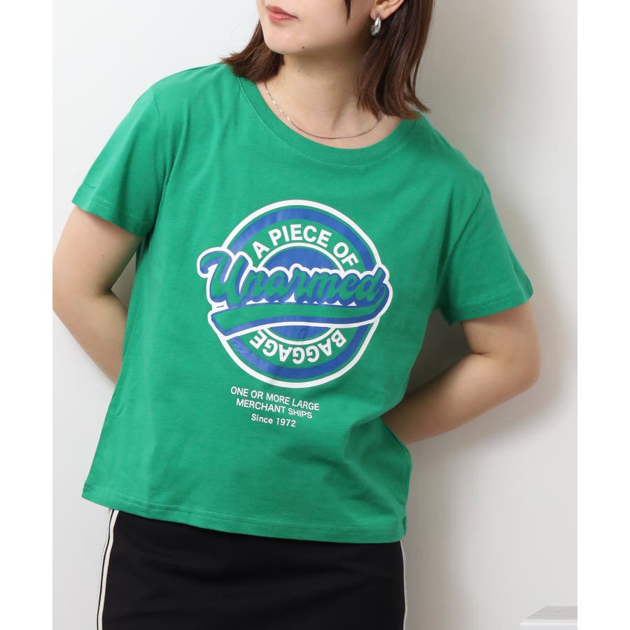 オーバーサイズシルエットショート丈ロゴプリントTシャツ レディース