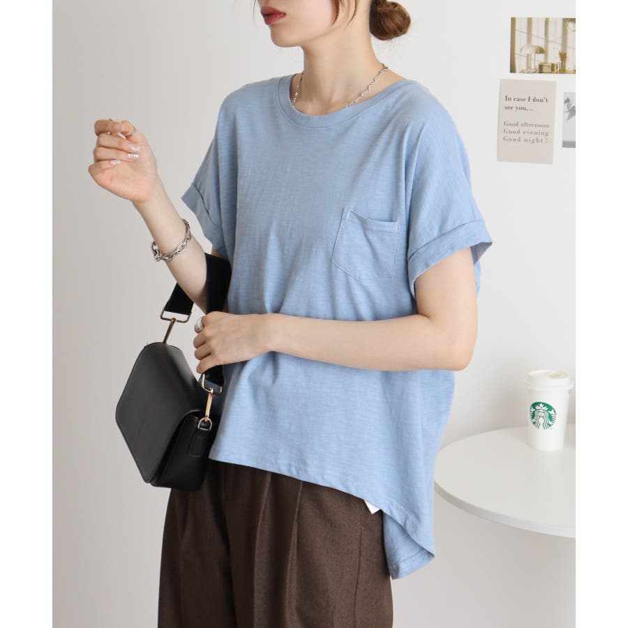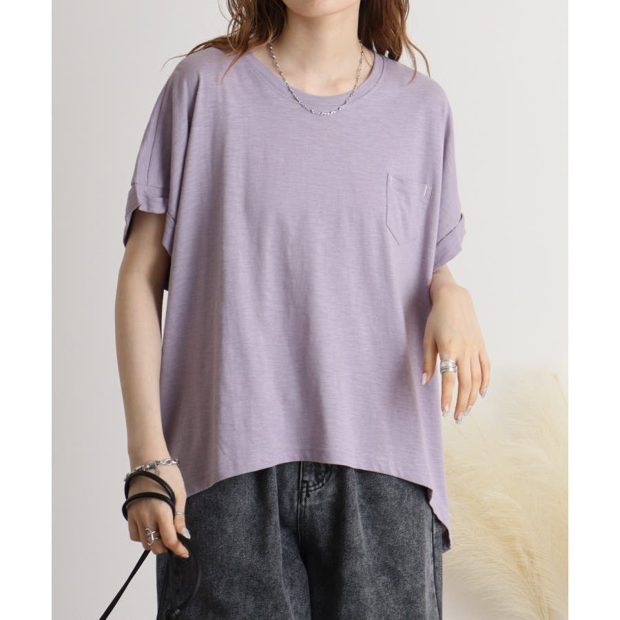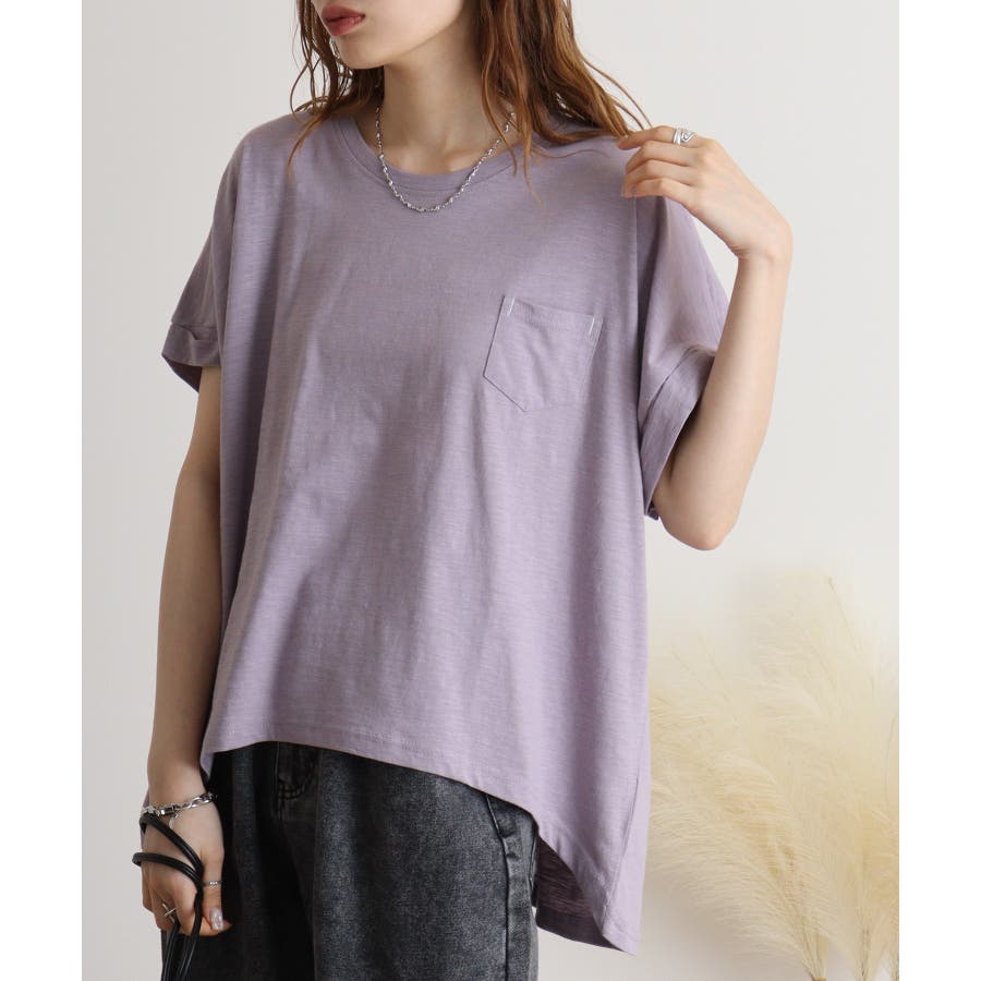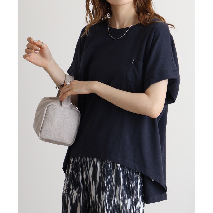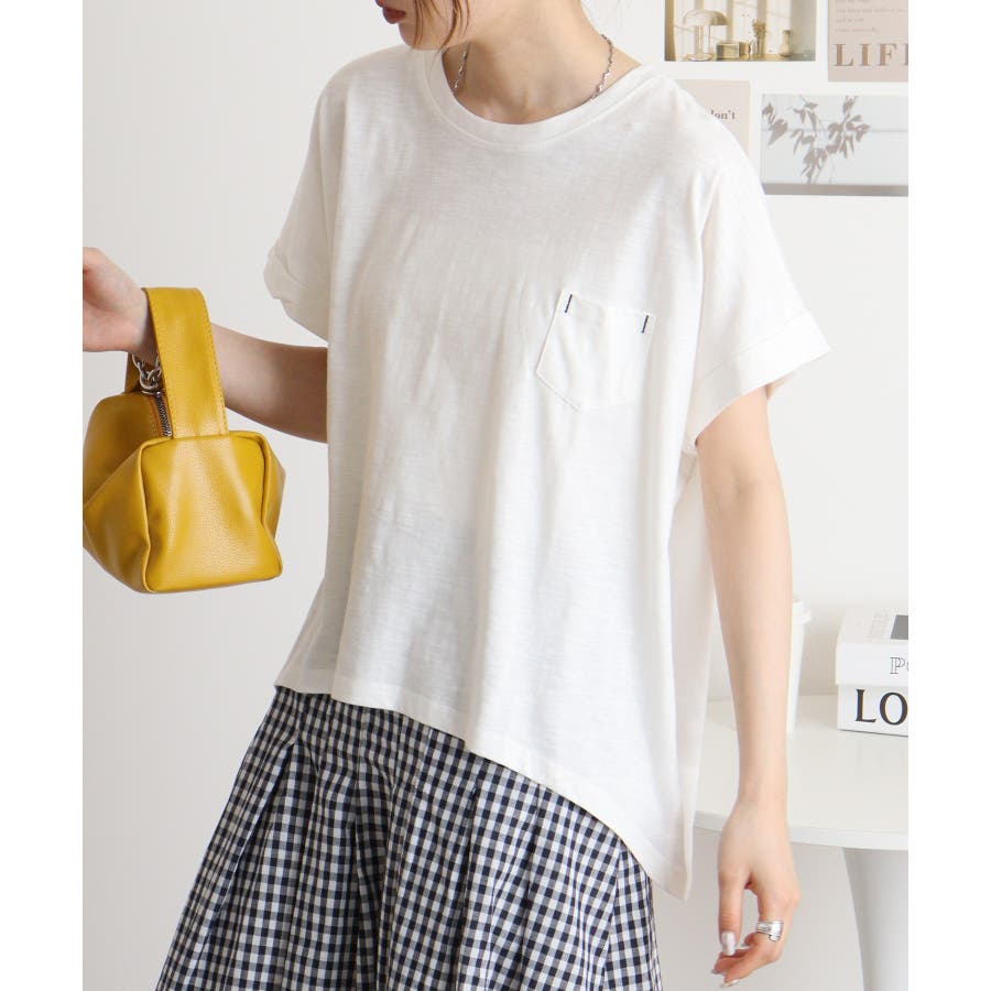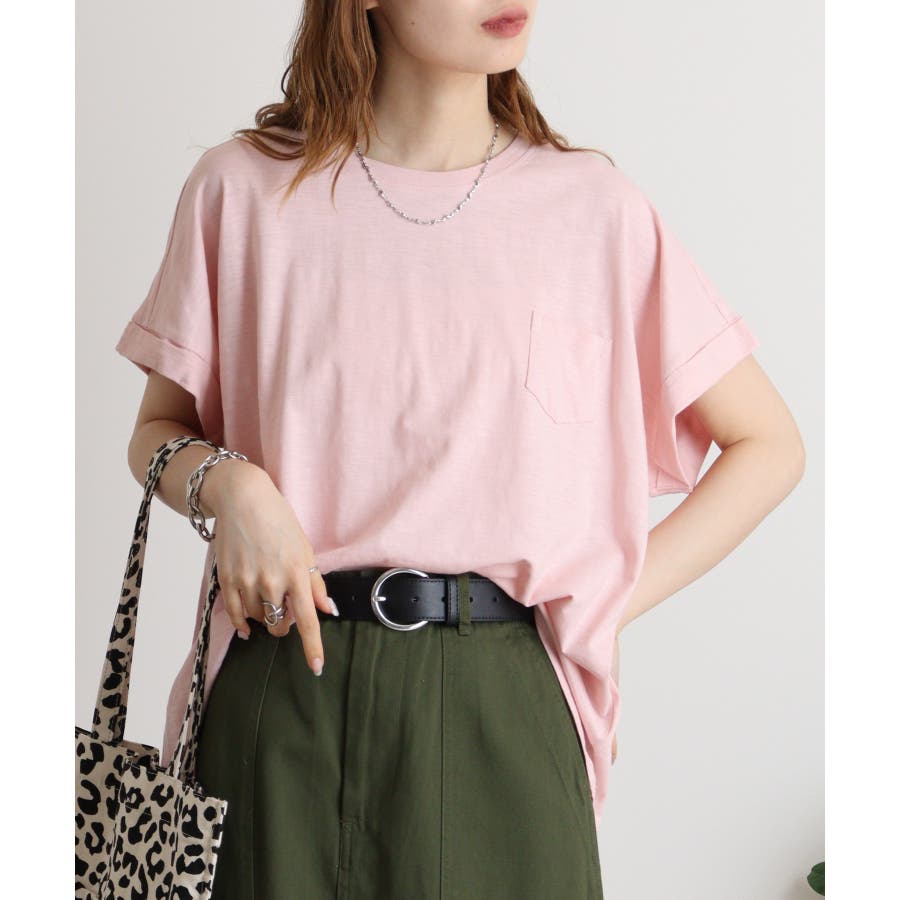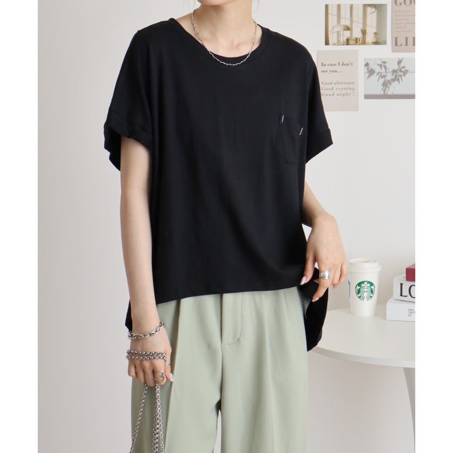 【M L】オーバーサイズポケット付きUネックTee Tシャツ