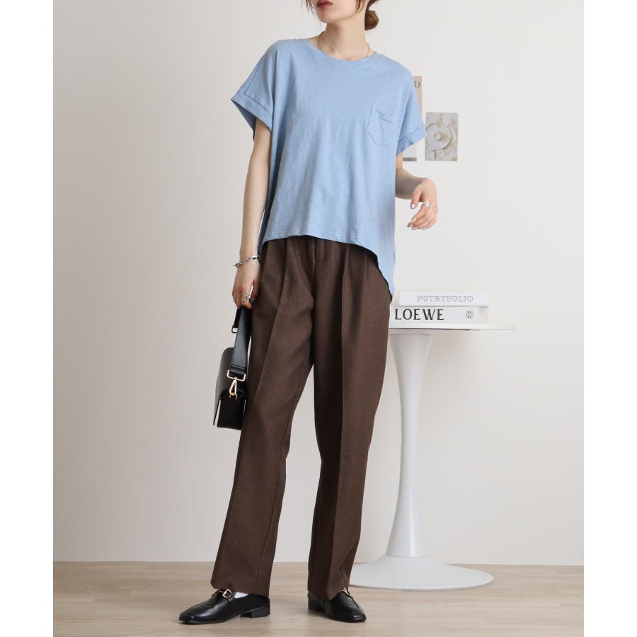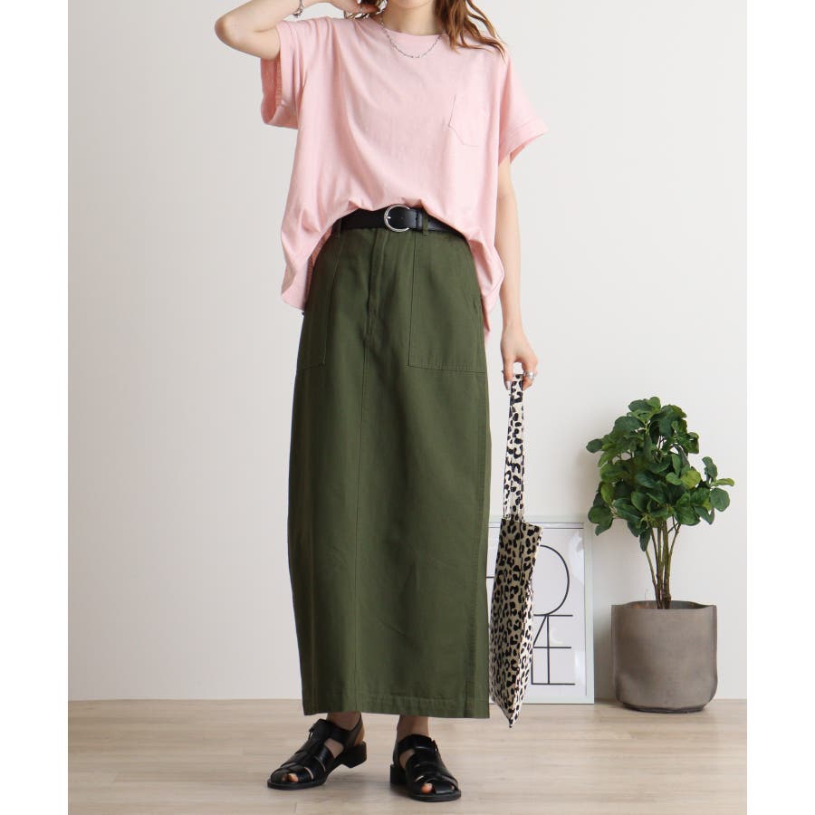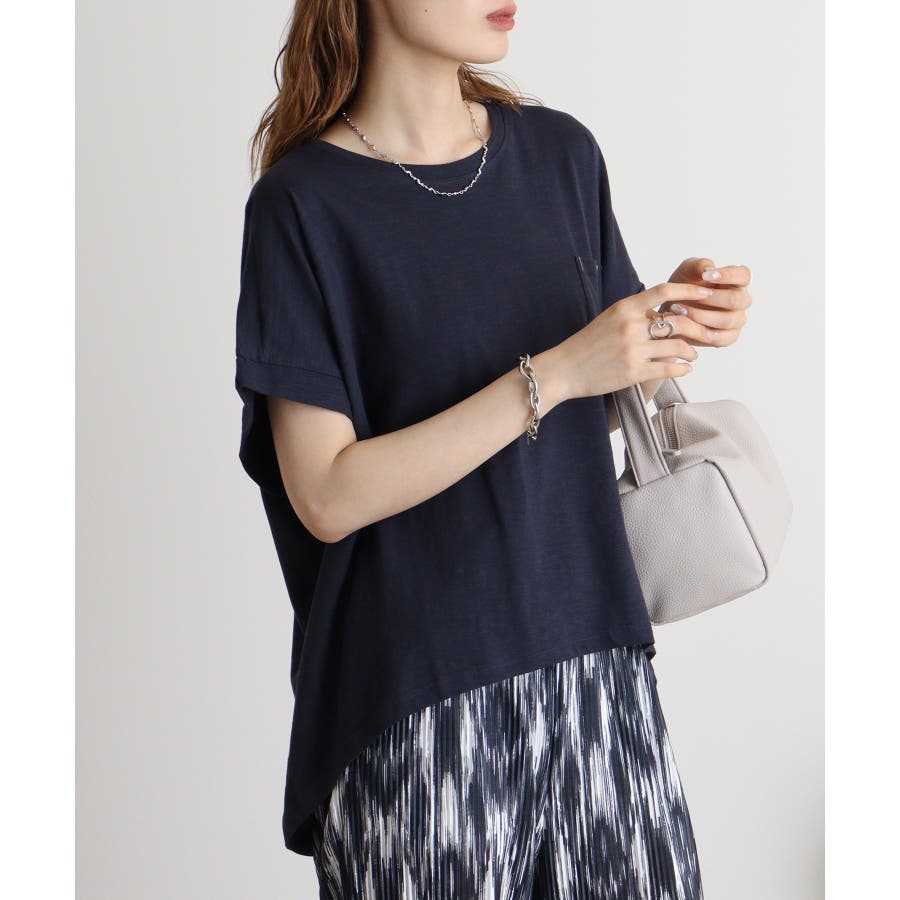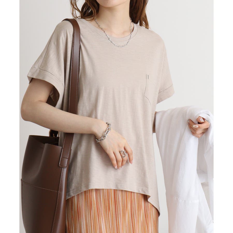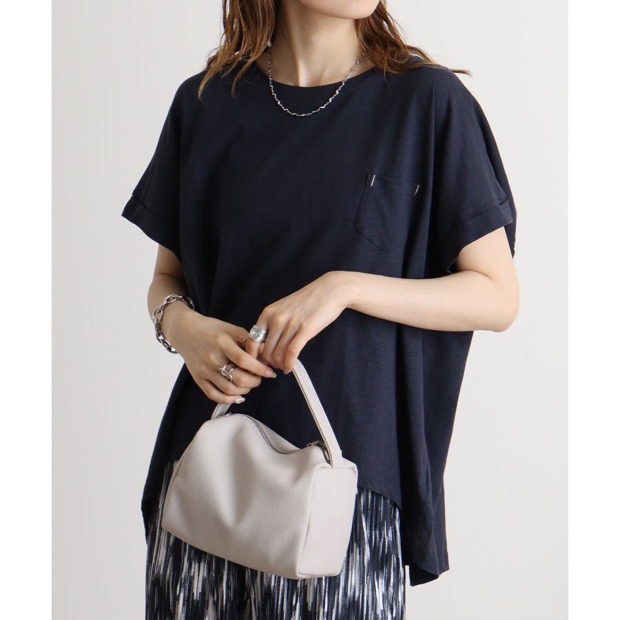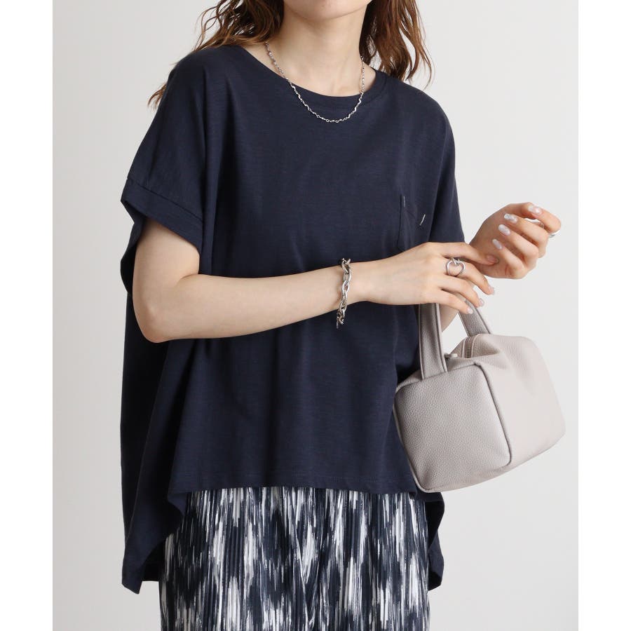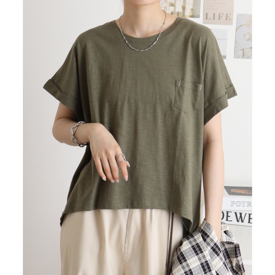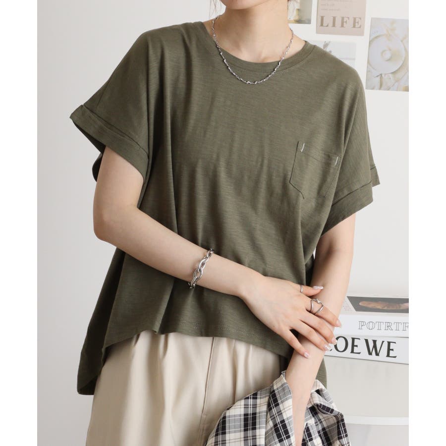 【M L】オーバーサイズポケット付きUネックTee Tシャツ