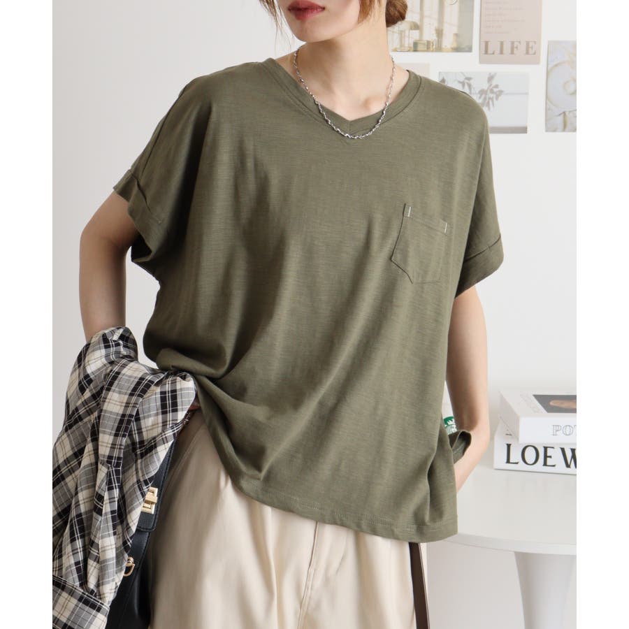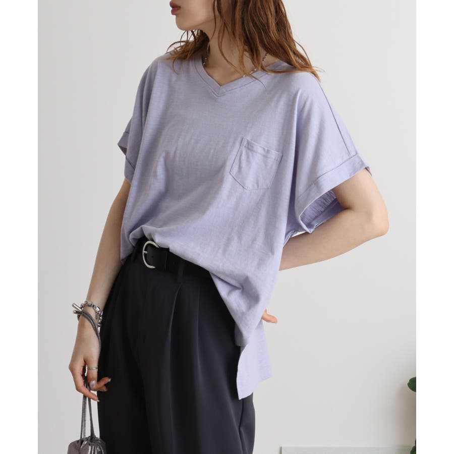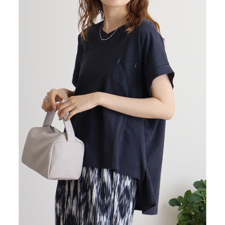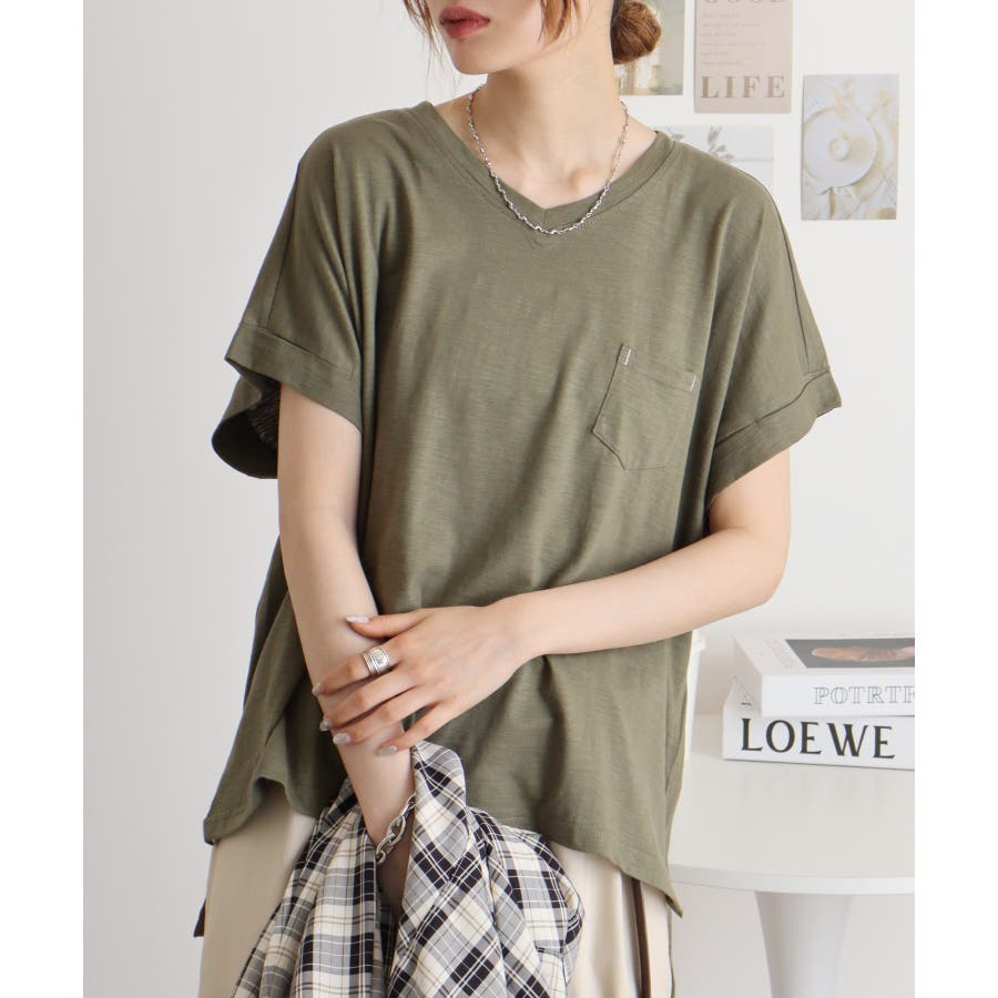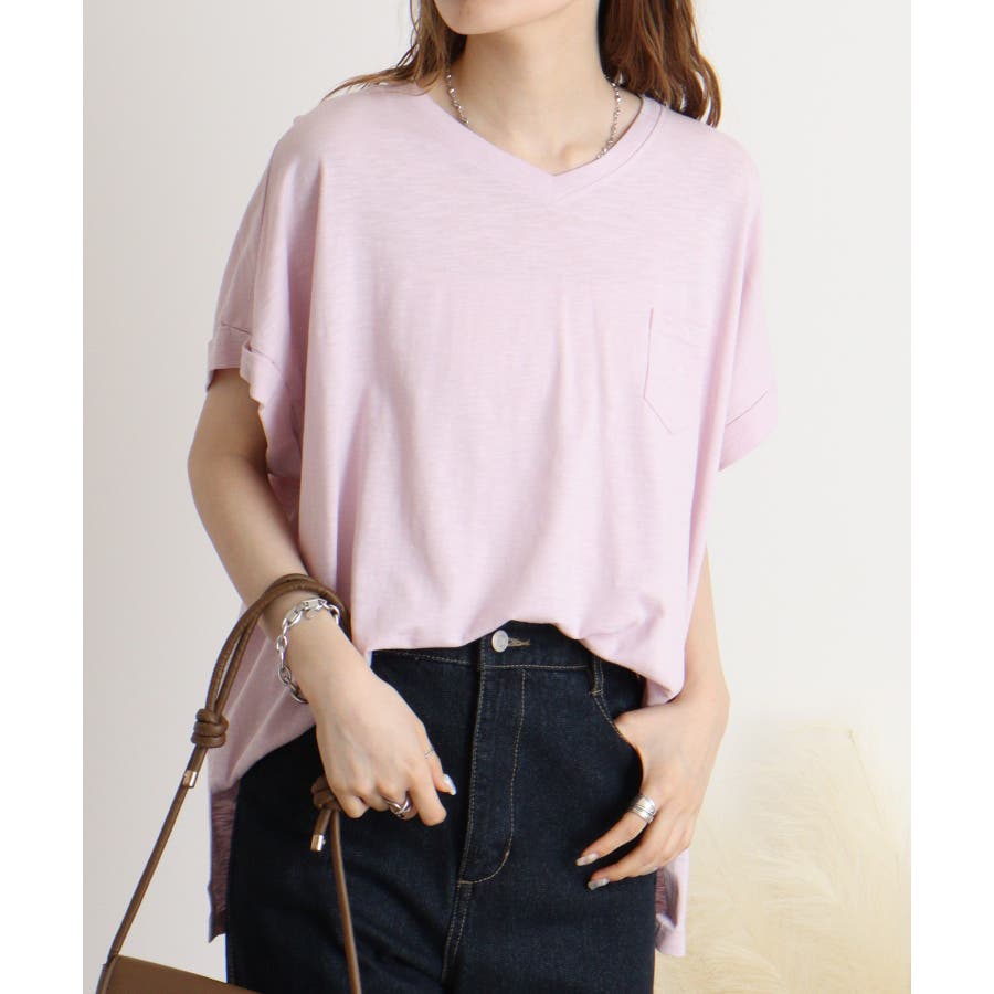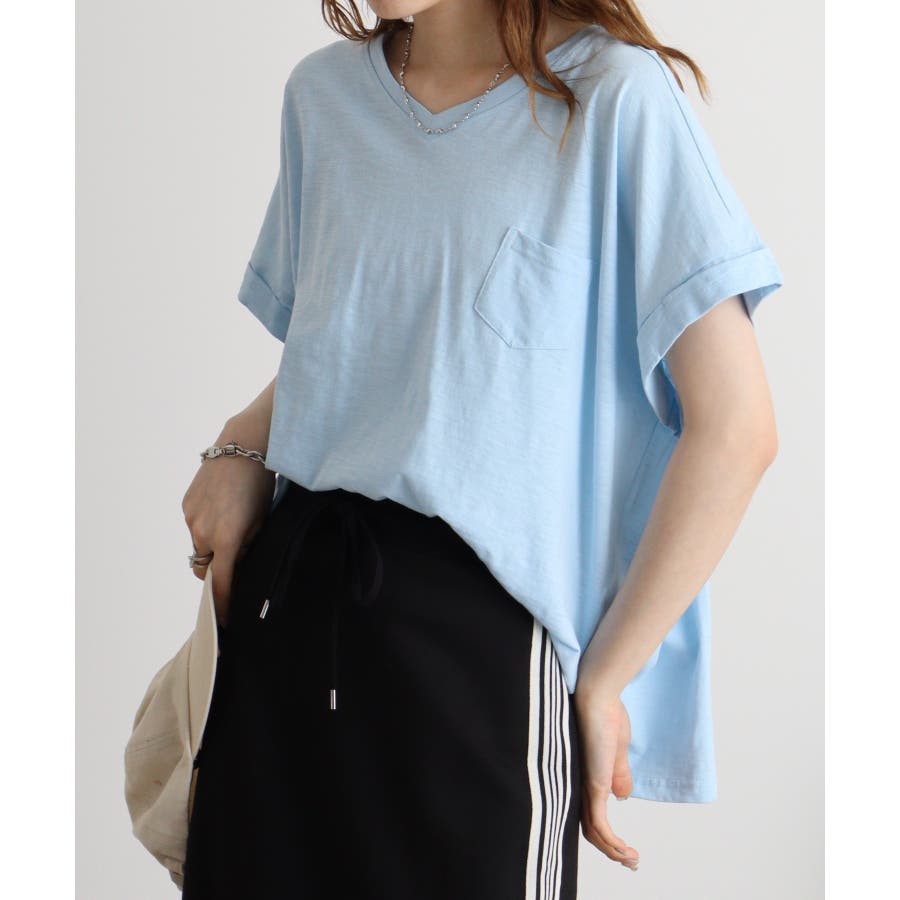 【M L】オーバーサイズポケット付きVネックTee Tシャツ
