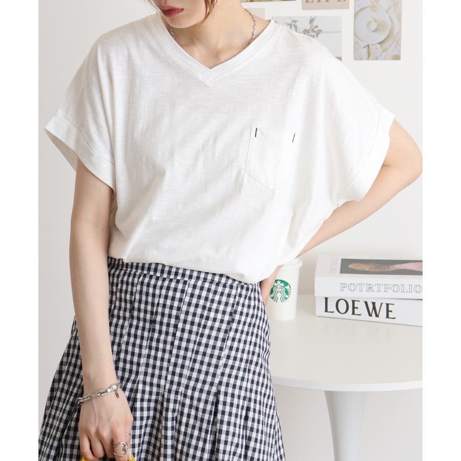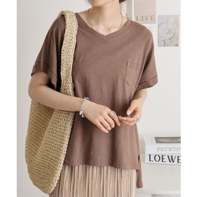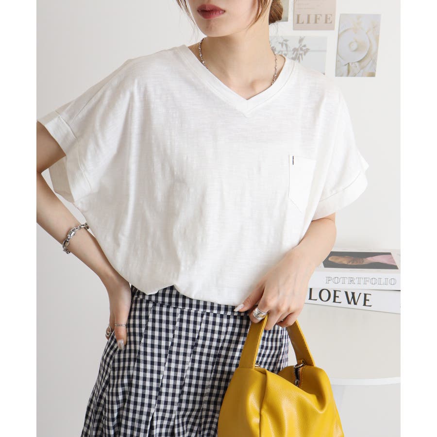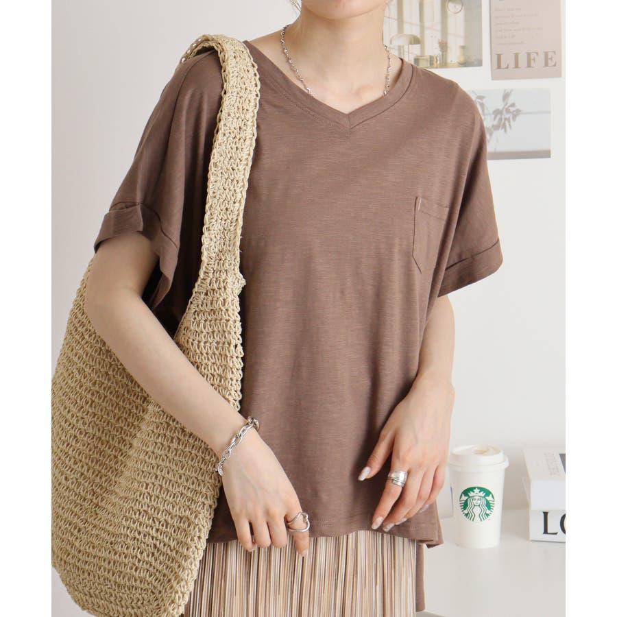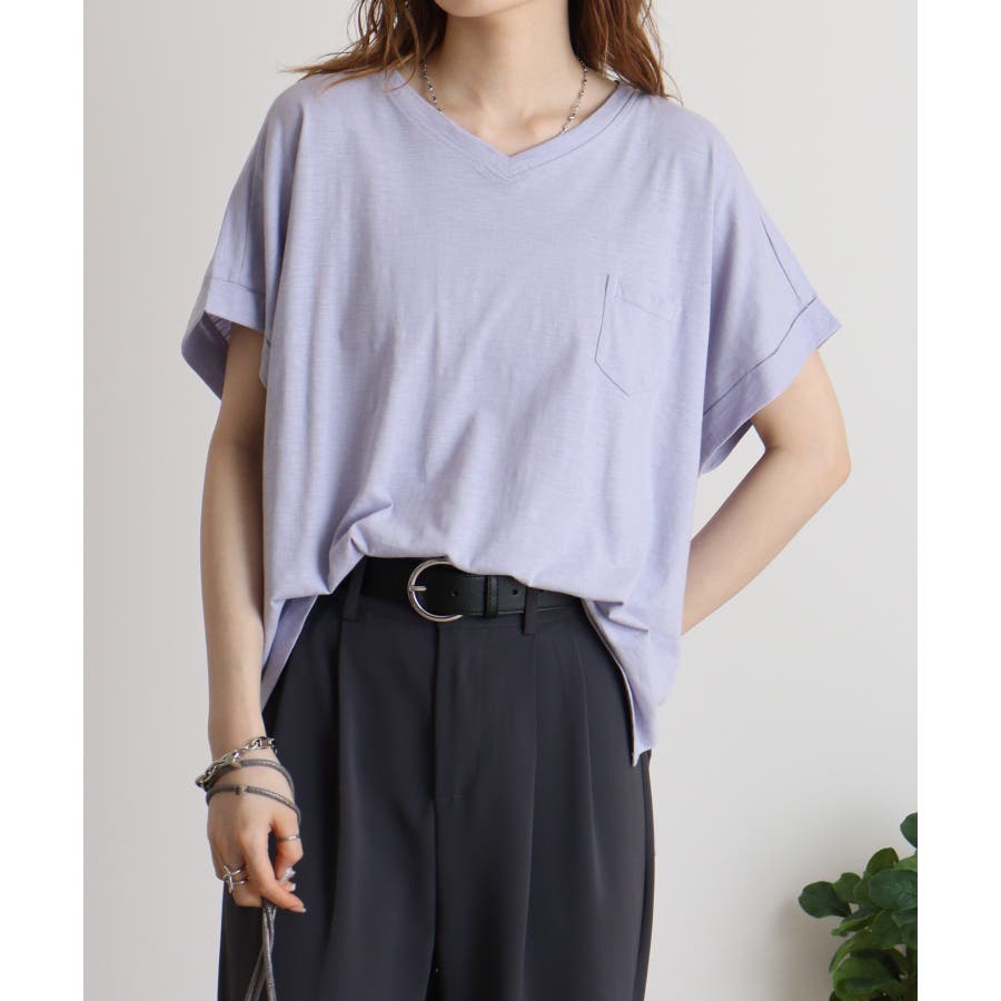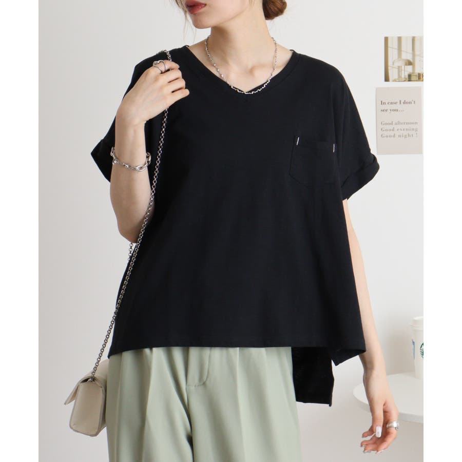 【M L】オーバーサイズポケット付きVネックTee Tシャツ