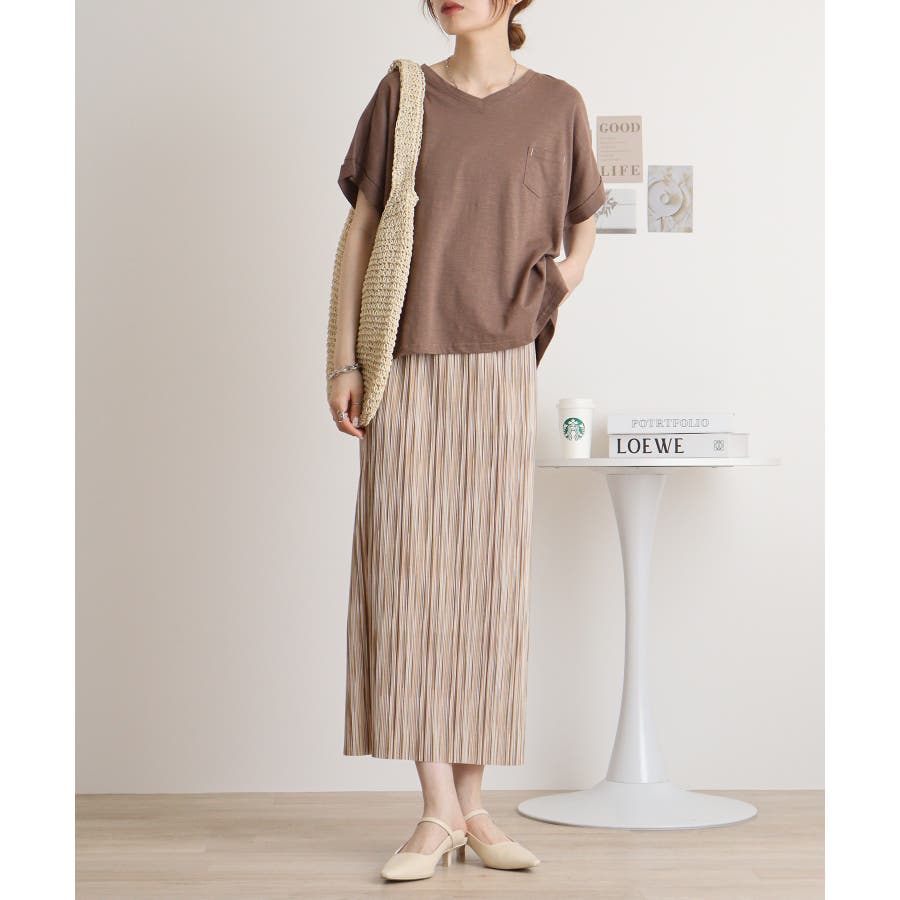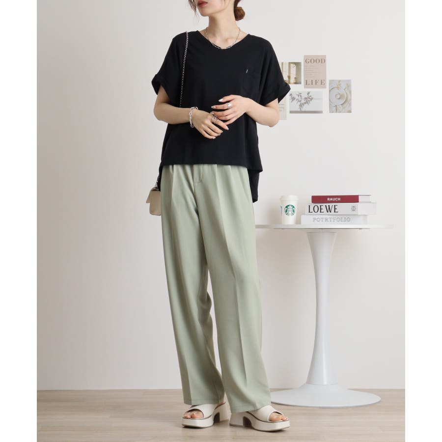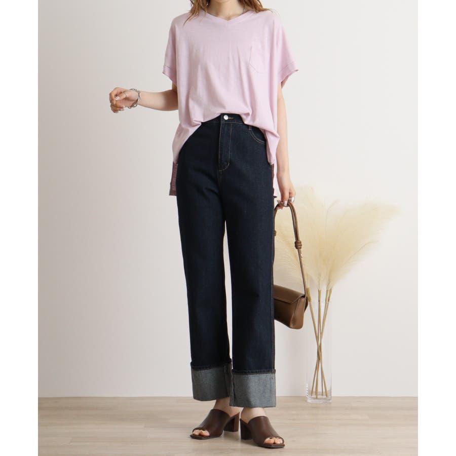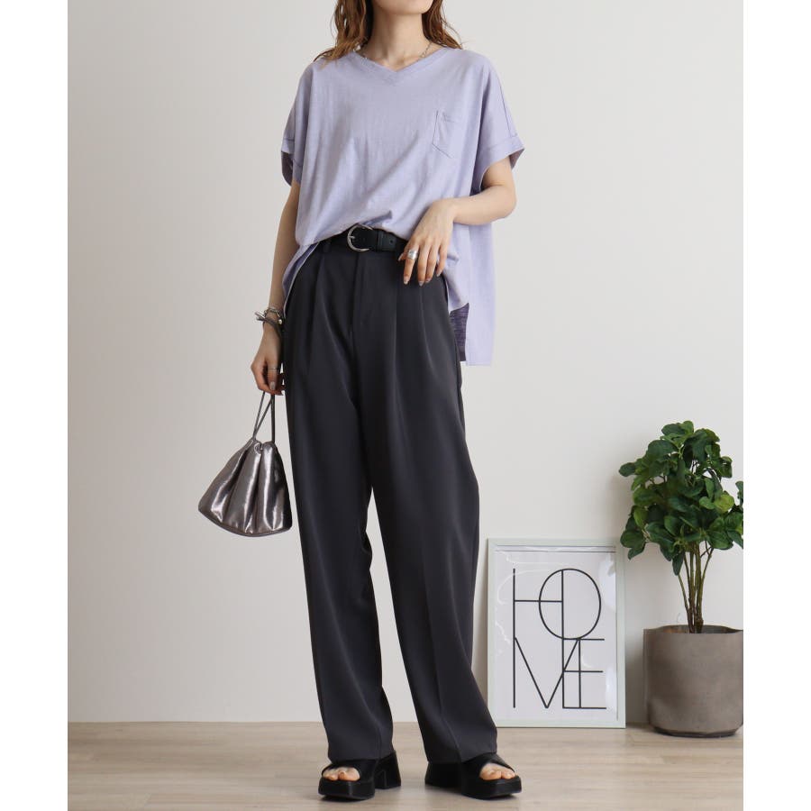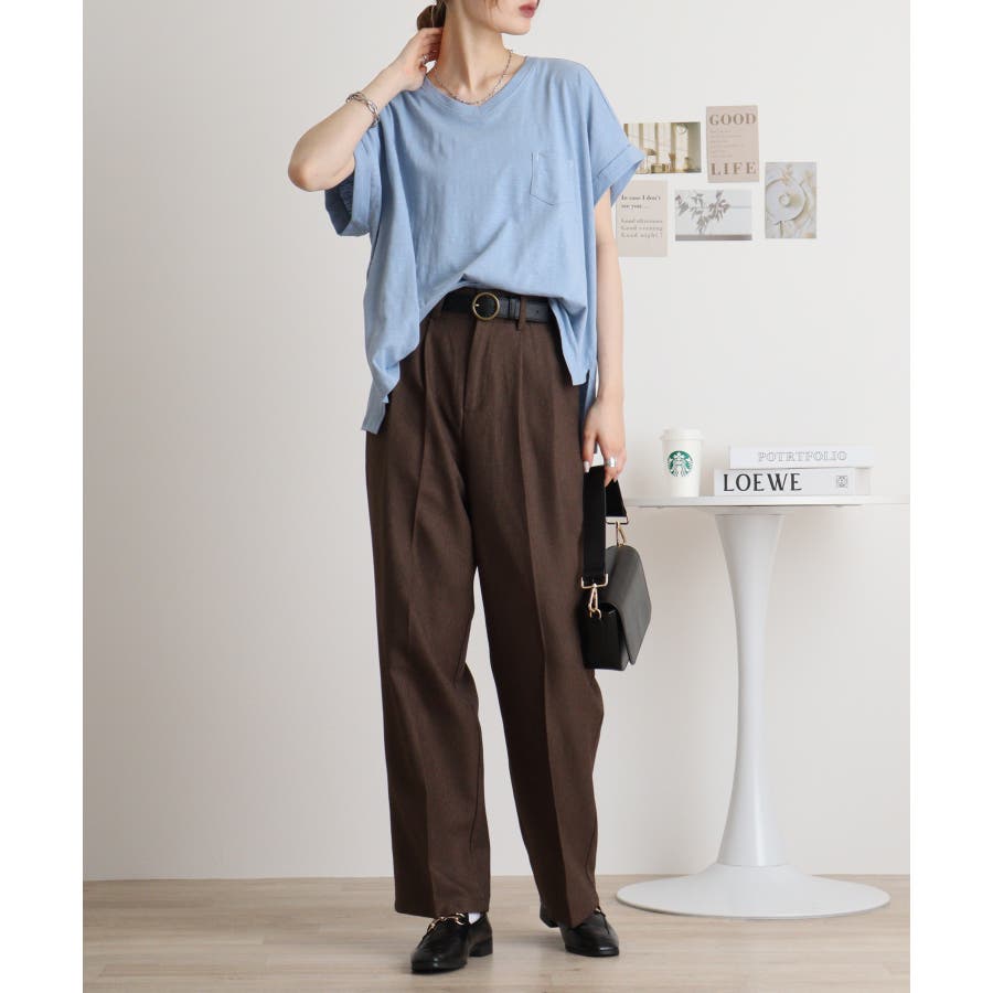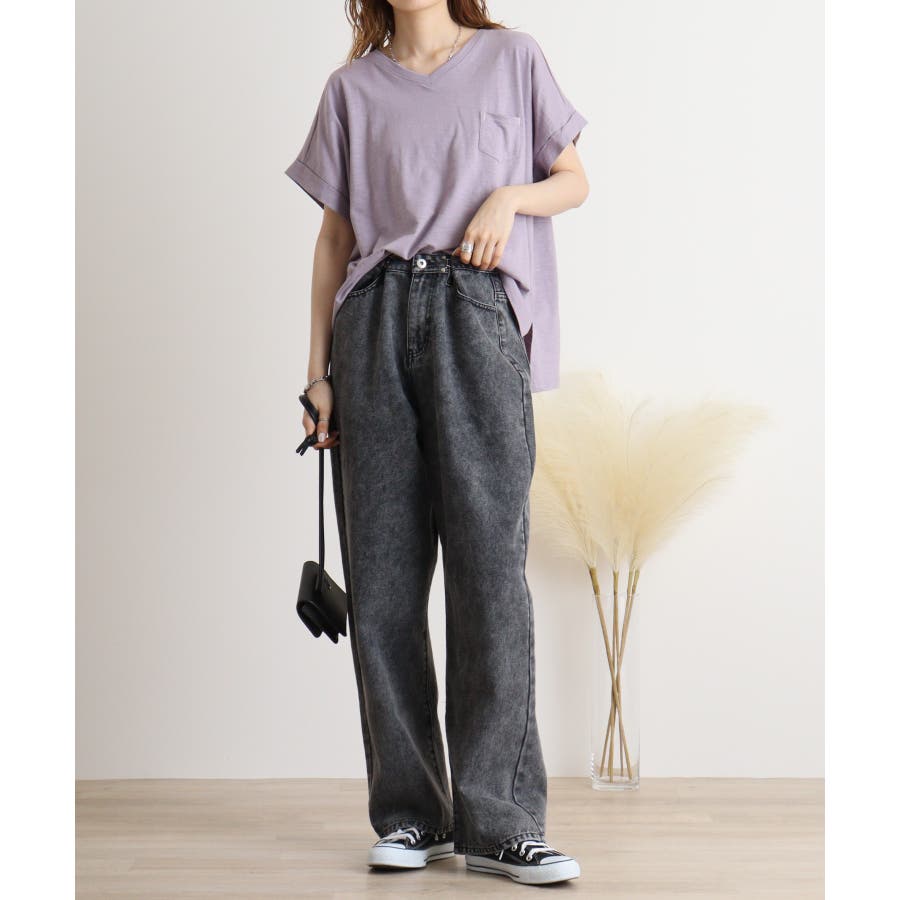 【M L】オーバーサイズポケット付きVネックTee Tシャツ