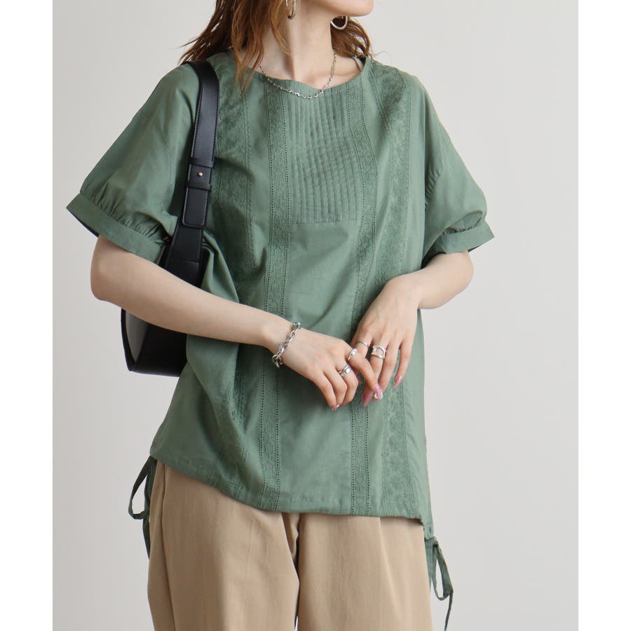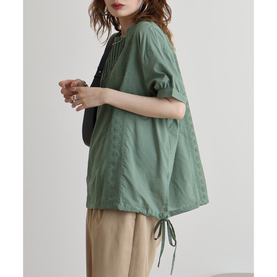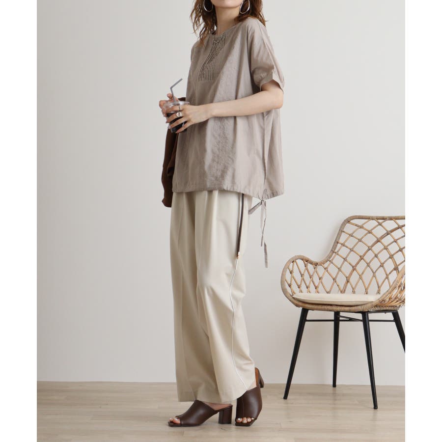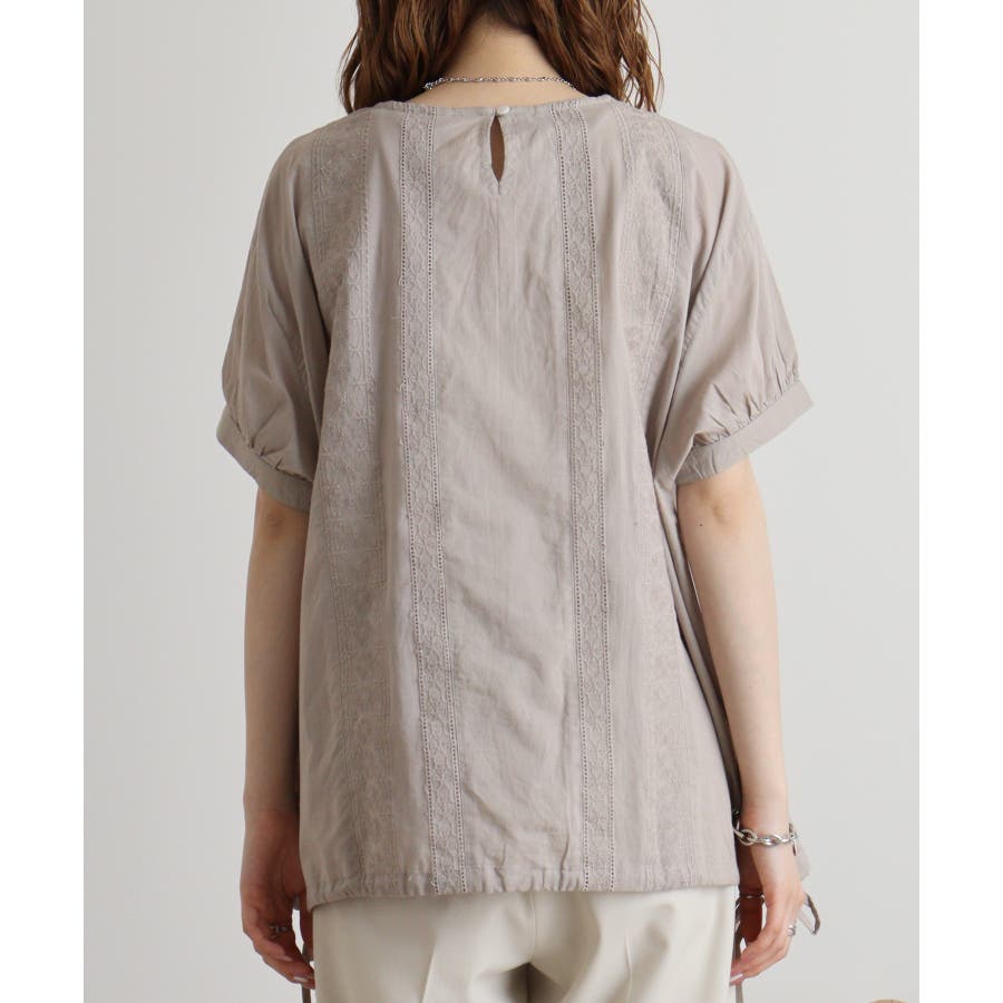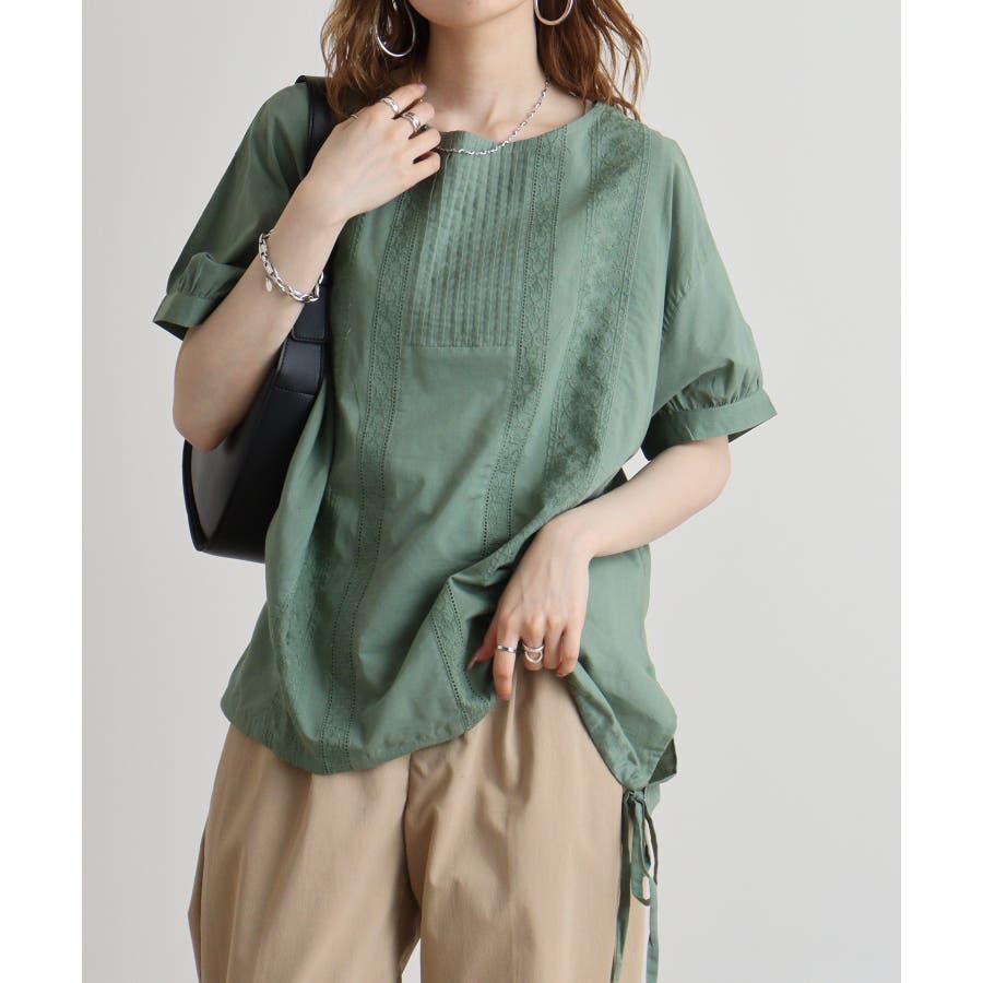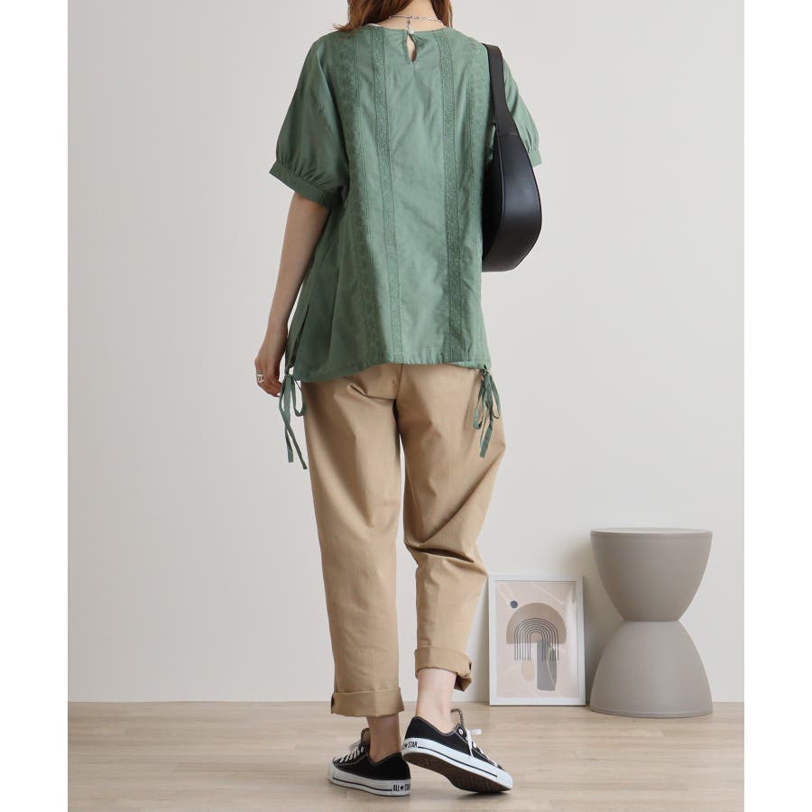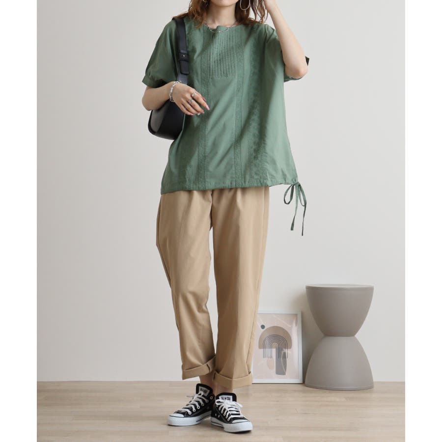 【LIGHT KHAKI】【M】裾しぼりレース切替プルオーバー
