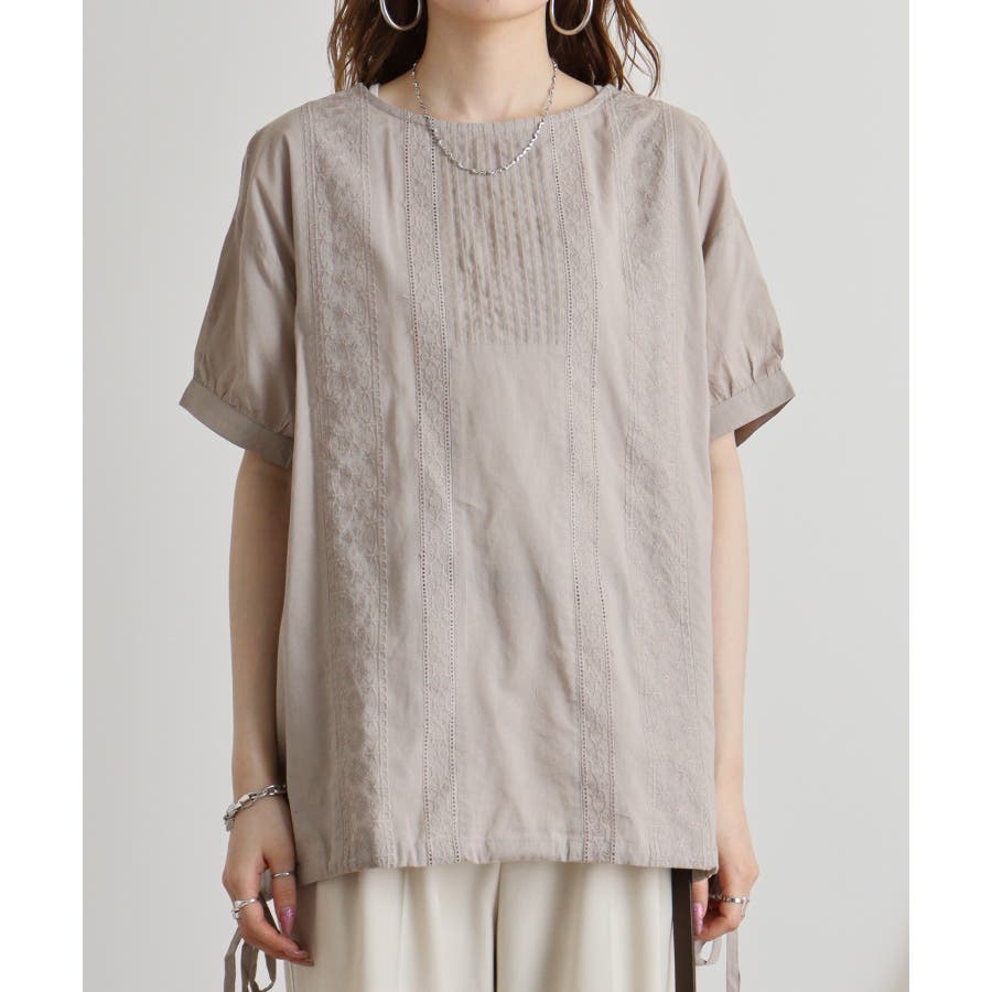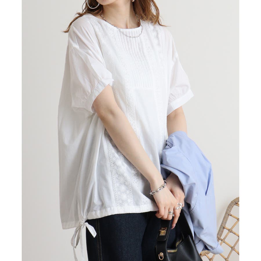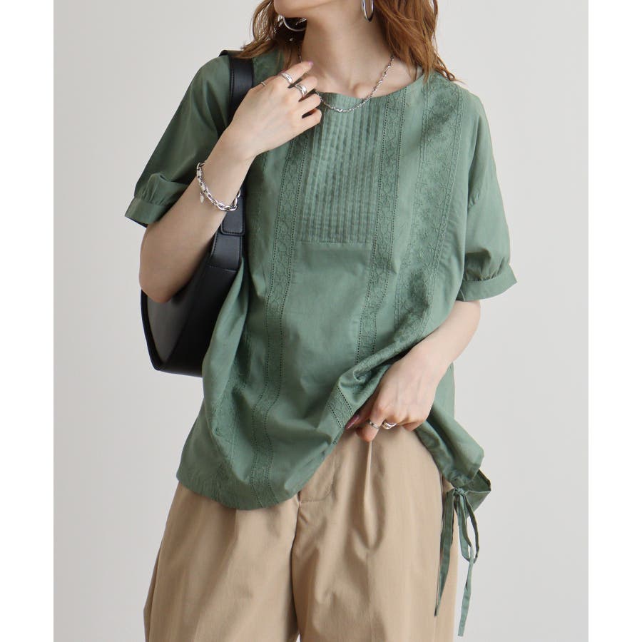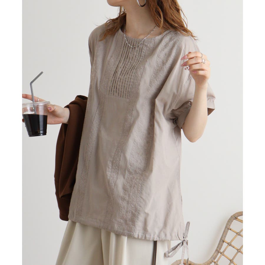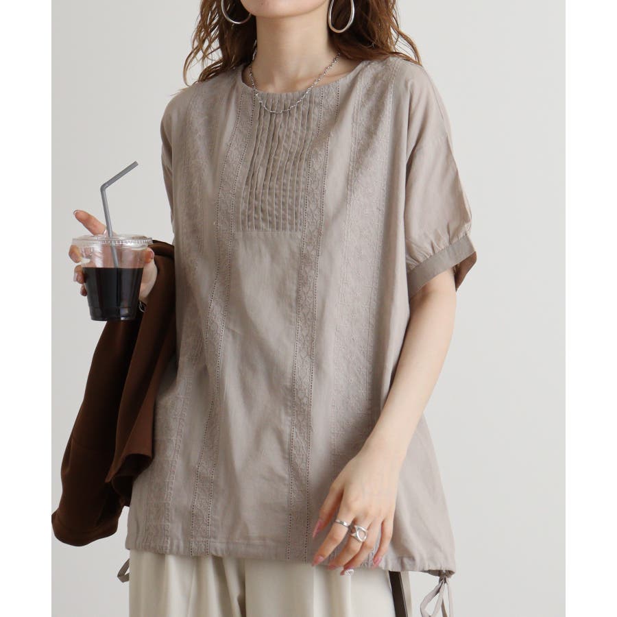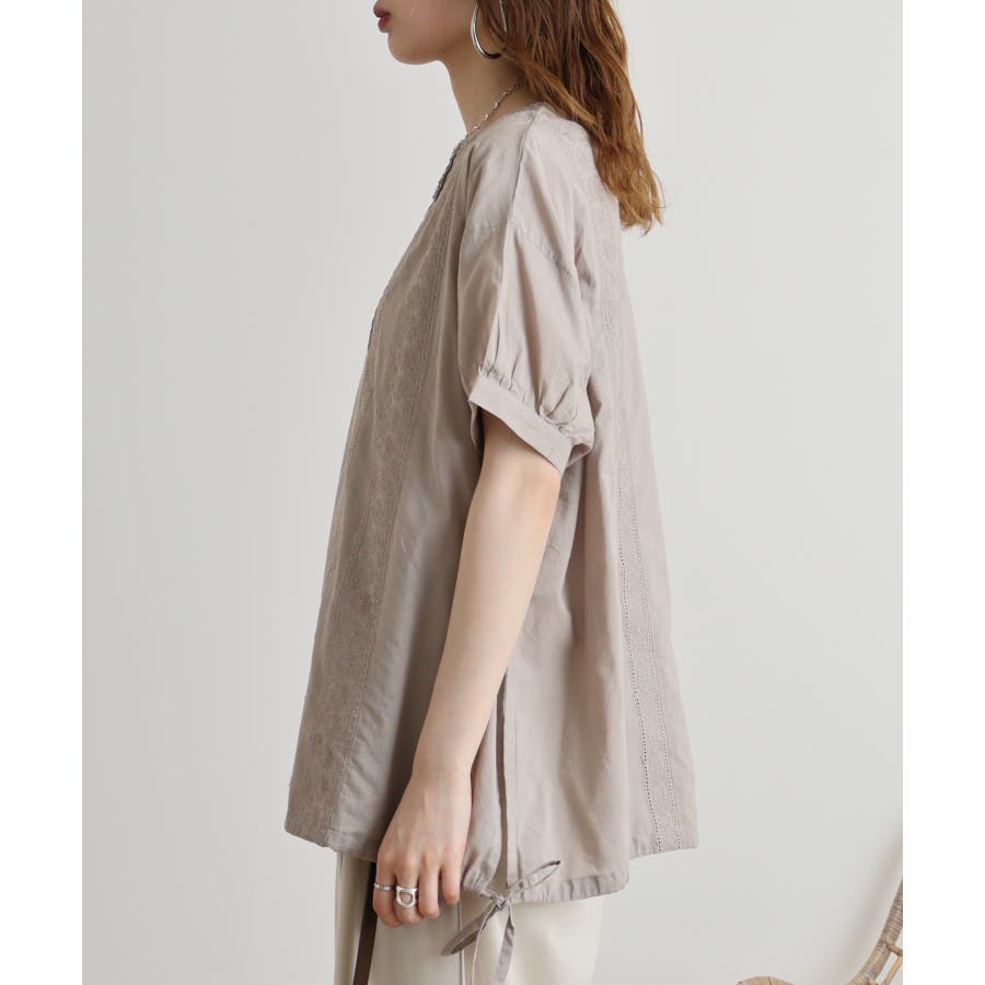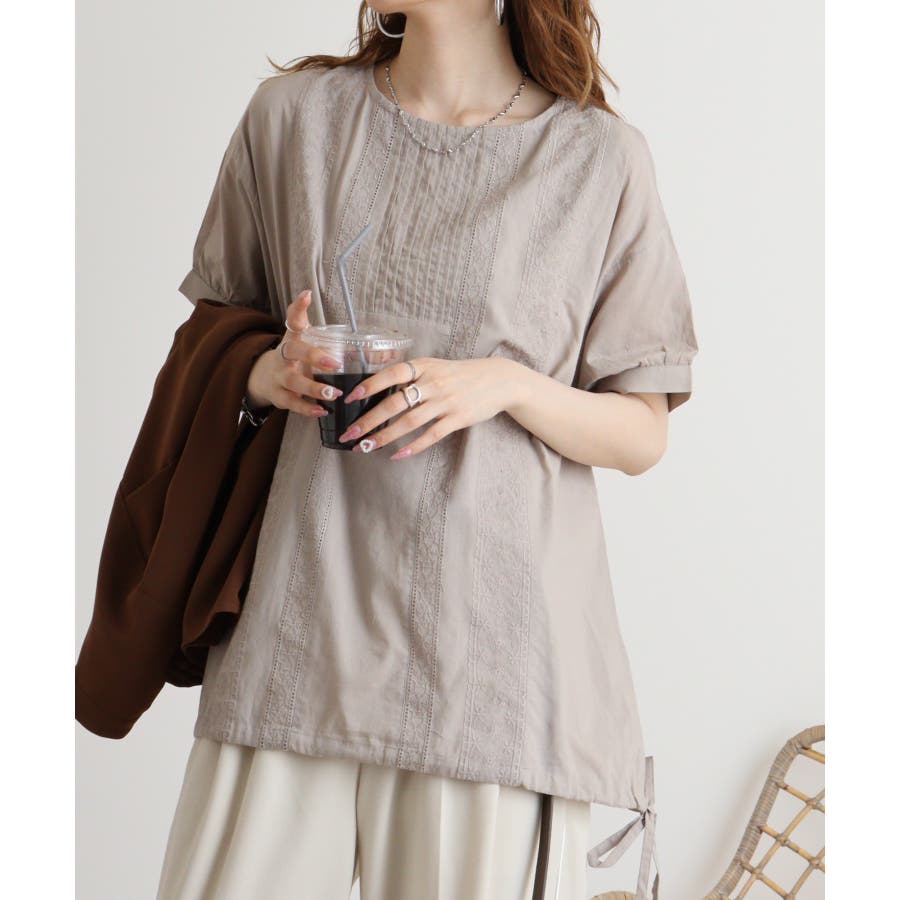 【LIGHT KHAKI】【M】裾しぼりレース切替プルオーバー