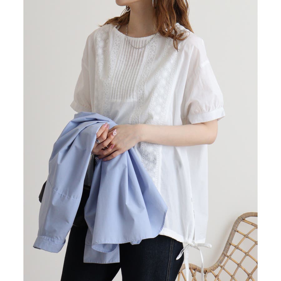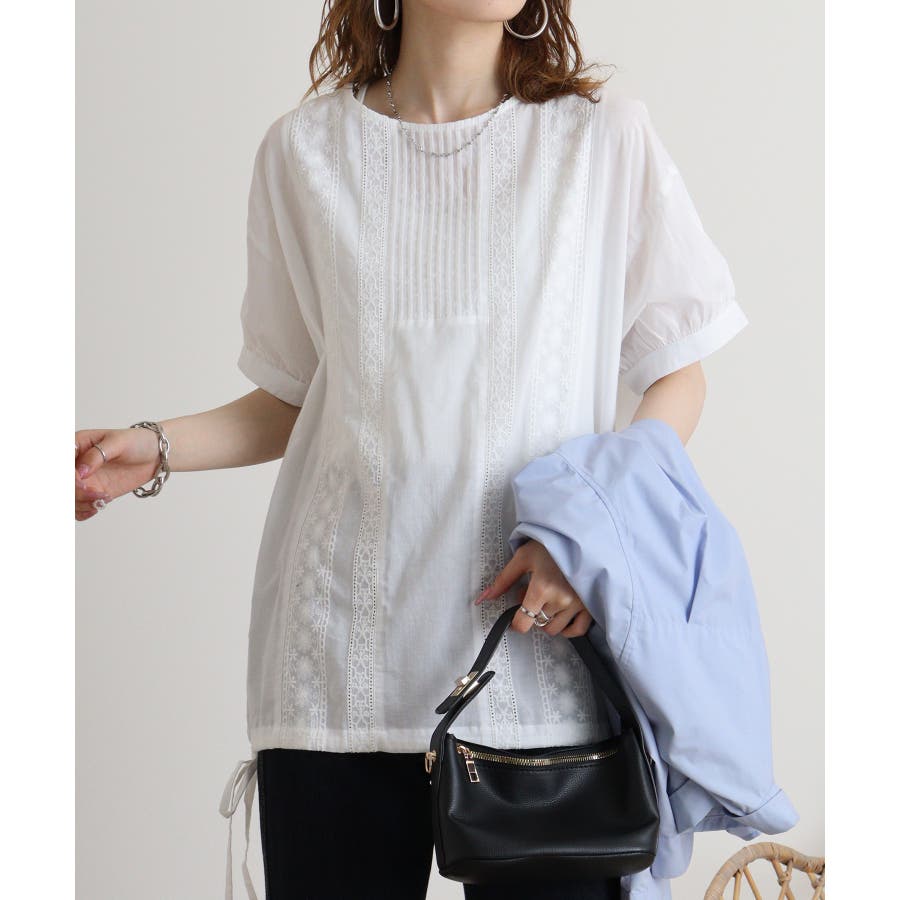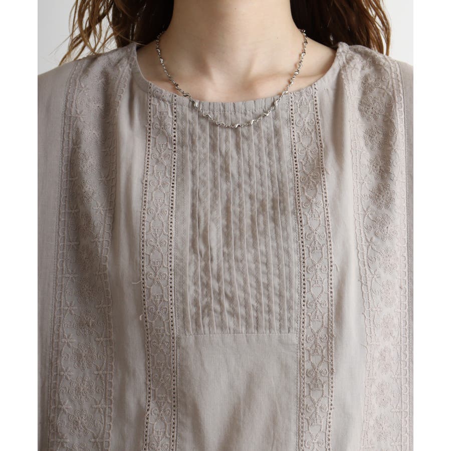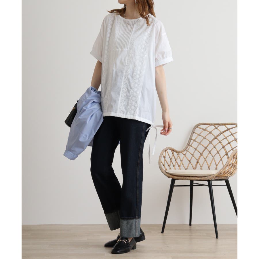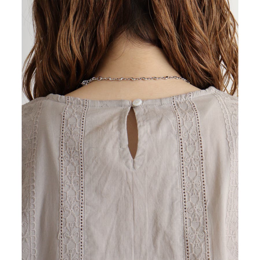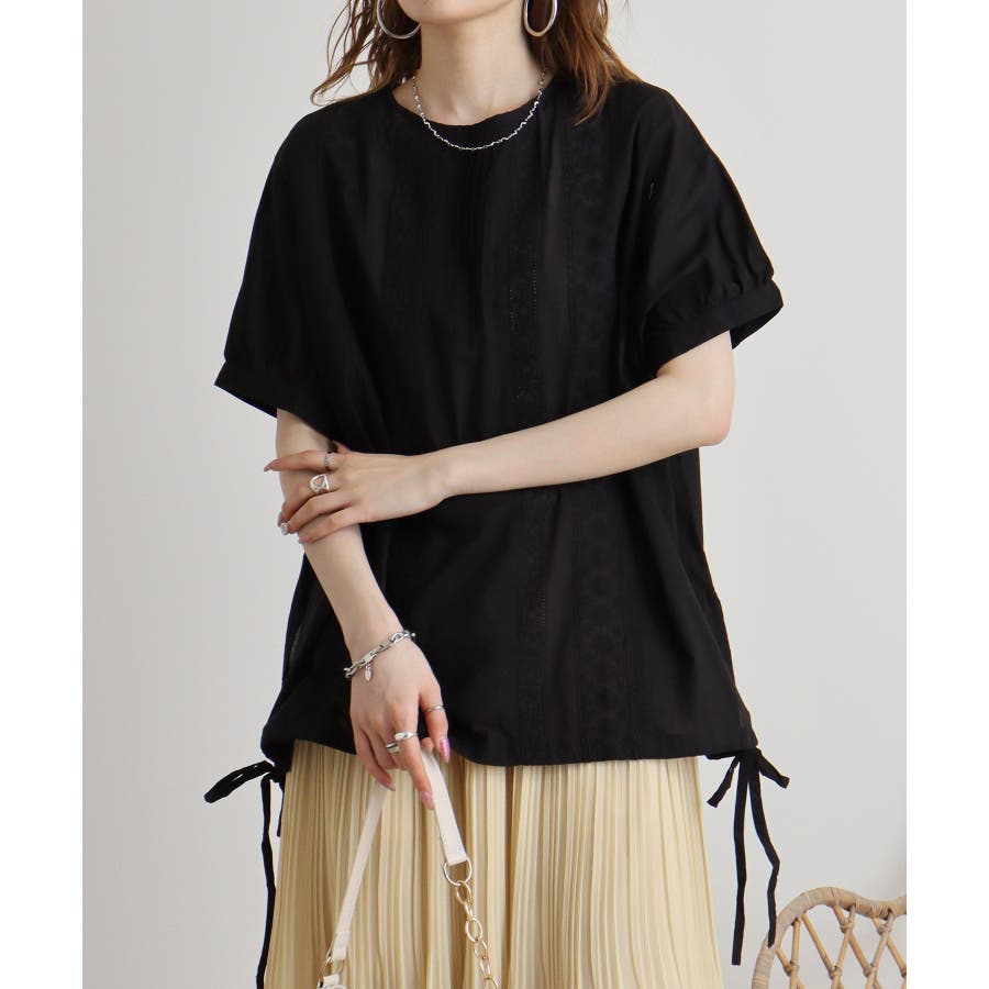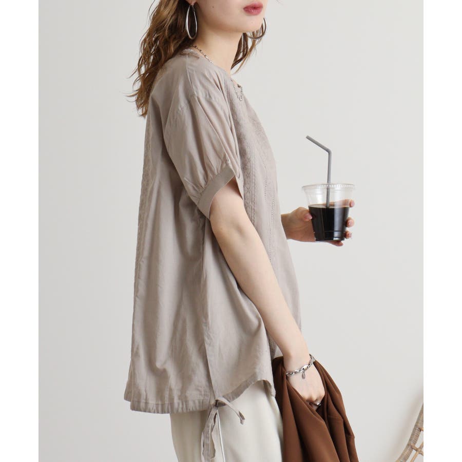 【LIGHT KHAKI】【M】裾しぼりレース切替プルオーバー