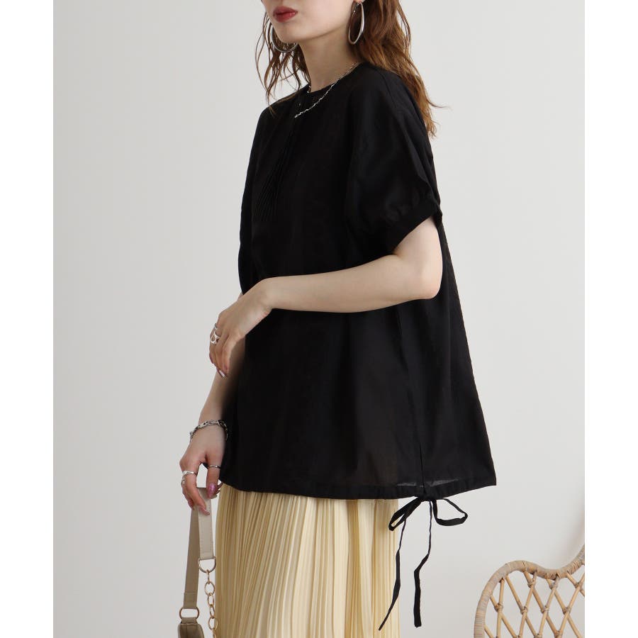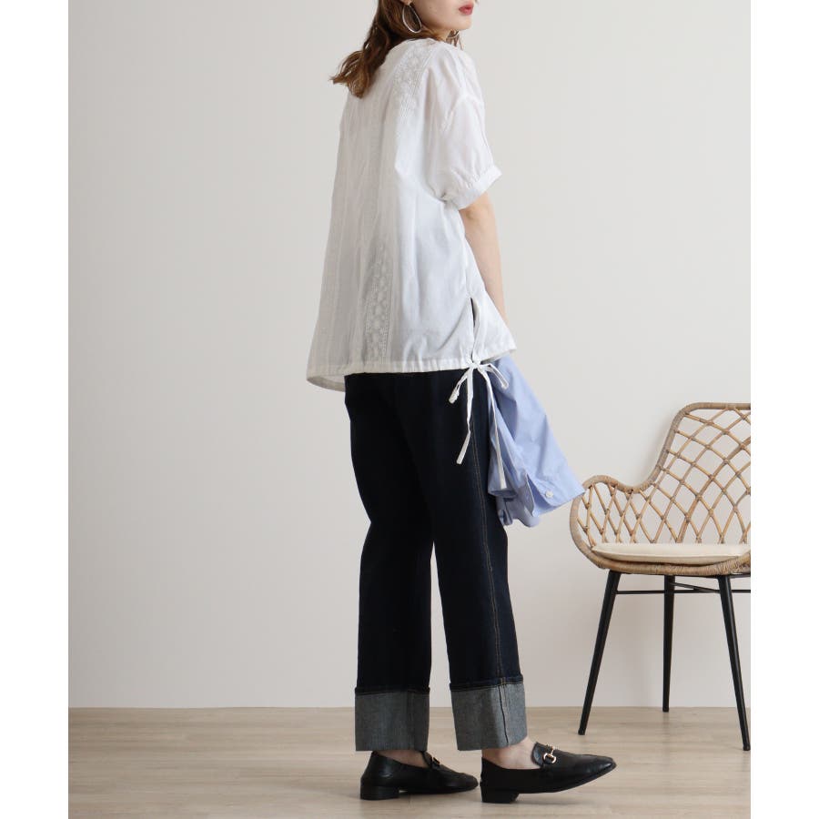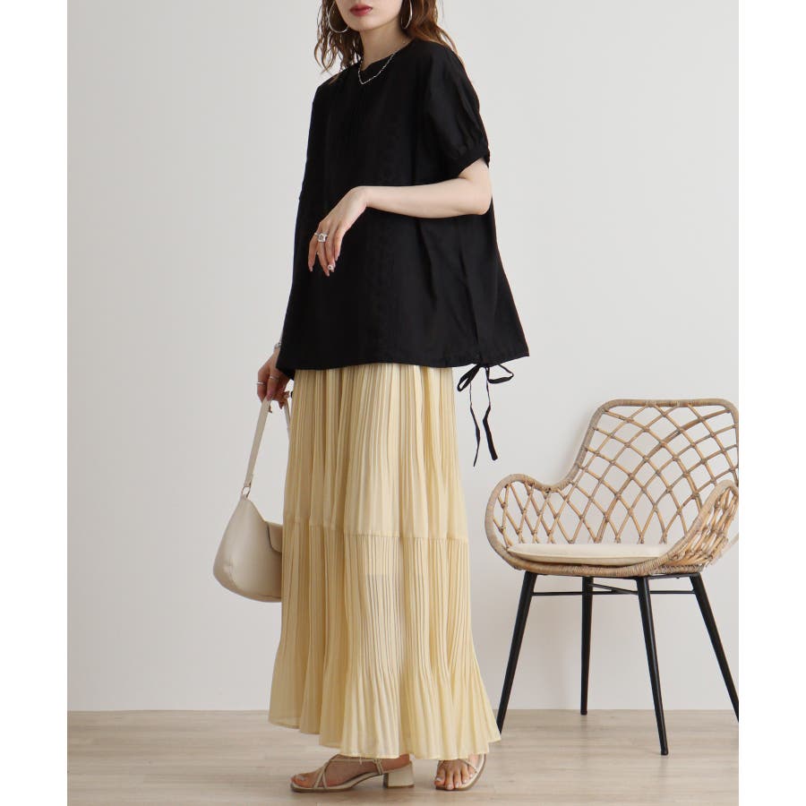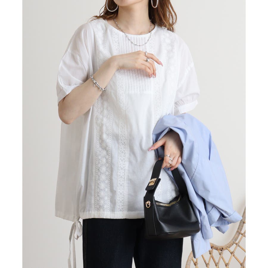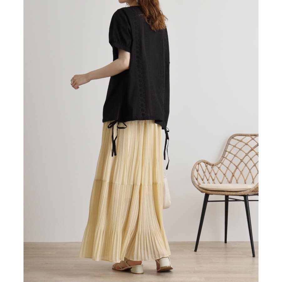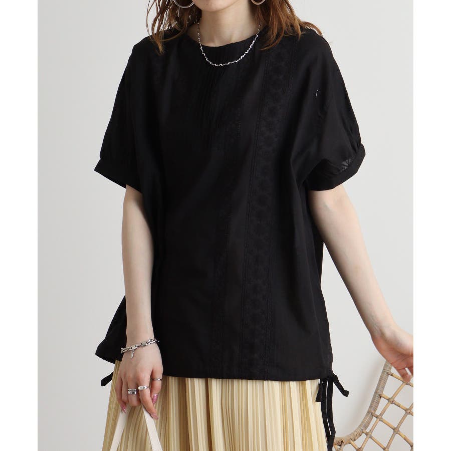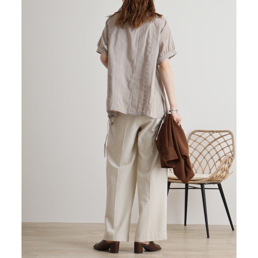 【LIGHT KHAKI】【M】裾しぼりレース切替プルオーバー