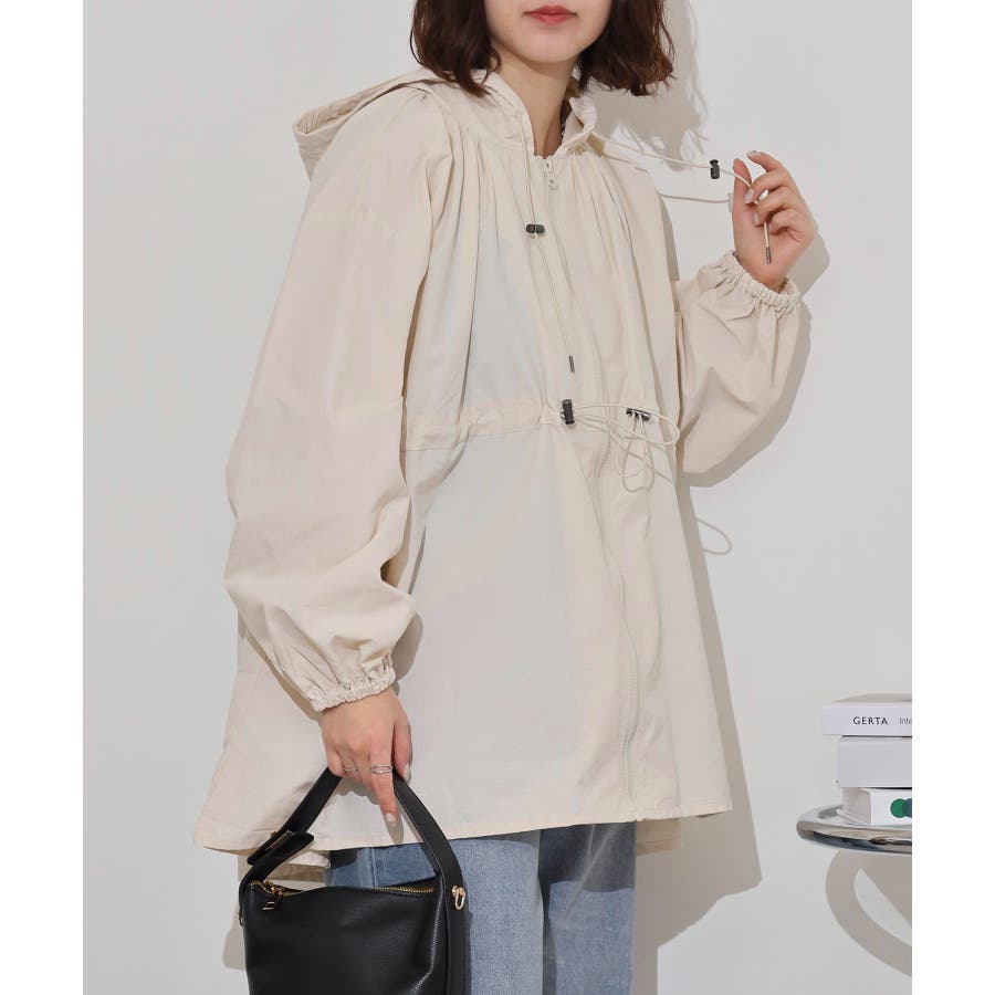 カジュアルながらもエレガントなデザインが際立つジップアップブルゾンが登場。ドロスト機能でシルエットを自在に調整でき、自分らしいスタイリングを楽しむことができます。ウエストのドローコードを絞れば、ペプラムシルエットに変化!ゆるっとしたシルエットで、抜け感をプラス。少し長めの丈感はアウターとしての使いやすさを高め、どんなシーンでも活躍します。フード付きで、天候の変化にも対応可能。シンプルながらもディテールにこだわったこの一着は、日常のコーディネートに一味違う魅力をプラスします。軽やかな着心地と機能性を兼ね備えた、オシャレ上級者にぴったりのブルゾンです。