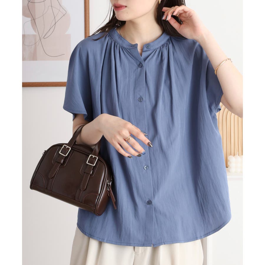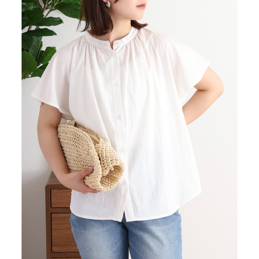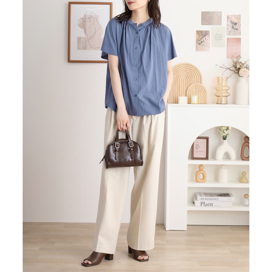 バンドカラーが顔まわりをすっきり見せ、オンにもオフにも対応する洗練された一枚です。
