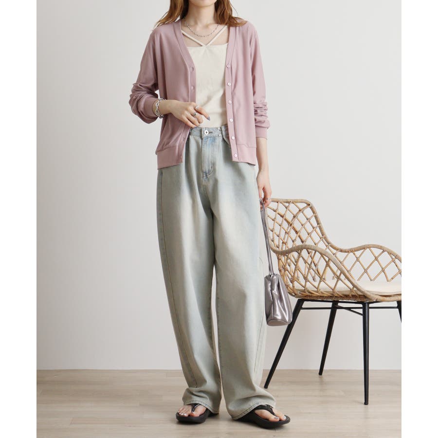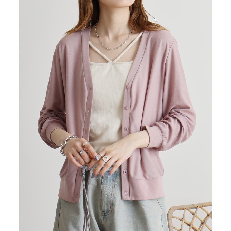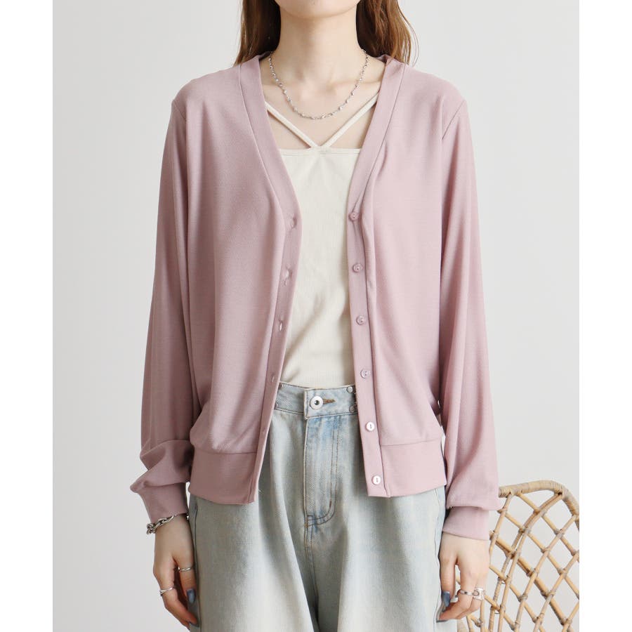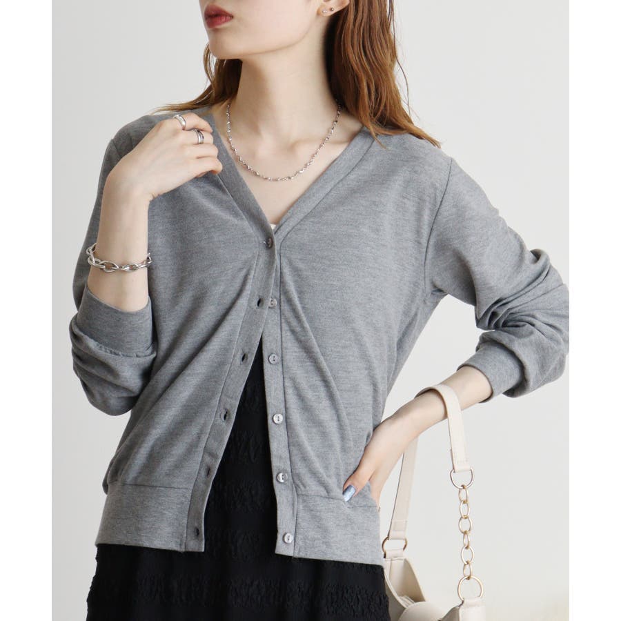 【C-GRAY】【M・L・2L・3L】梨地カットVネックカーデ
