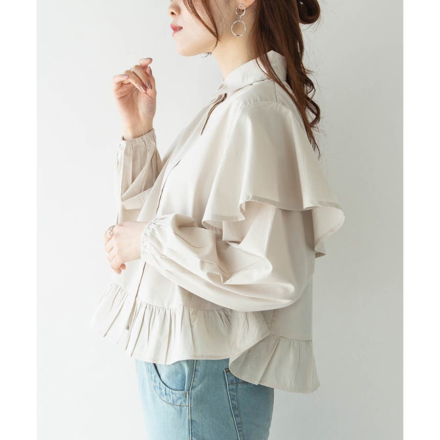 ポプリンフリルシャツは、柔らかな綿100%素材で仕立てられた女性らしいアイテムです。軽やかで肌触りが良く、快適な着心地を提供します。シャツの裾には愛らしいフリルが施されており、動くたびに揺れるディテールがエレガントな印象に。袖をカバーするデザインも二の腕カバーに役立ちます。マーメイドスカートやナロースカートと合わせたフェミニンスタイルはもちろん、デニムパンツ(ジーンズ)やストレートパンツと合わせてカジュアルな着こなしも◎一枚で着てもかわいいですが、ワンピースやキャミソール、タンクトップなどをインナーに羽織りとしてもおすすめ!クローシュハットやキャスケット、ミニバッグやスマホショルダーを合わせるとトレンド感のあるスタイリングに♪足元は、厚底ローファーやパンプスを合わせたスタイルや、ハイカットスニーカー合わせでカジュアルスタイルも簡単にきまり、コーデの幅も広がります♪