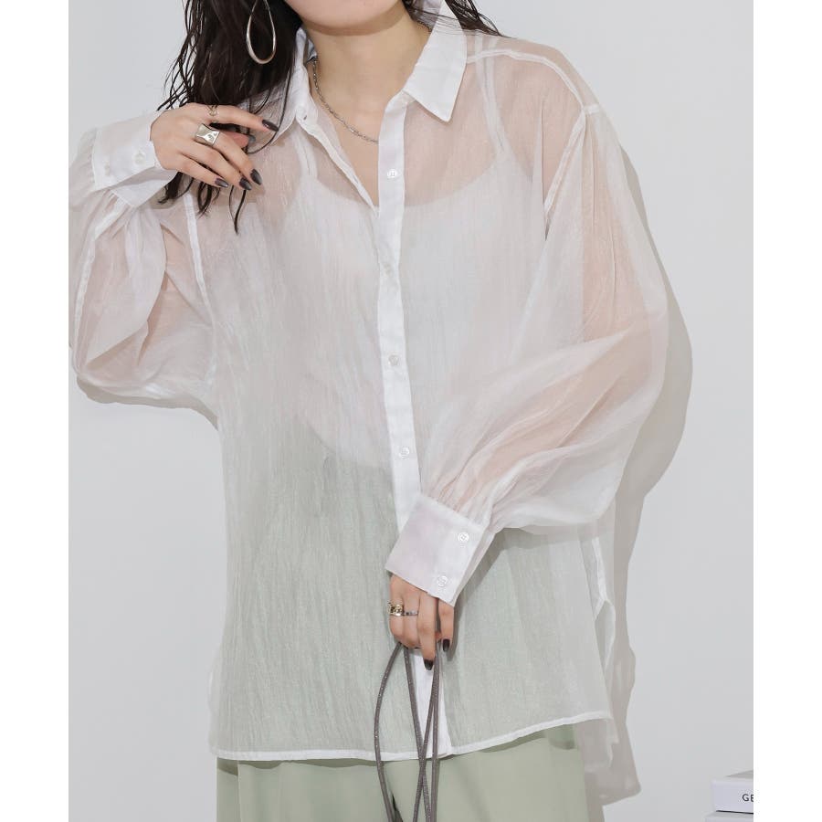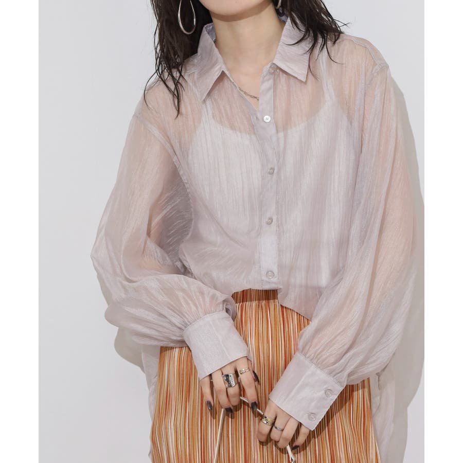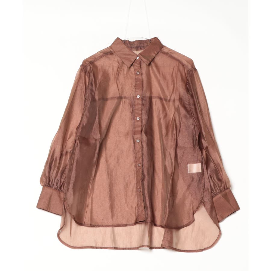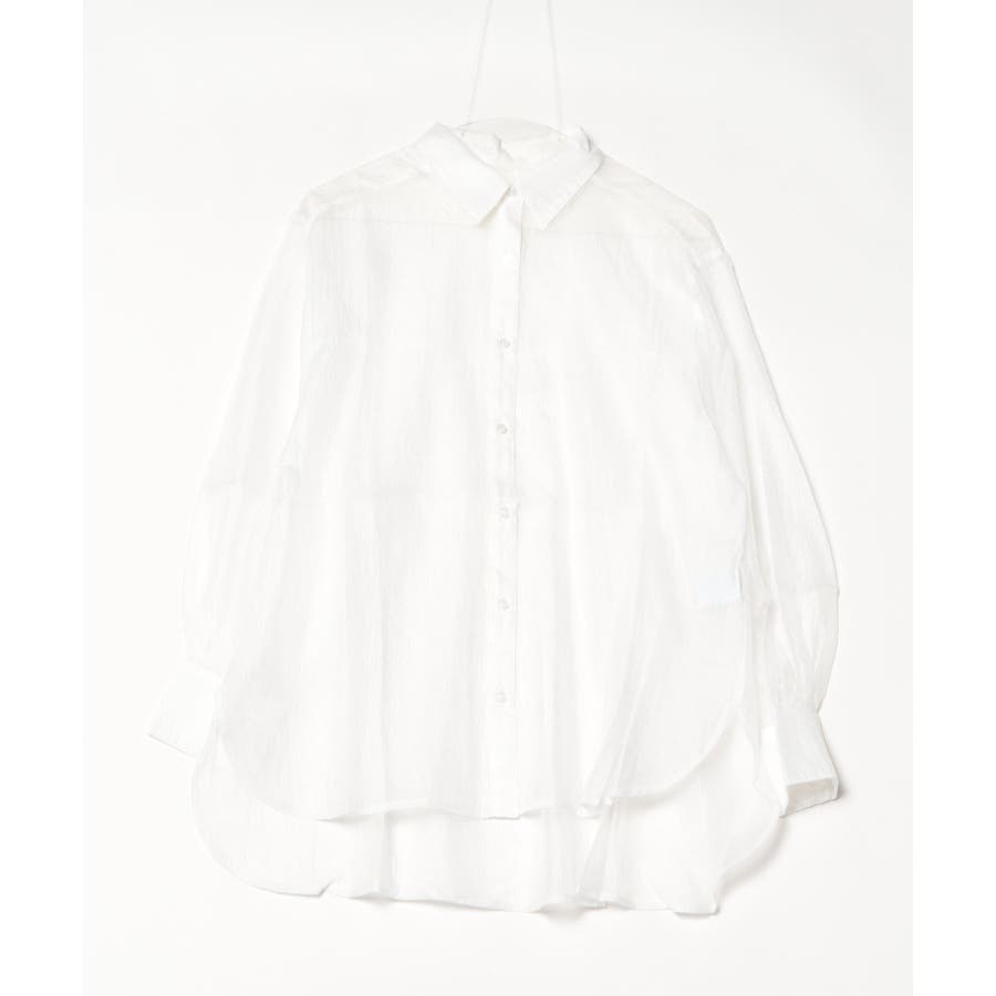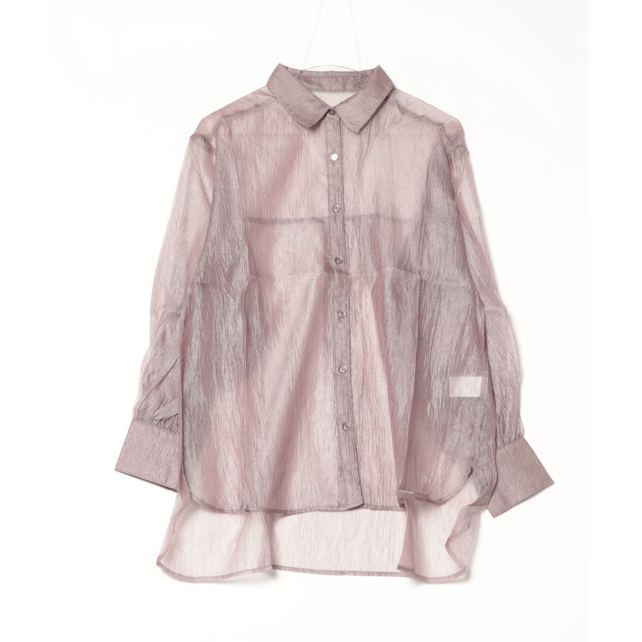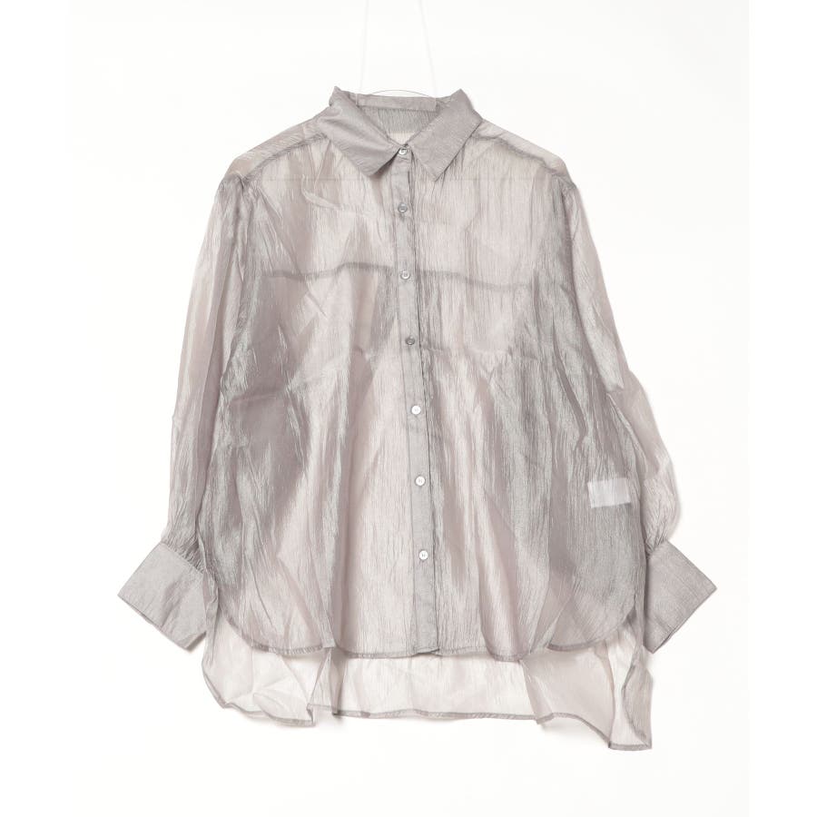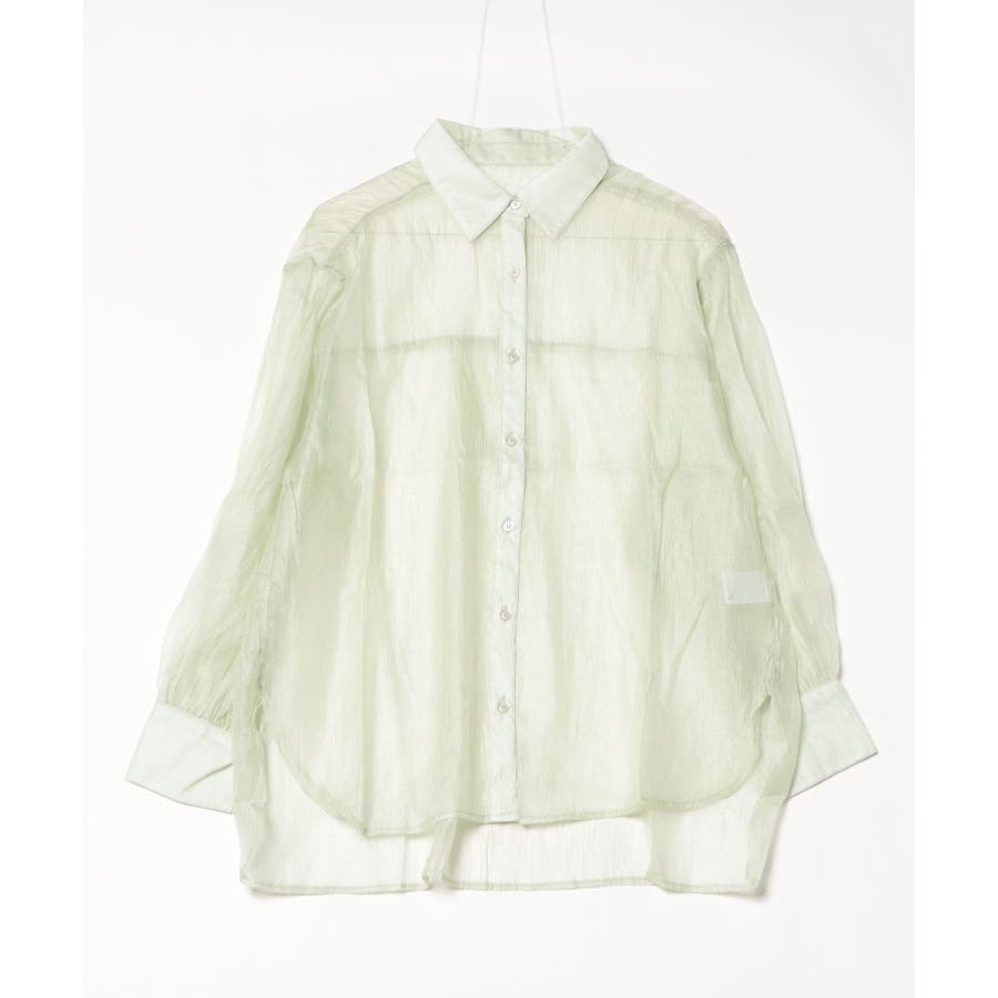 光沢のあるオーガンシアー素材を使用したオーバーシャツです。角度によって表面の輝きが変わり、シンプルながらも気分が上がる一枚です。さりげないワッシャー感がアクセントとなり、ナチュラルな風合いを演出しています。爽やかな透け感のあるシアービックシャツ。晩夏から秋に最適な長袖シャツは季節の変わりと共に自然にコーディネートに取り入れやすいアイテムです。レギュラーカラーのベーシックなデザインは羽織ってもインナー使いにでも着回し抜群。ゆとりのあるビッグサイズなので風通しもよく晩夏の時期や春先にも重宝します。