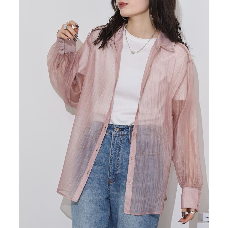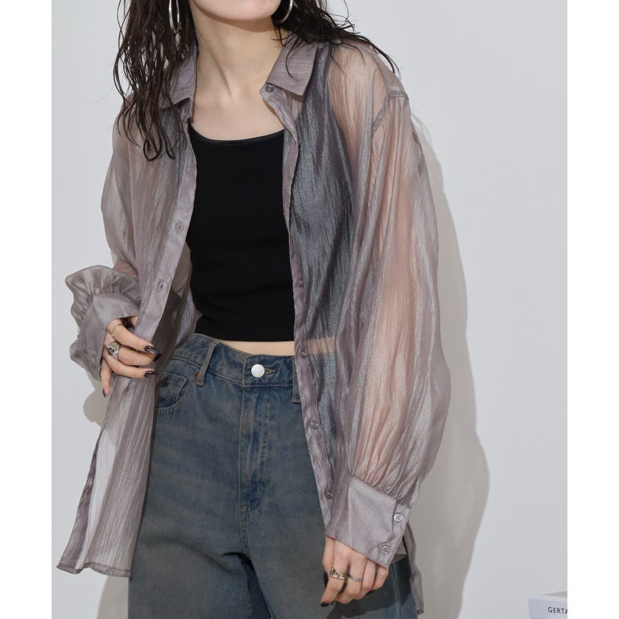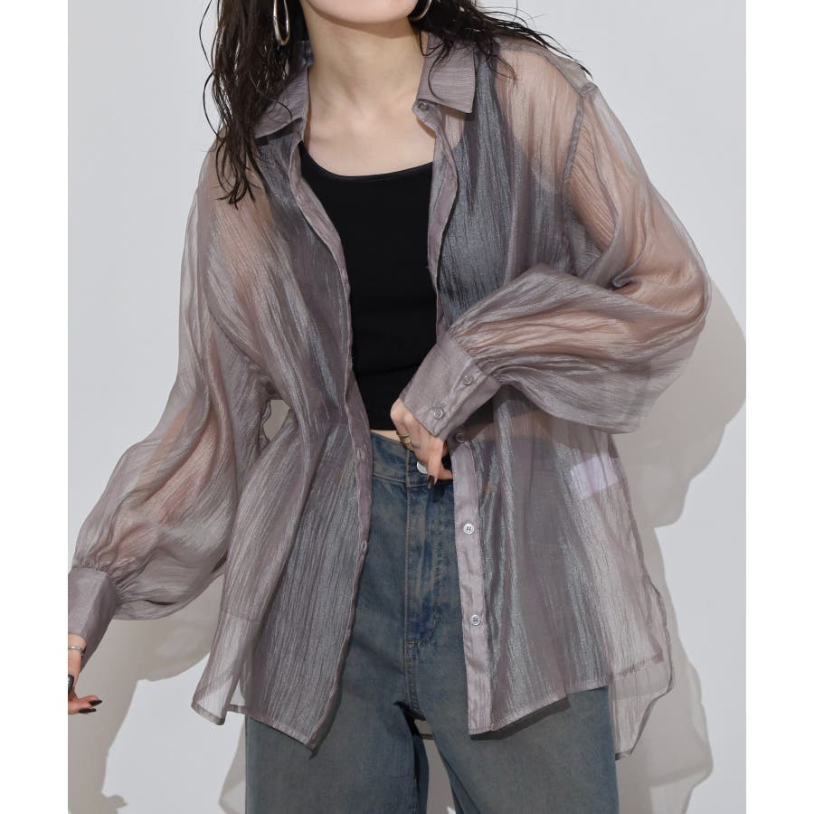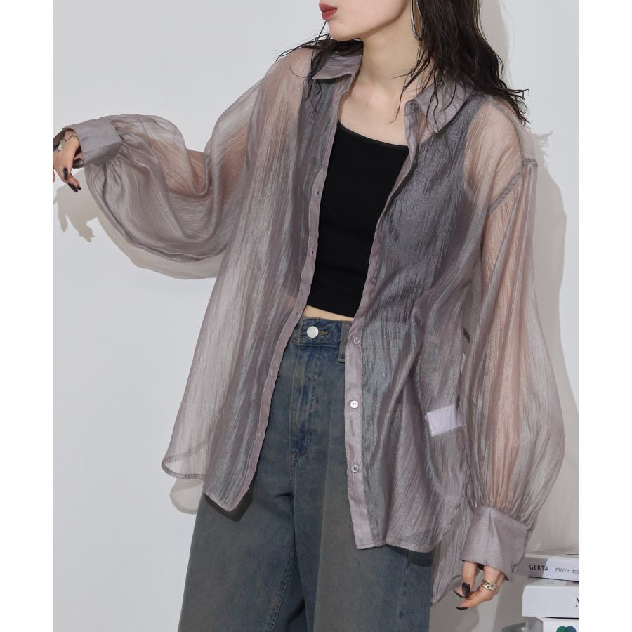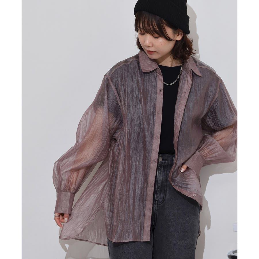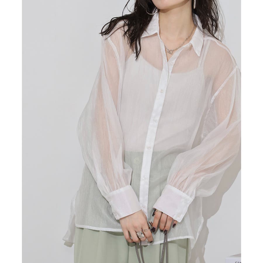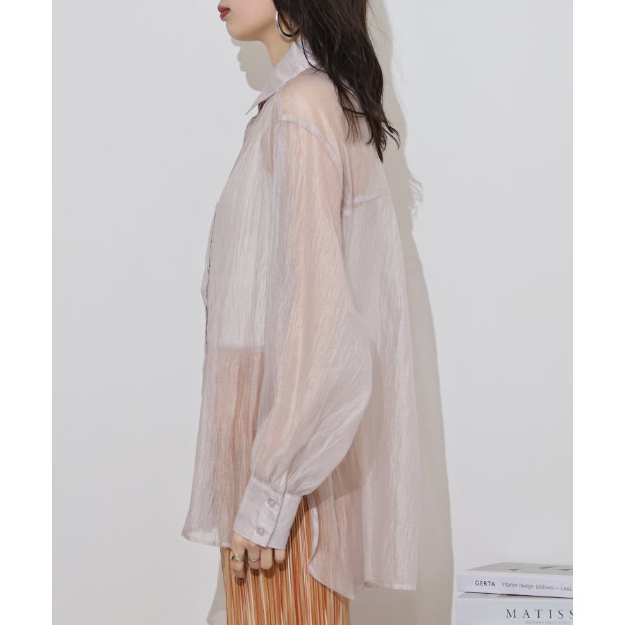 光沢のあるオーガンシアー素材を使用したオーバーシャツです。角度によって表面の輝きが変わり、シンプルながらも気分が上がる一枚です。さりげないワッシャー感がアクセントとなり、ナチュラルな風合いを演出しています。爽やかな透け感のあるシアービックシャツ。晩夏から秋に最適な長袖シャツは季節の変わりと共に自然にコーディネートに取り入れやすいアイテムです。レギュラーカラーのベーシックなデザインは羽織ってもインナー使いにでも着回し抜群。ゆとりのあるビッグサイズなので風通しもよく晩夏の時期や春先にも重宝します。