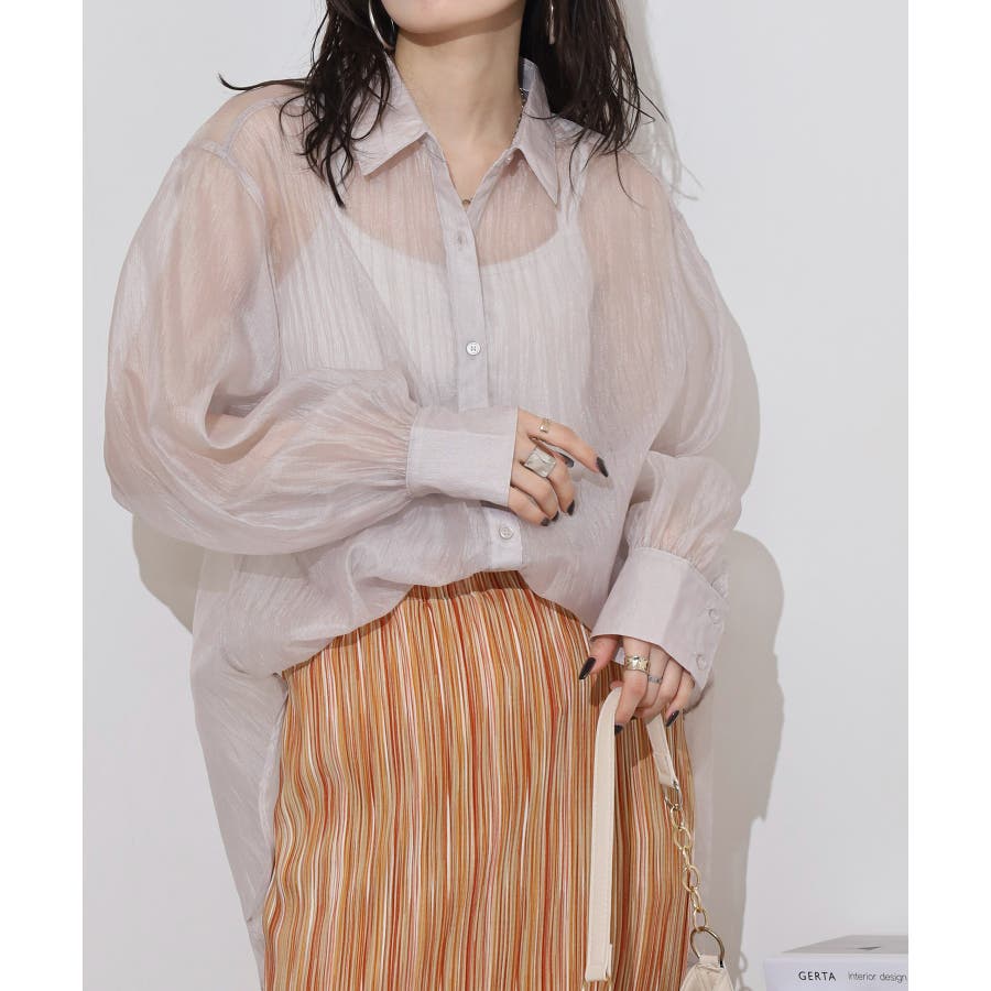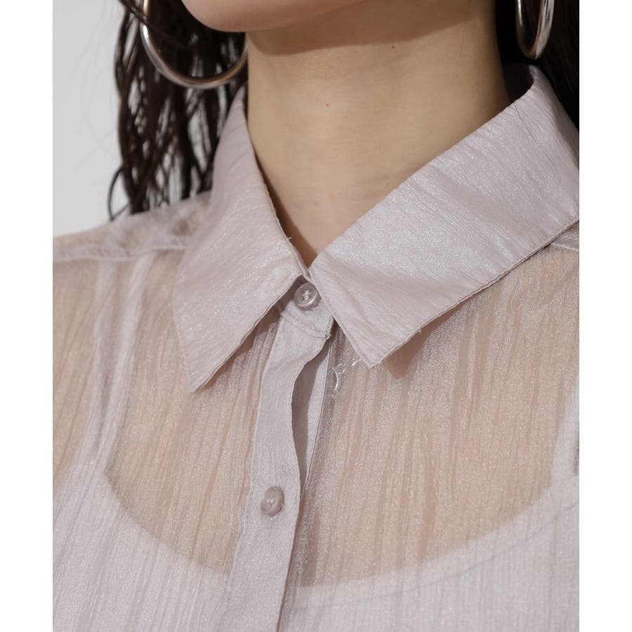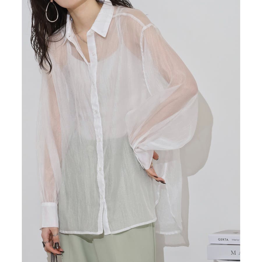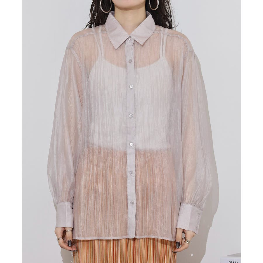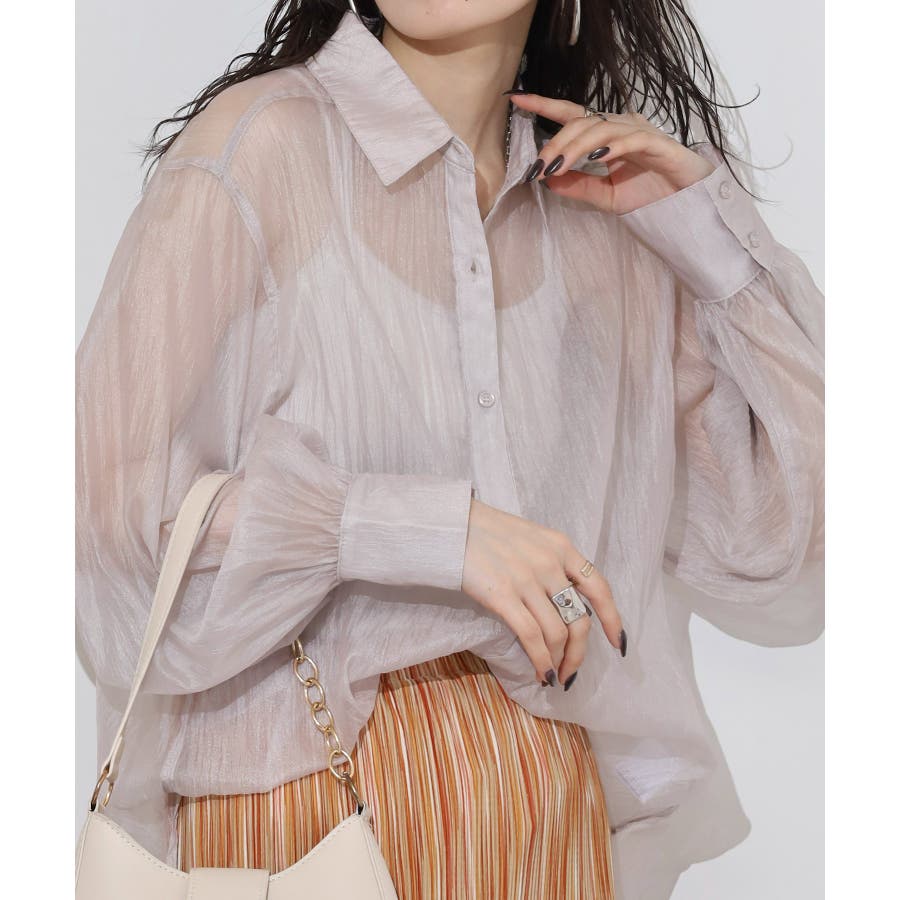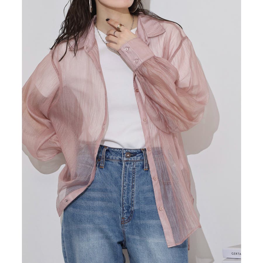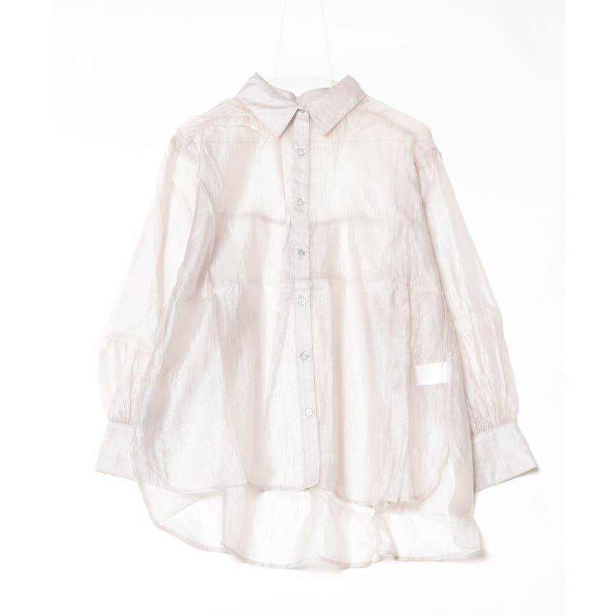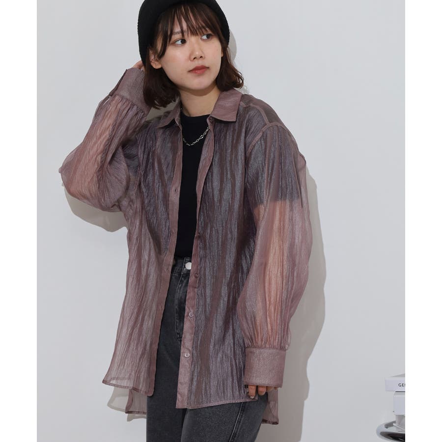 光沢のあるオーガンシアー素材を使用したオーバーシャツです。角度によって表面の輝きが変わり、シンプルながらも気分が上がる一枚です。さりげないワッシャー感がアクセントとなり、ナチュラルな風合いを演出しています。爽やかな透け感のあるシアービックシャツ。晩夏から秋に最適な長袖シャツは季節の変わりと共に自然にコーディネートに取り入れやすいアイテムです。レギュラーカラーのベーシックなデザインは羽織ってもインナー使いにでも着回し抜群。ゆとりのあるビッグサイズなので風通しもよく晩夏の時期や春先にも重宝します。
