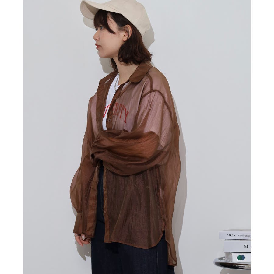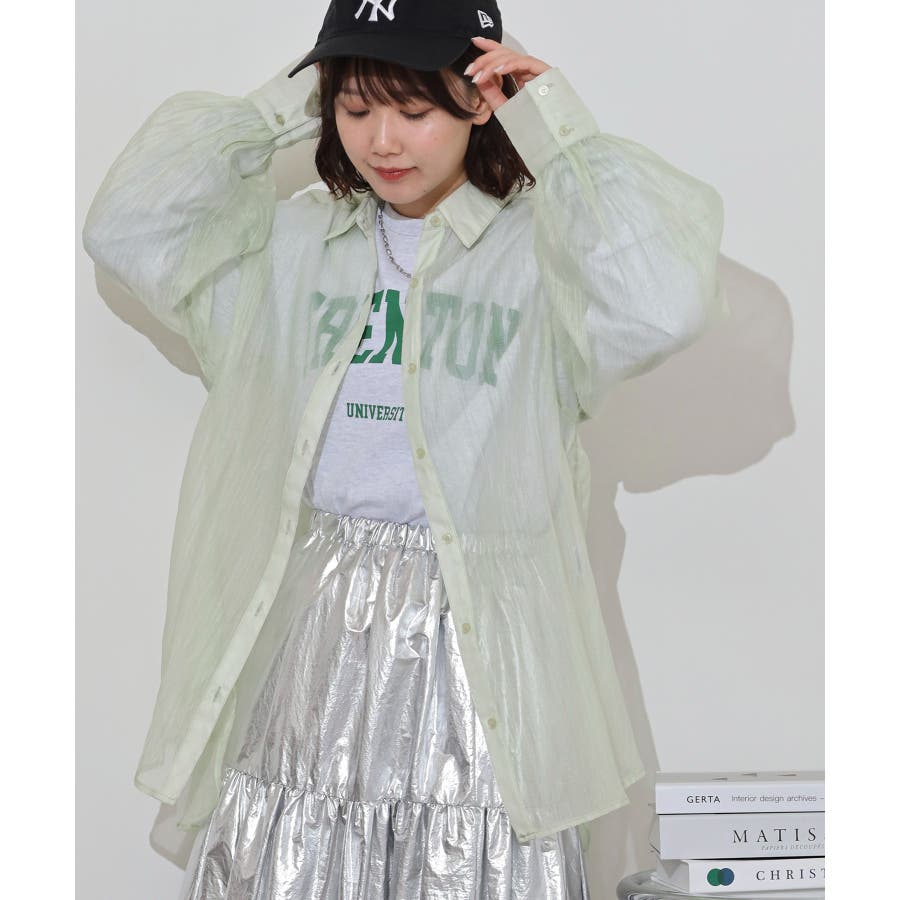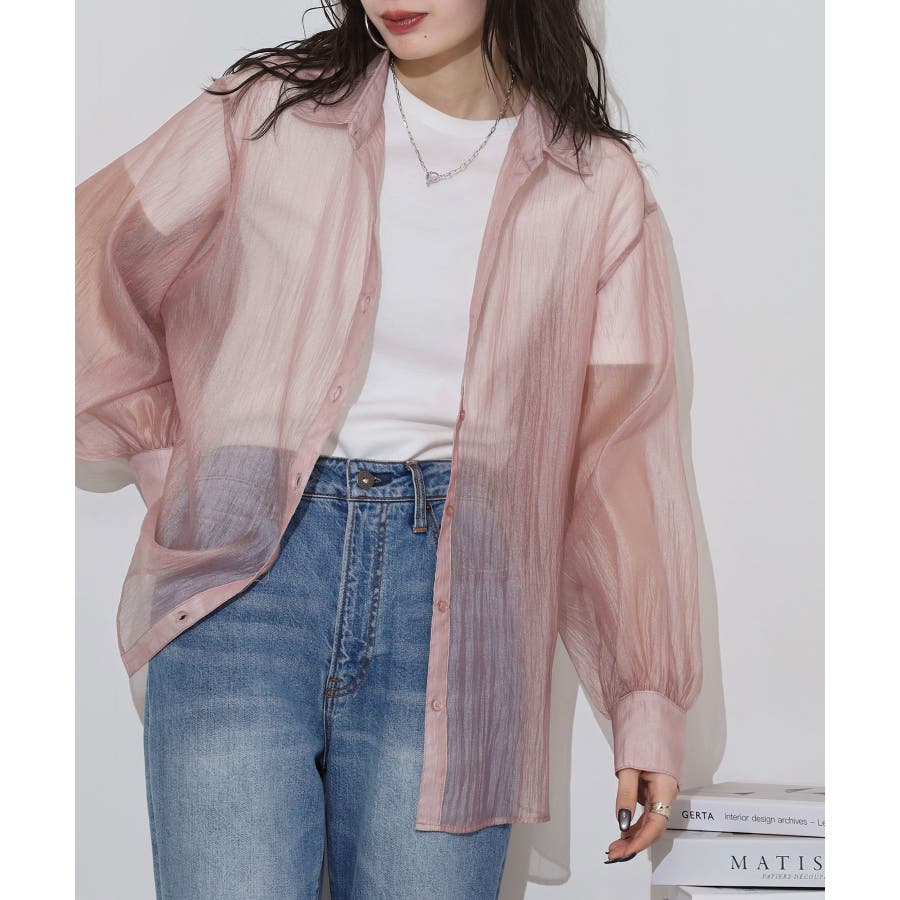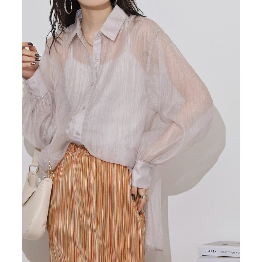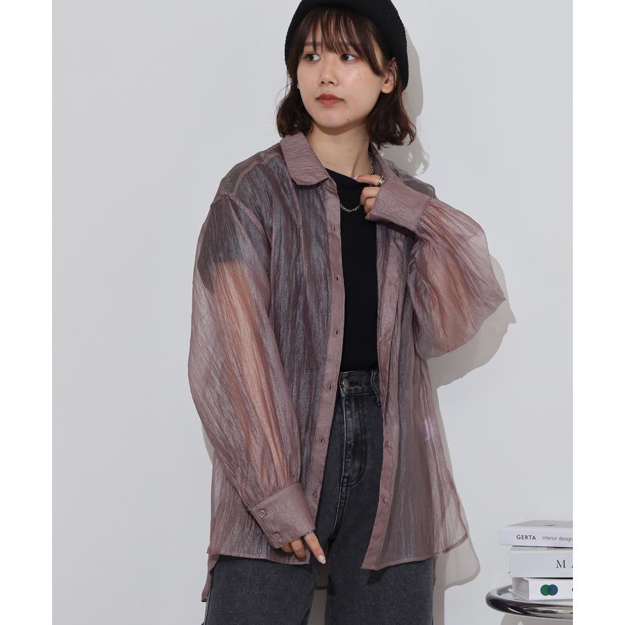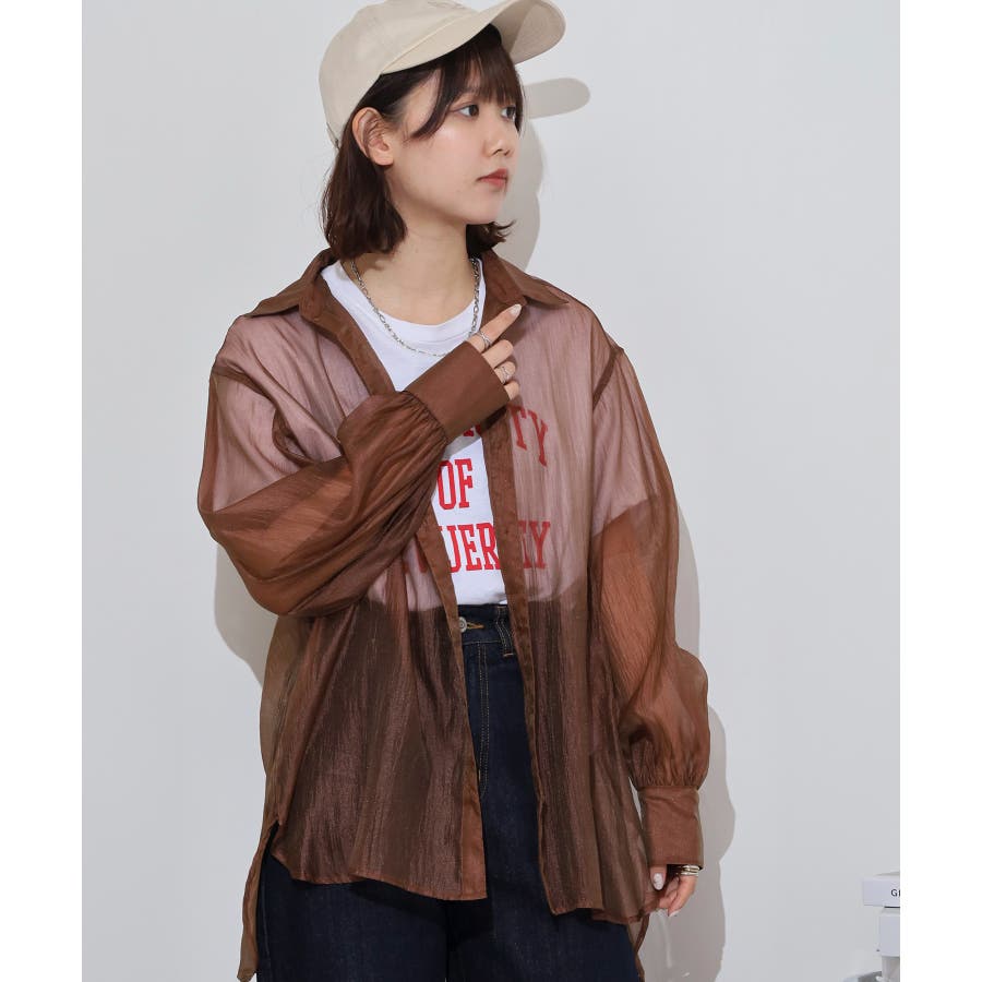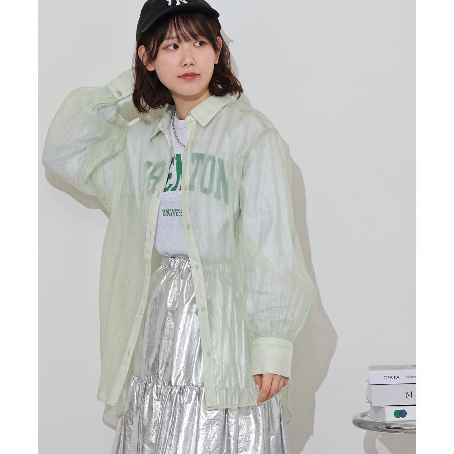 光沢のあるオーガンシアー素材を使用したオーバーシャツです。角度によって表面の輝きが変わり、シンプルながらも気分が上がる一枚です。さりげないワッシャー感がアクセントとなり、ナチュラルな風合いを演出しています。爽やかな透け感のあるシアービックシャツ。晩夏から秋に最適な長袖シャツは季節の変わりと共に自然にコーディネートに取り入れやすいアイテムです。レギュラーカラーのベーシックなデザインは羽織ってもインナー使いにでも着回し抜群。ゆとりのあるビッグサイズなので風通しもよく晩夏の時期や春先にも重宝します。