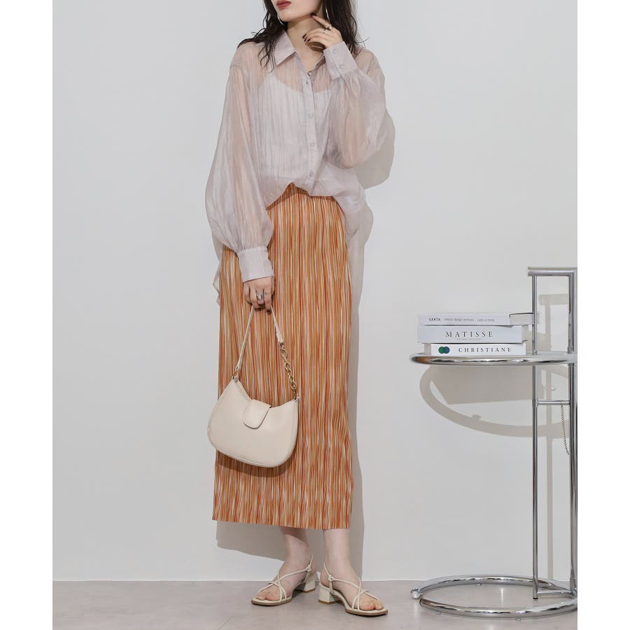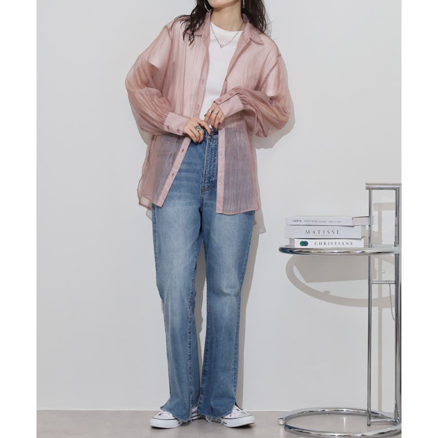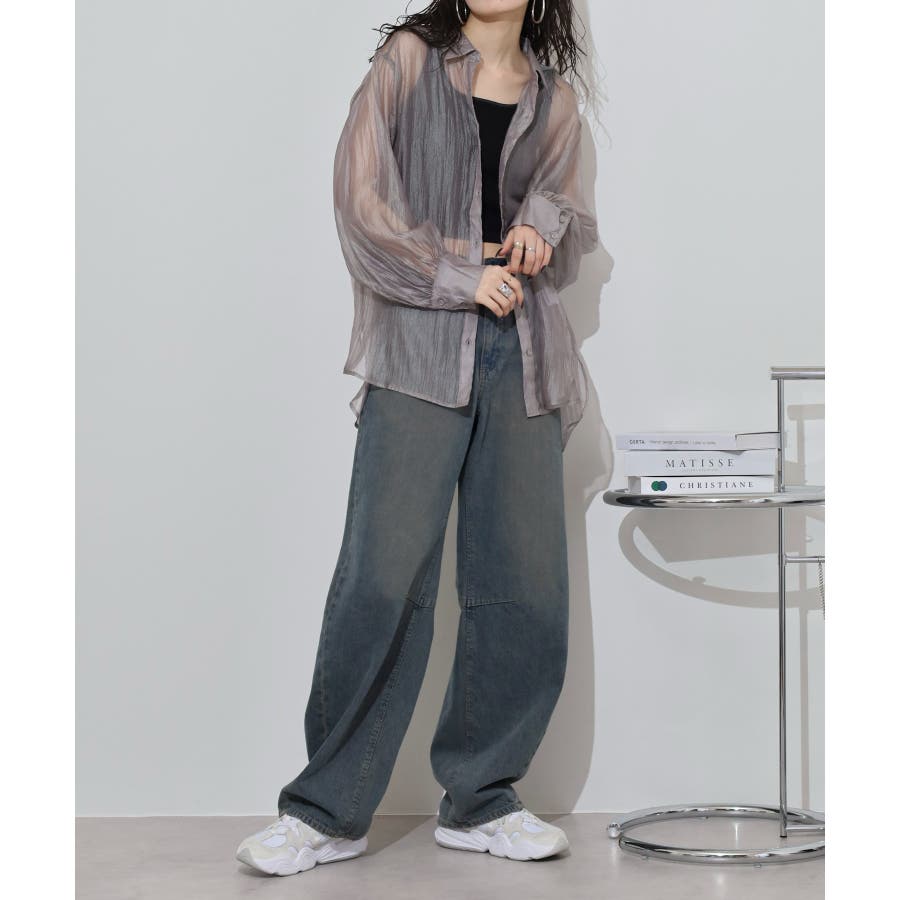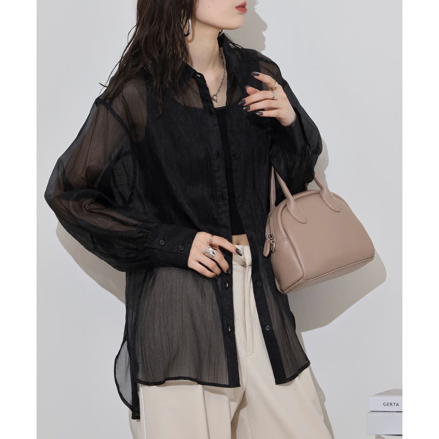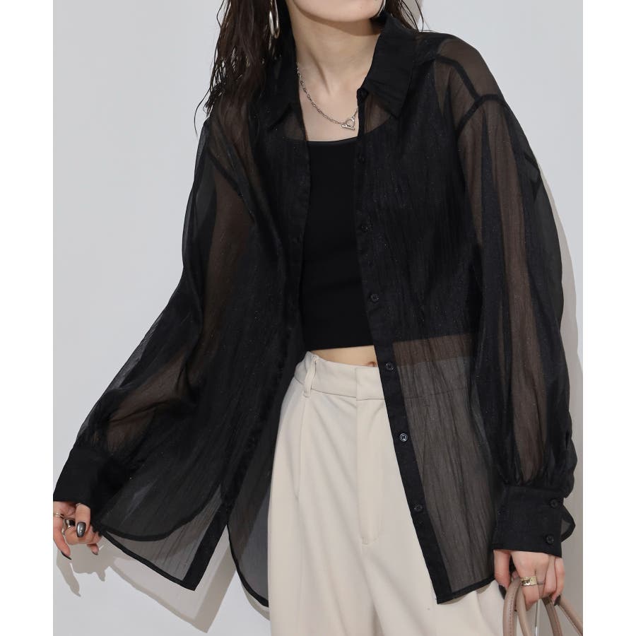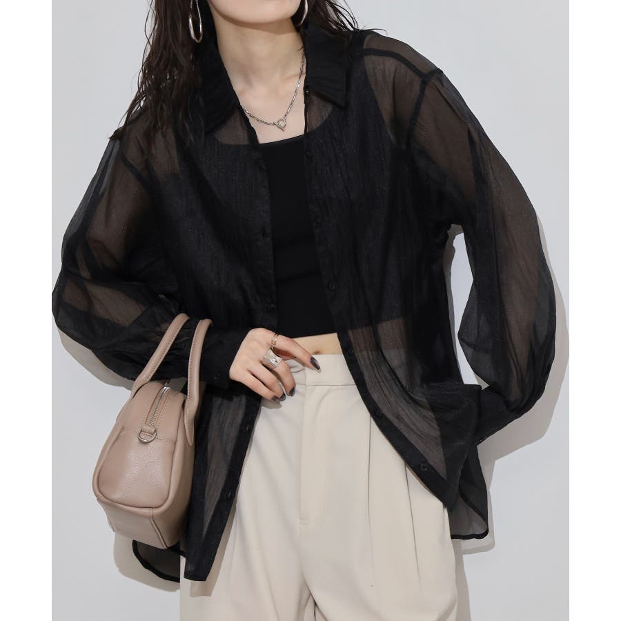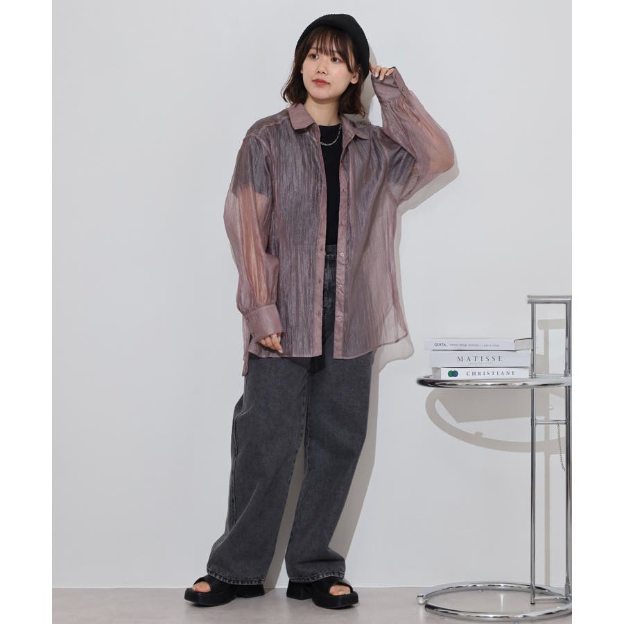光沢のあるオーガンシアー素材を使用したオーバーシャツです。角度によって表面の輝きが変わり、シンプルながらも気分が上がる一枚です。さりげないワッシャー感がアクセントとなり、ナチュラルな風合いを演出しています。爽やかな透け感のあるシアービックシャツ。晩夏から秋に最適な長袖シャツは季節の変わりと共に自然にコーディネートに取り入れやすいアイテムです。レギュラーカラーのベーシックなデザインは羽織ってもインナー使いにでも着回し抜群。ゆとりのあるビッグサイズなので風通しもよく晩夏の時期や春先にも重宝します。