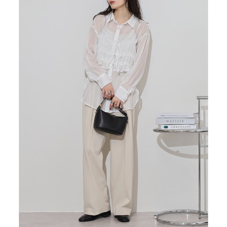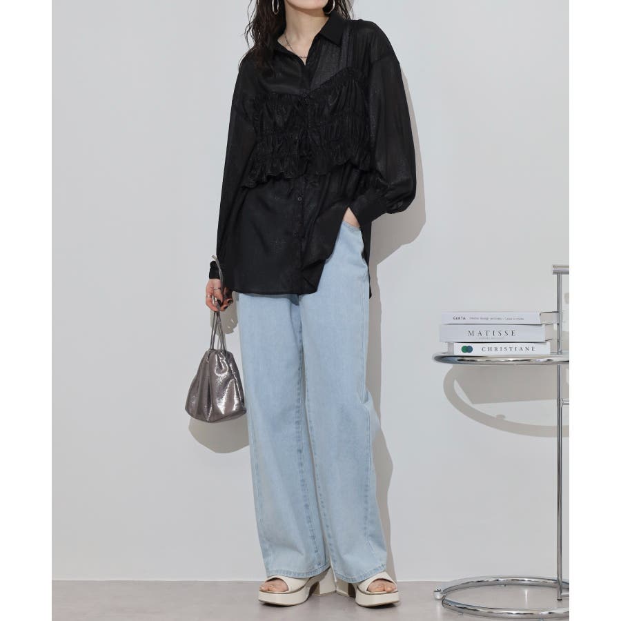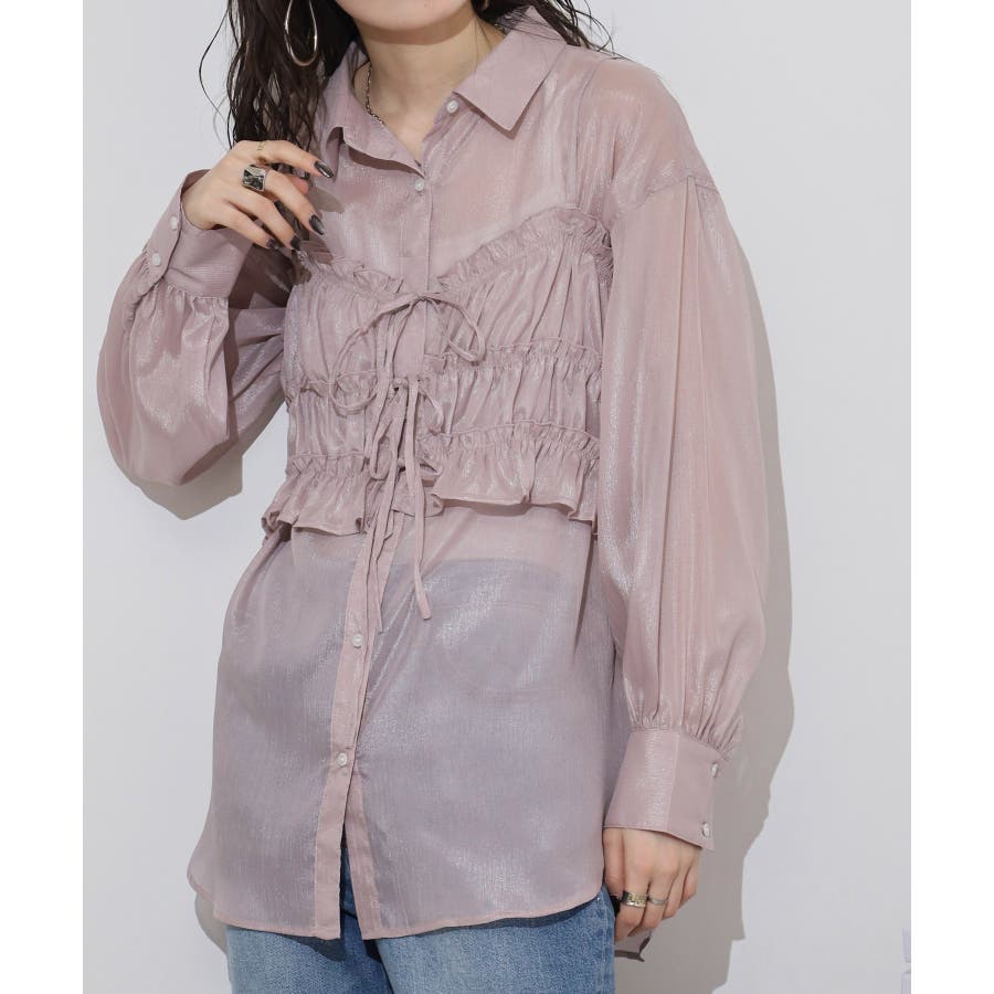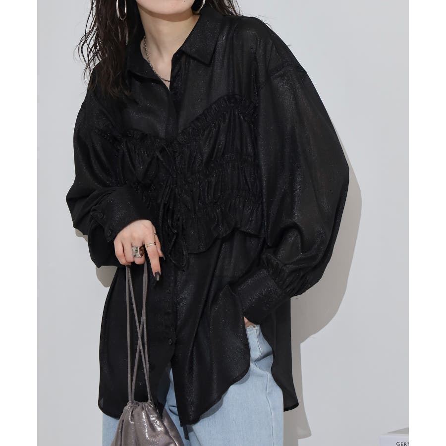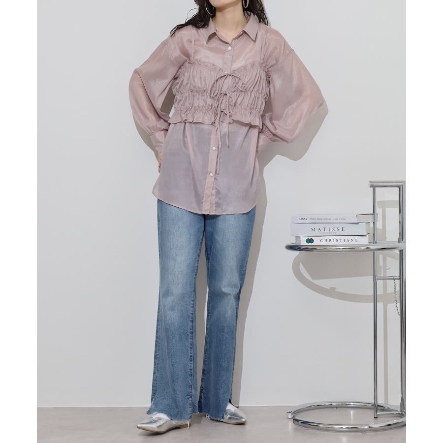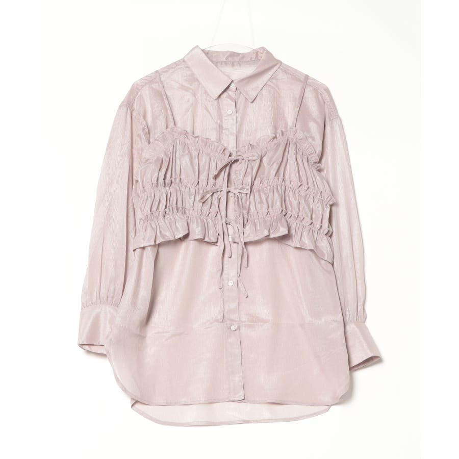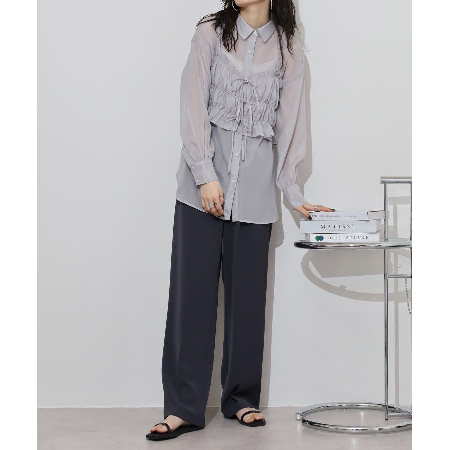 透け感が涼しげなシアー素材のシャツとりぼんギャザービスチェのセットで、こなれ感のあるレイヤードスタイルが簡単に完成する1着が登場。楊柳ならではのナチュラルなクシュっと感に、さりげなく輝く繊細なラメも魅力的な1枚です。ふんわり軽やかなシャツは程よい透け感があり、大人っぽい印象に!ビスチェのギャザーが華やかさをプラスし、ウエストラインを引き締めてくれるのでメリハリのあるシルエットが叶います。それぞれ単品でも着回しができるので、着こなしの幅が広がるアイテムです◎ゆとりのあるビッグサイズなので風通しもよく晩夏の時期や春先にも重宝します。