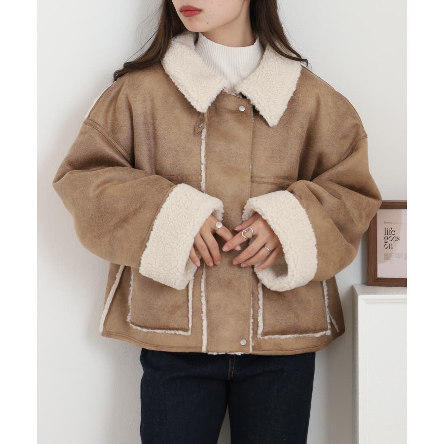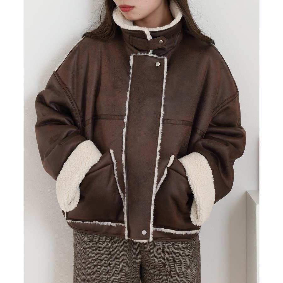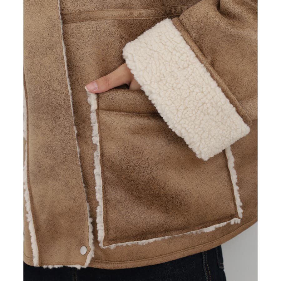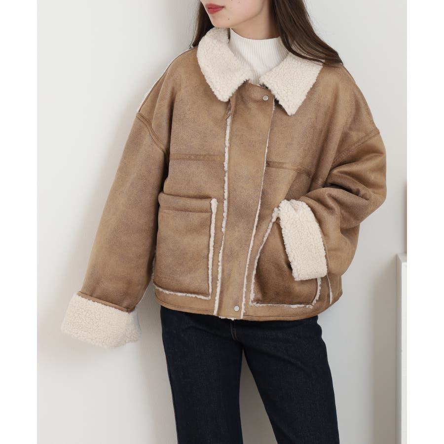 ・柔らかなフェイクムートンとふんわりとしたボアをボンディングした、季節感たっぷりのジャケット。