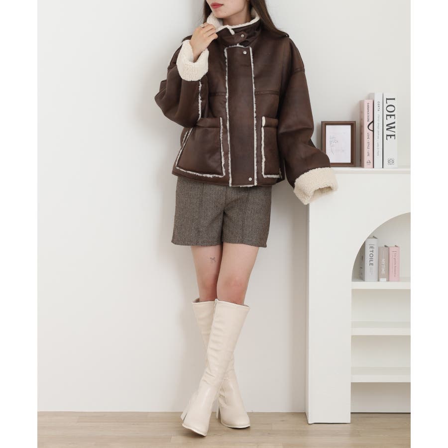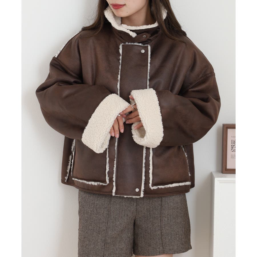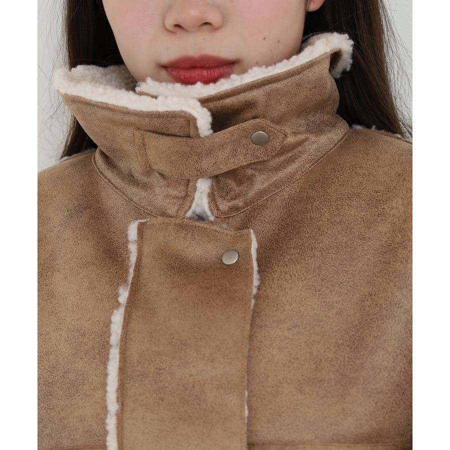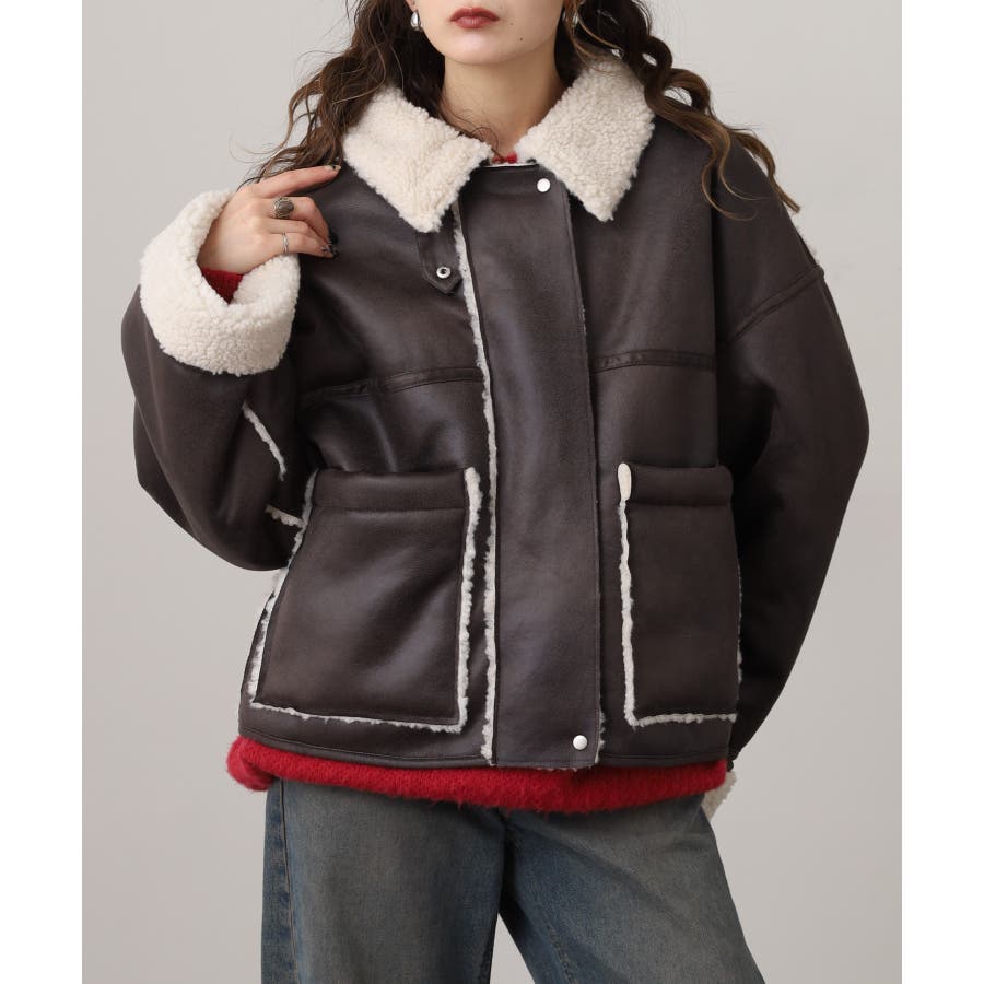 ・柔らかなフェイクムートンとふんわりとしたボアをボンディングした、季節感たっぷりのジャケット。
