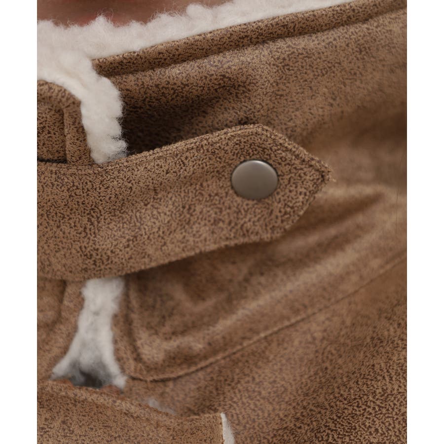ポリエステル100%のフェイクムートン素材は軽量で扱いやすく、ふんわりとしたボアが暖かさと快適さを両立。